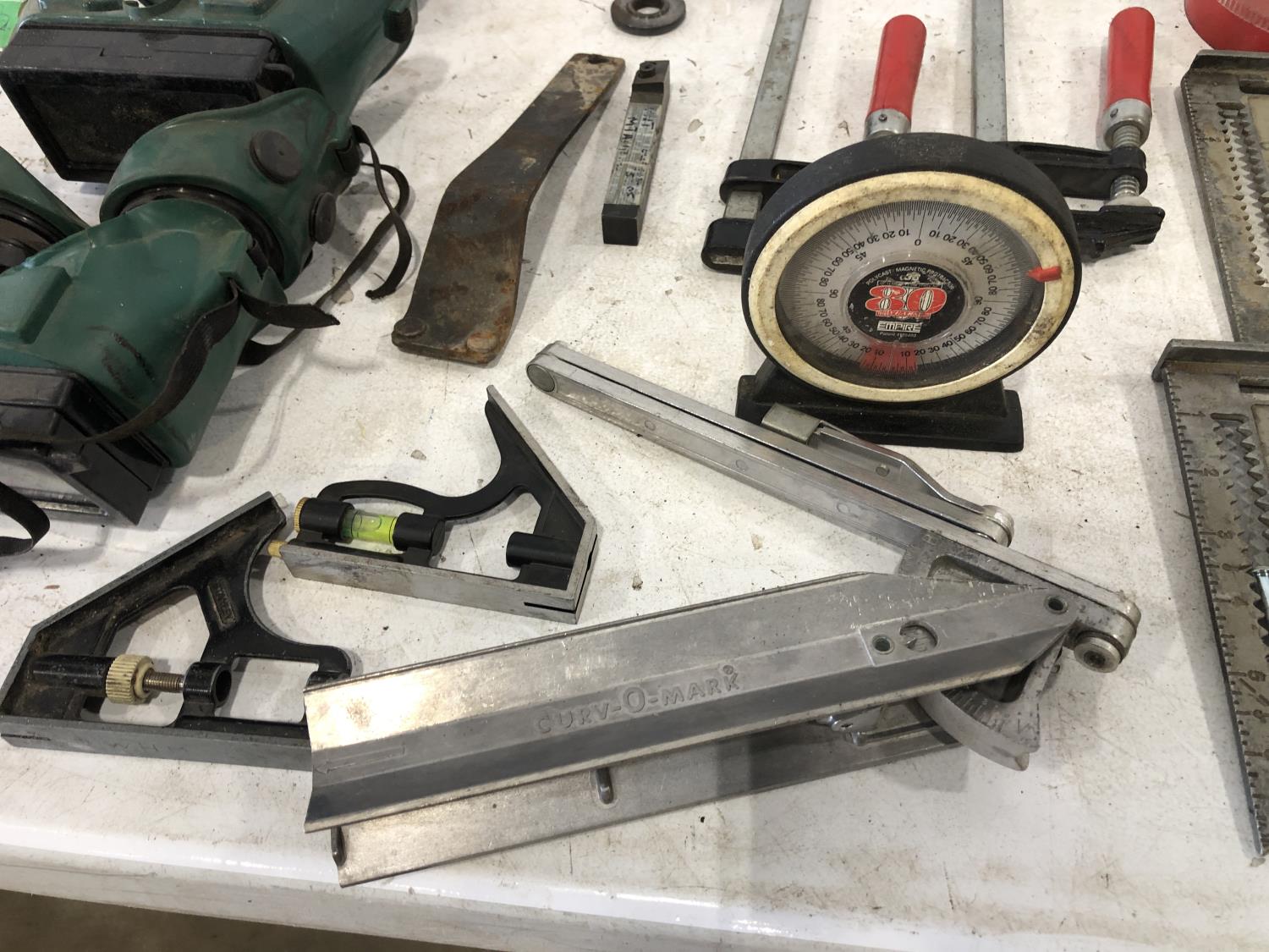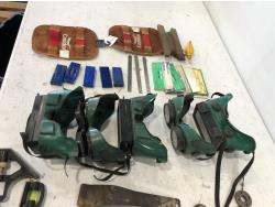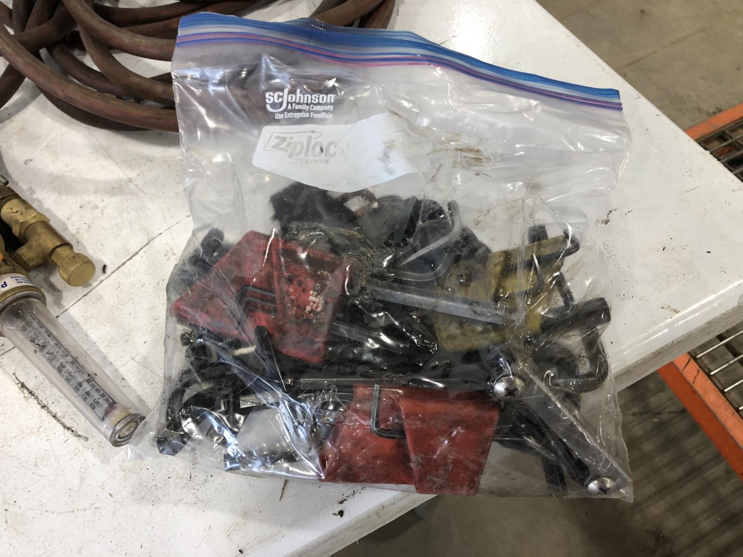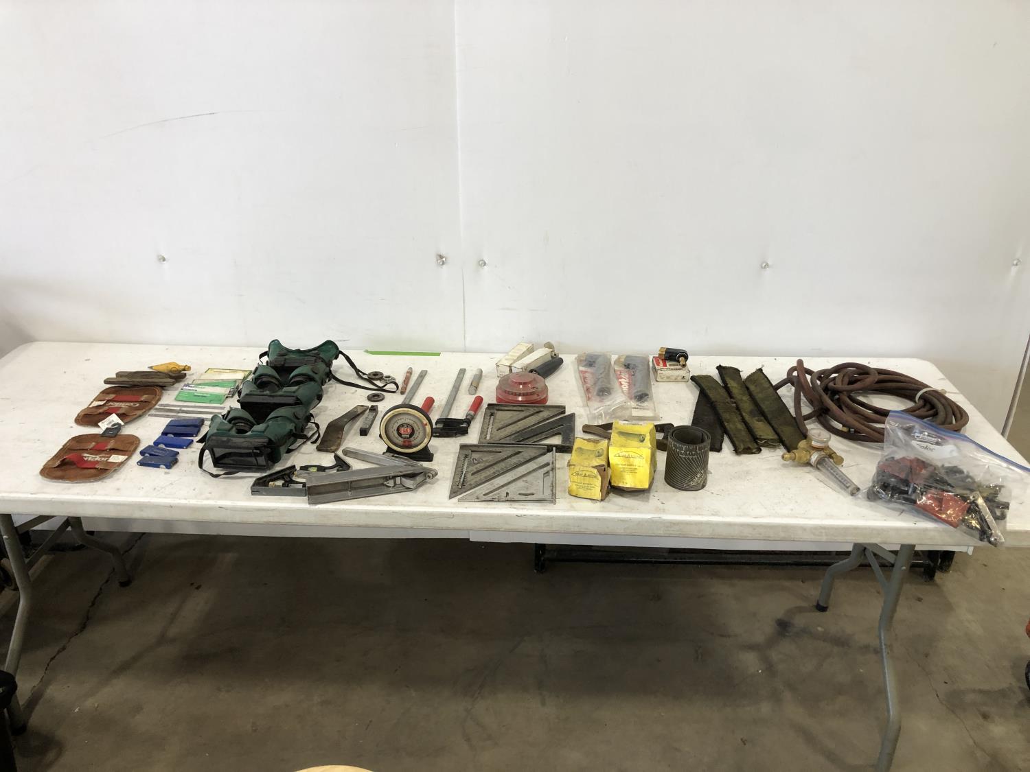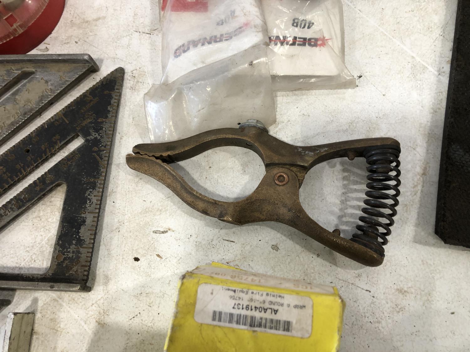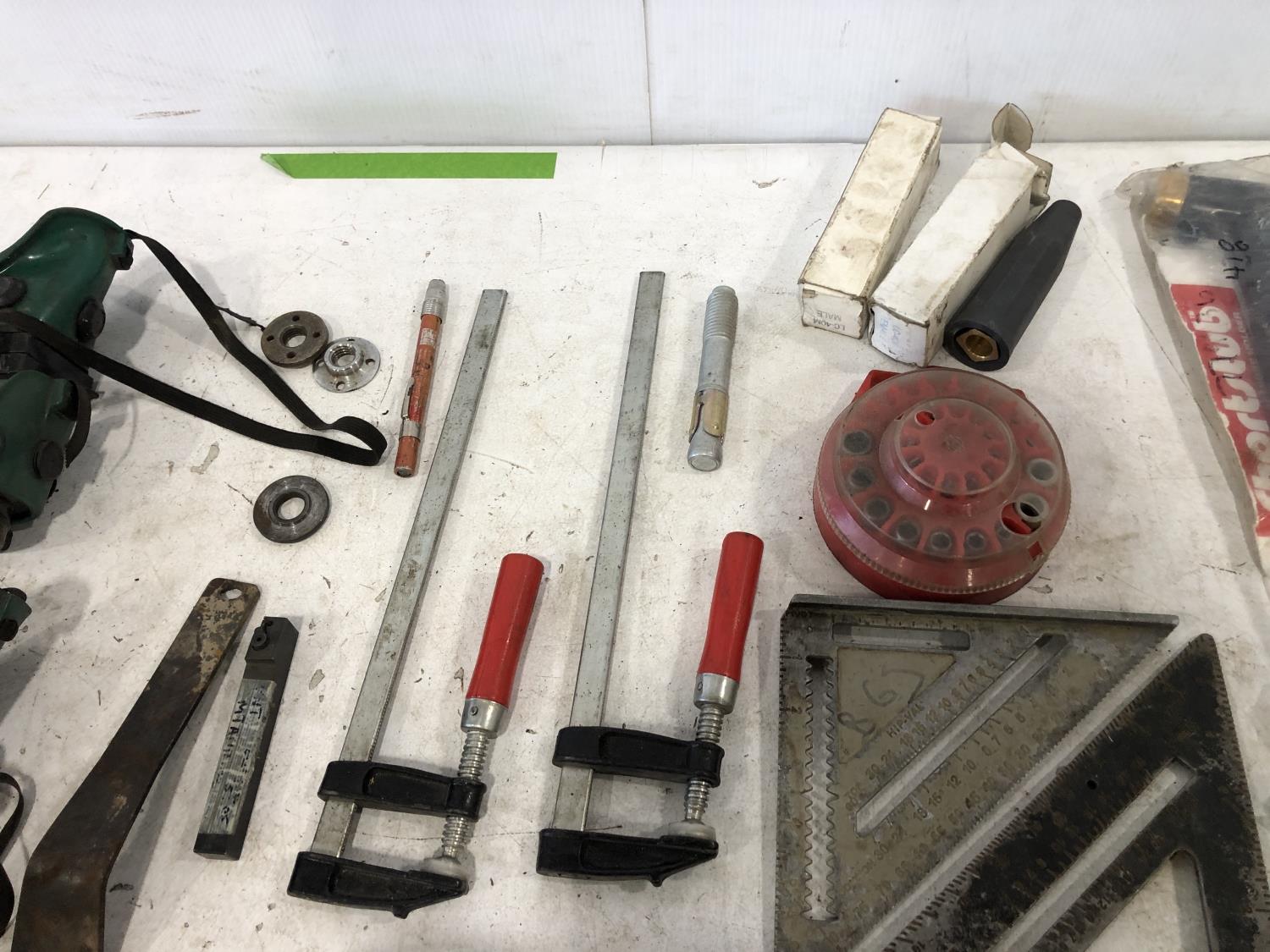 Wrap around marker, speedy squares, electrode holder, allen wrenches, goggles with lenses, clamps
