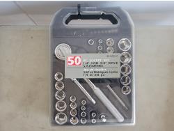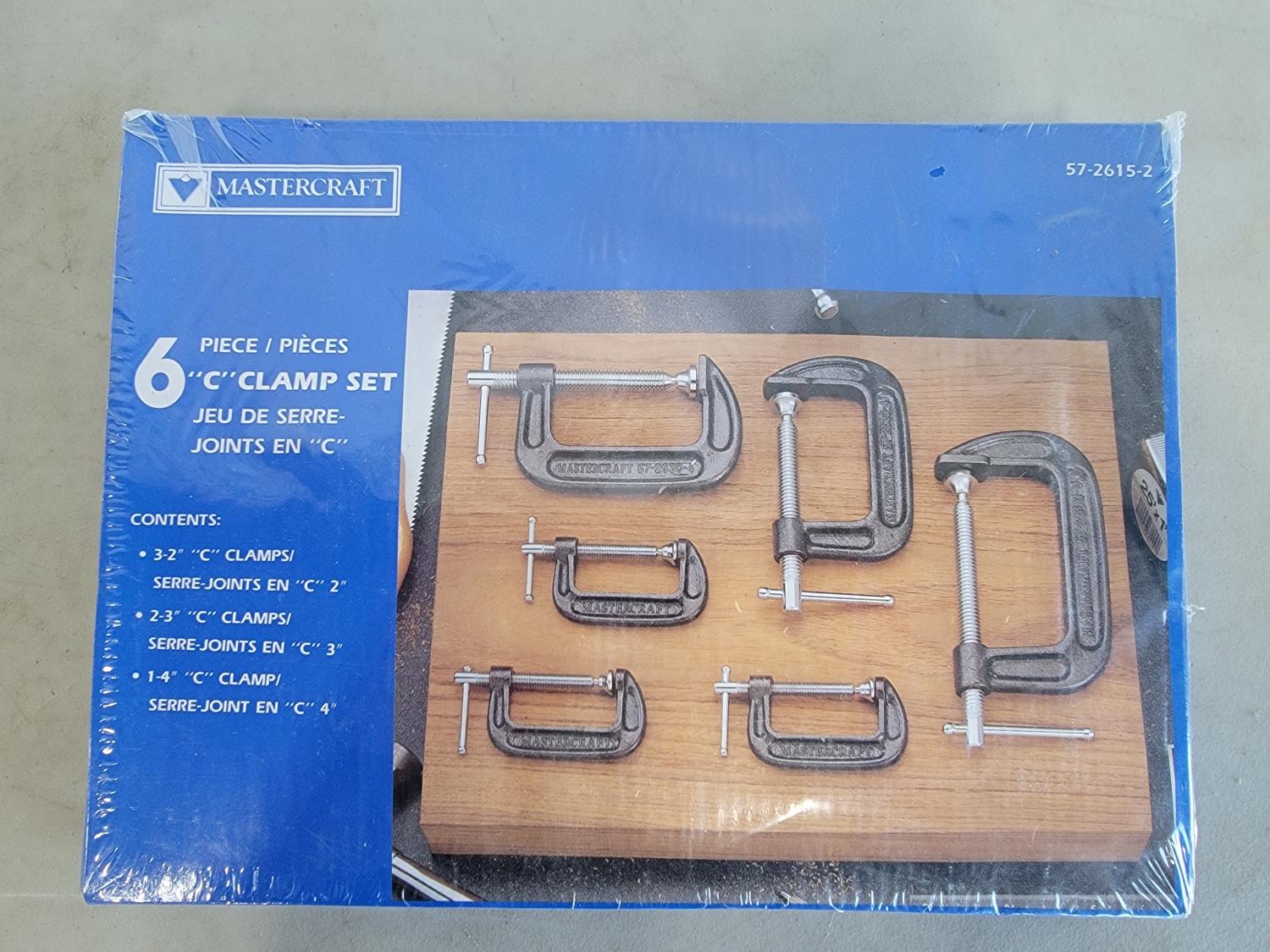 Mastercraft 3/8 inch drive tune-up kit, 50 piece socket set, 4 piece wood chisel set, 6 piece C-clamp set, Mastercraft sanding drum set