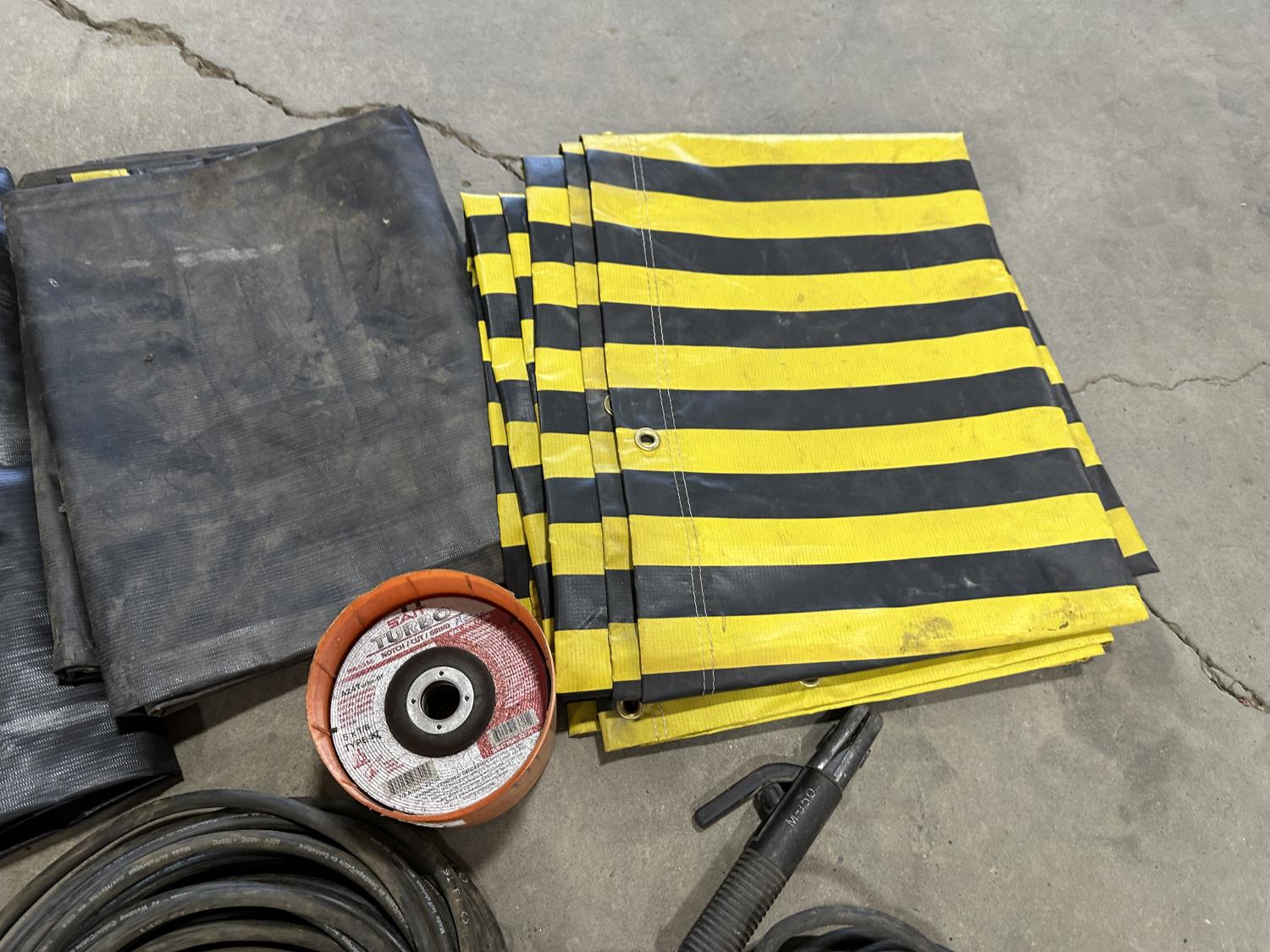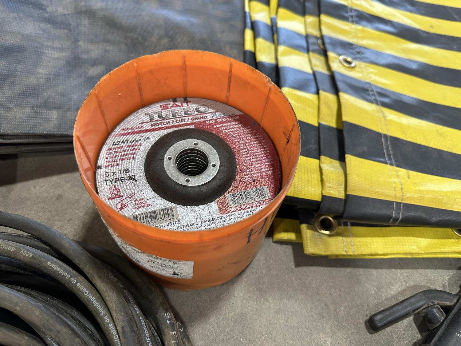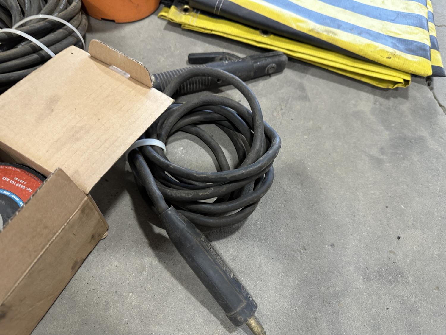1387 Qty of Welding Supplies, Cables, Screens and Grinding Discs