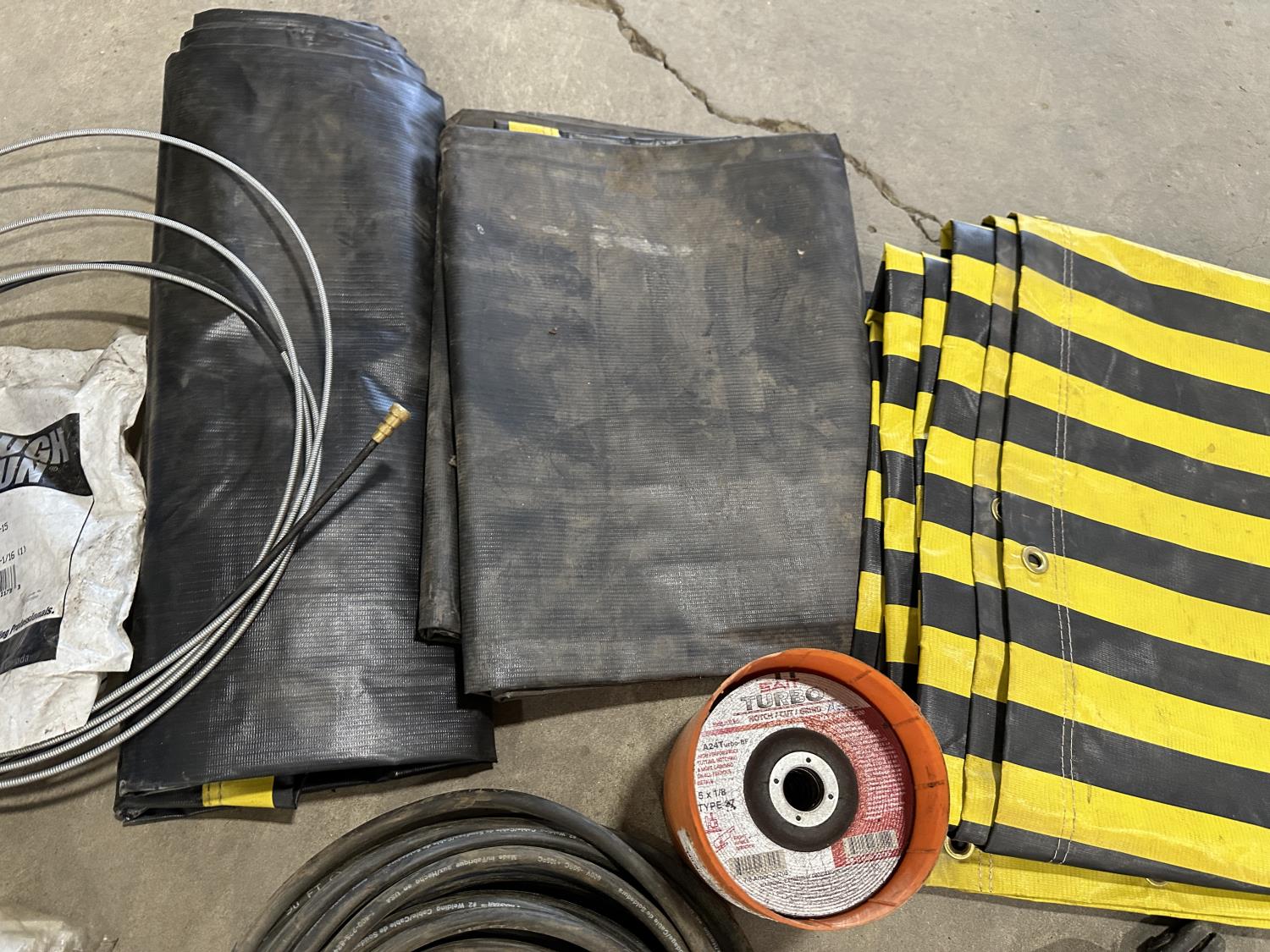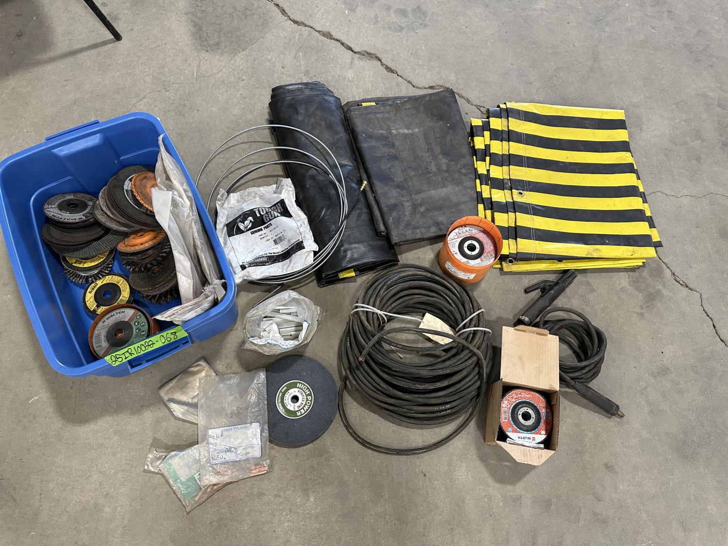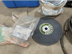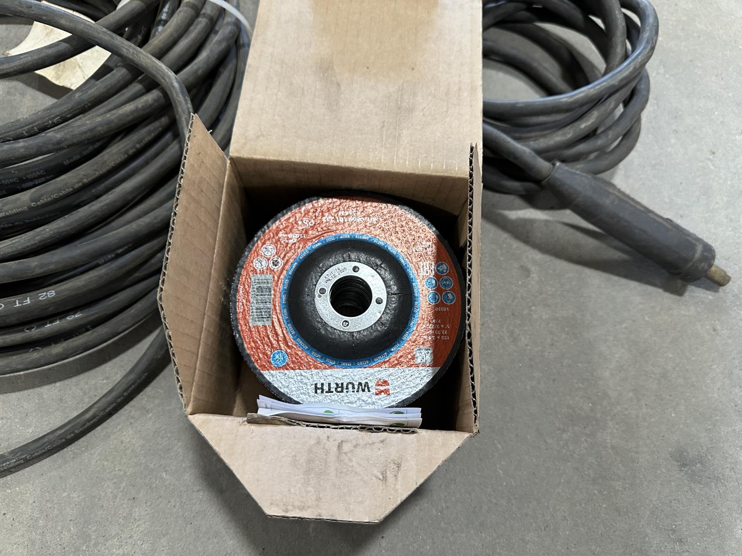 1387 Qty of Welding Supplies, Cables, Screens and Grinding Discs
