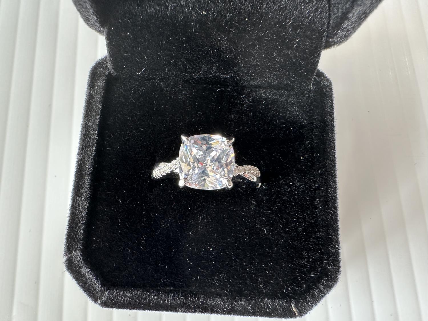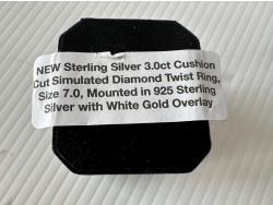 1568 Smartlife Sterling Silver 3.0 Ct Cushion Cut Simulated Diamond Twist Ring - Size 7.0 (Unused)