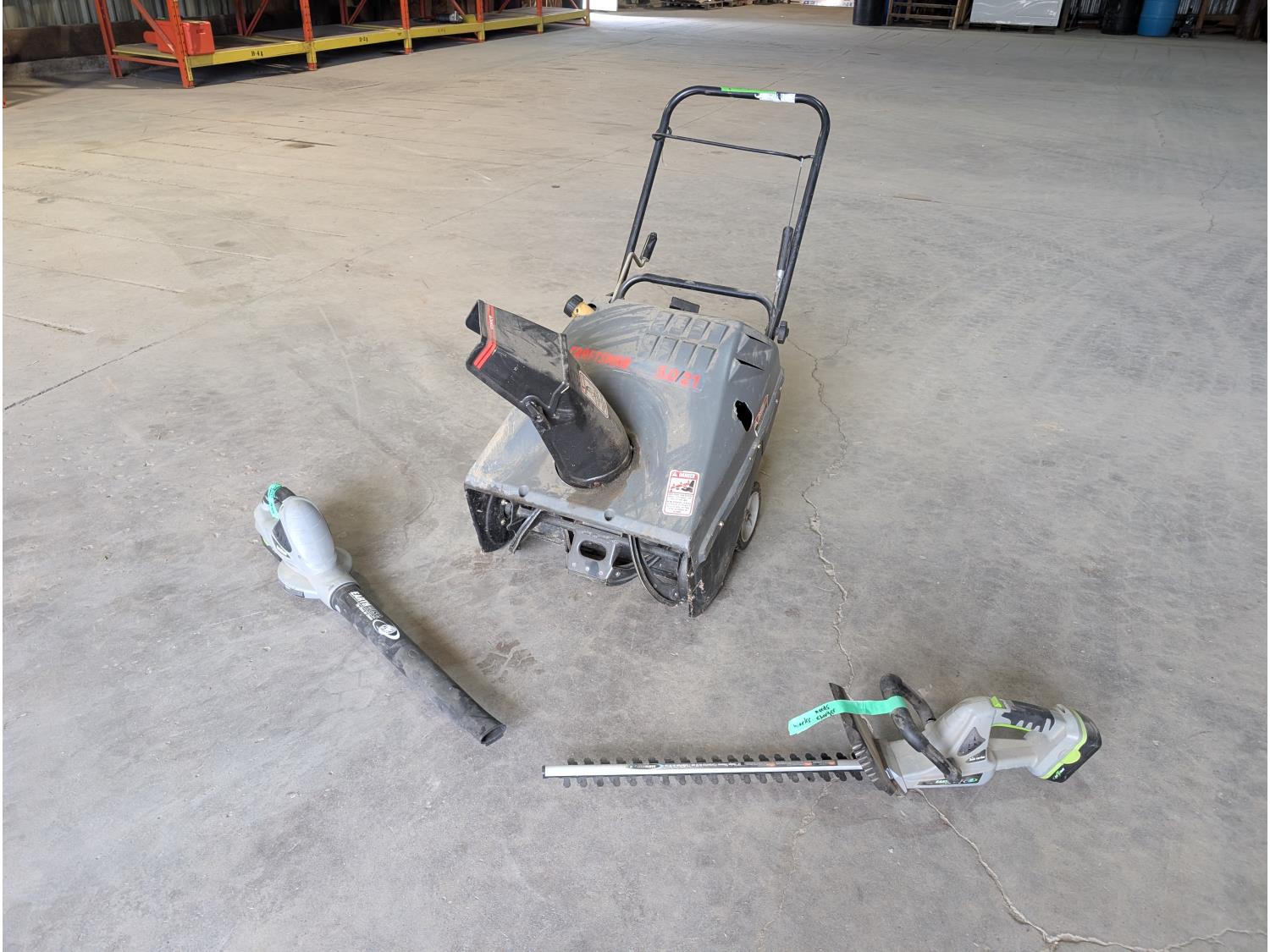 1308 Craftsman Snowblower, I8V Earthwise 22 Inch Hedge Trimmer and Blower