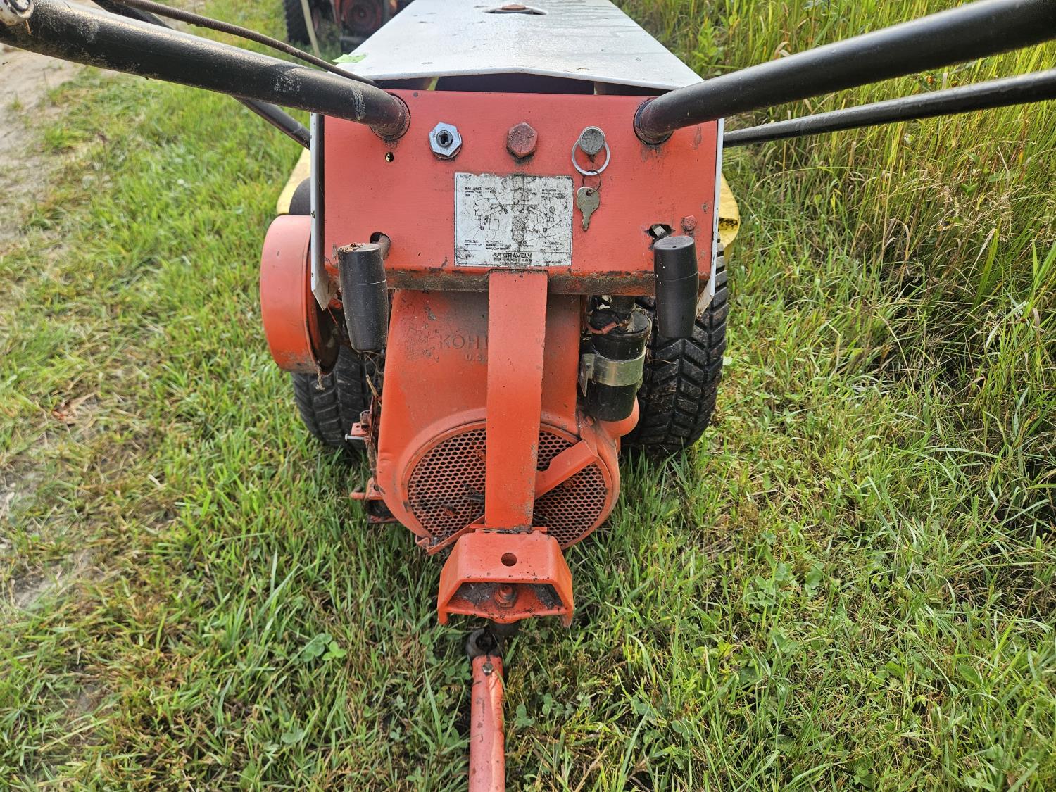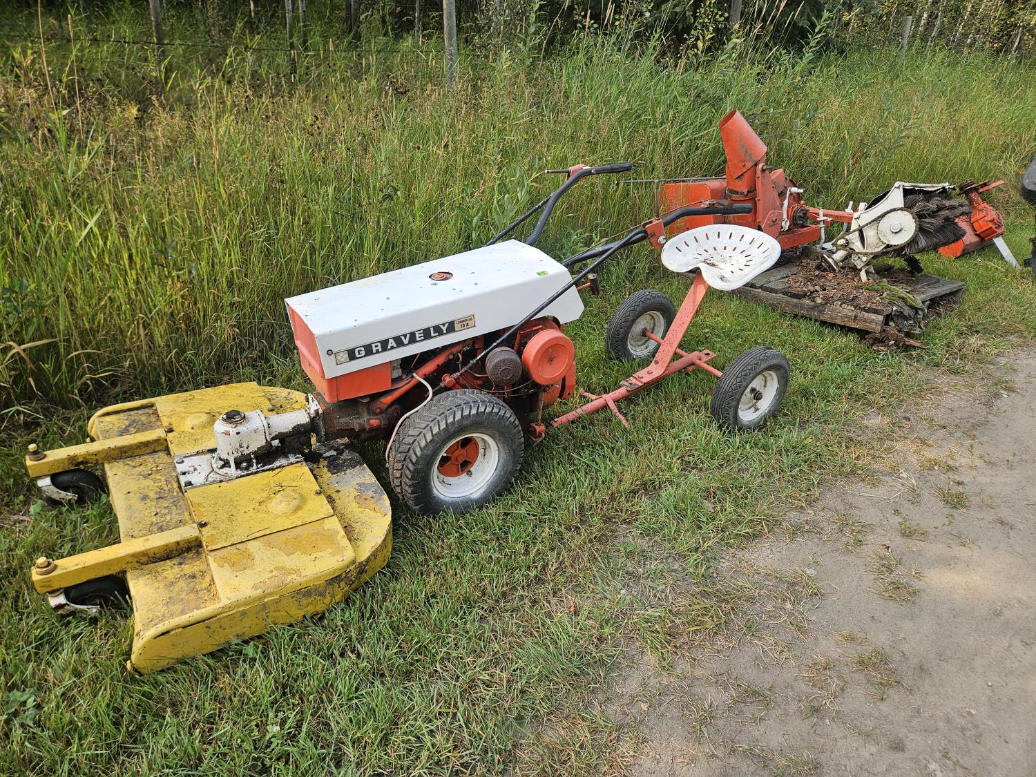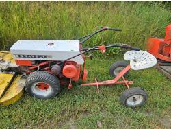 10 HP Kohler gas engine, seat attachment, front mount 42 inch rotary mower, 42 inch brush sweeper, cultivator, 26 inch snowblower, 26 inch rototiller, 36 inch blade, 6.50-8 rear tires, 4.80-8 front tires, (Untested)