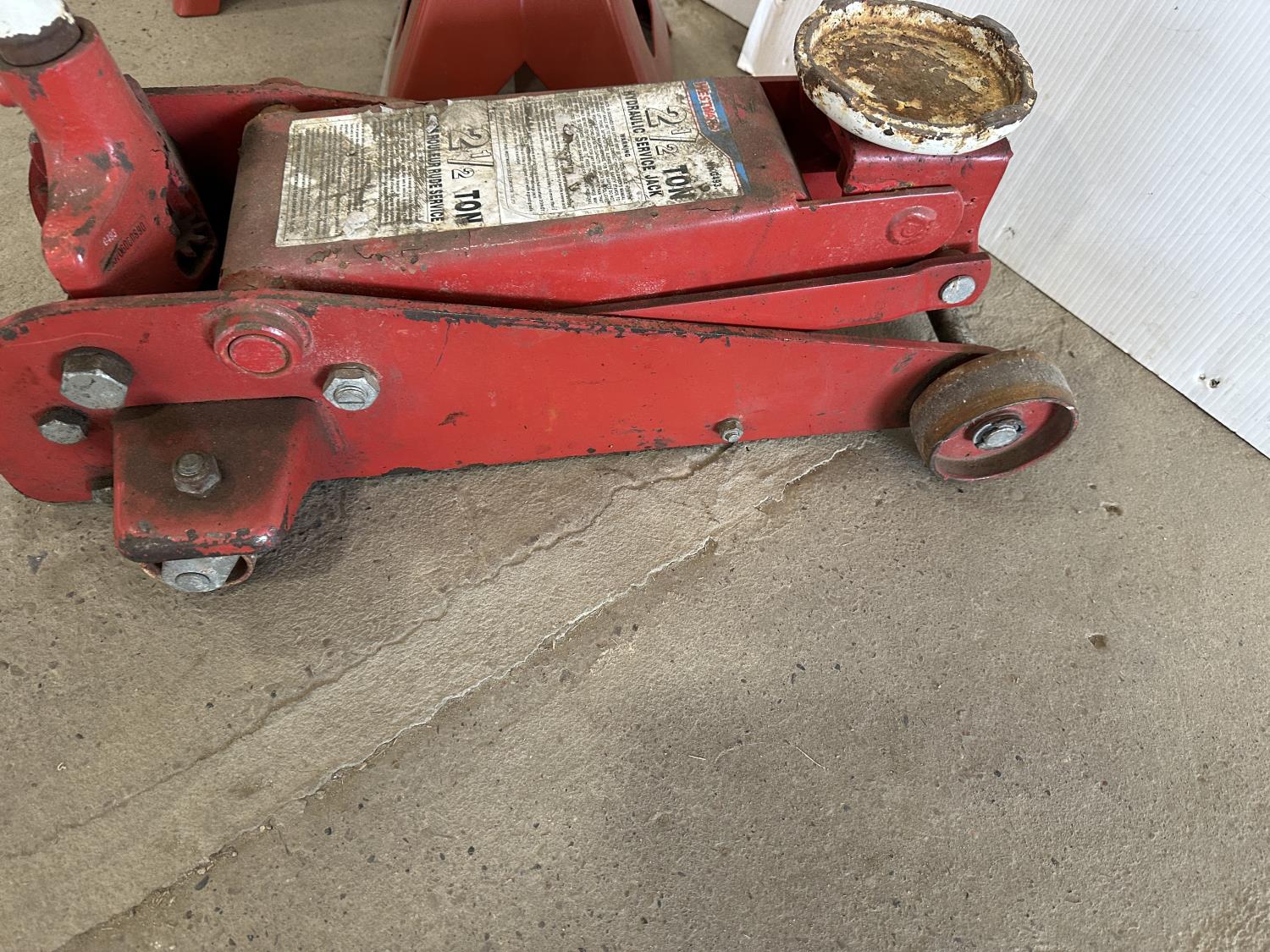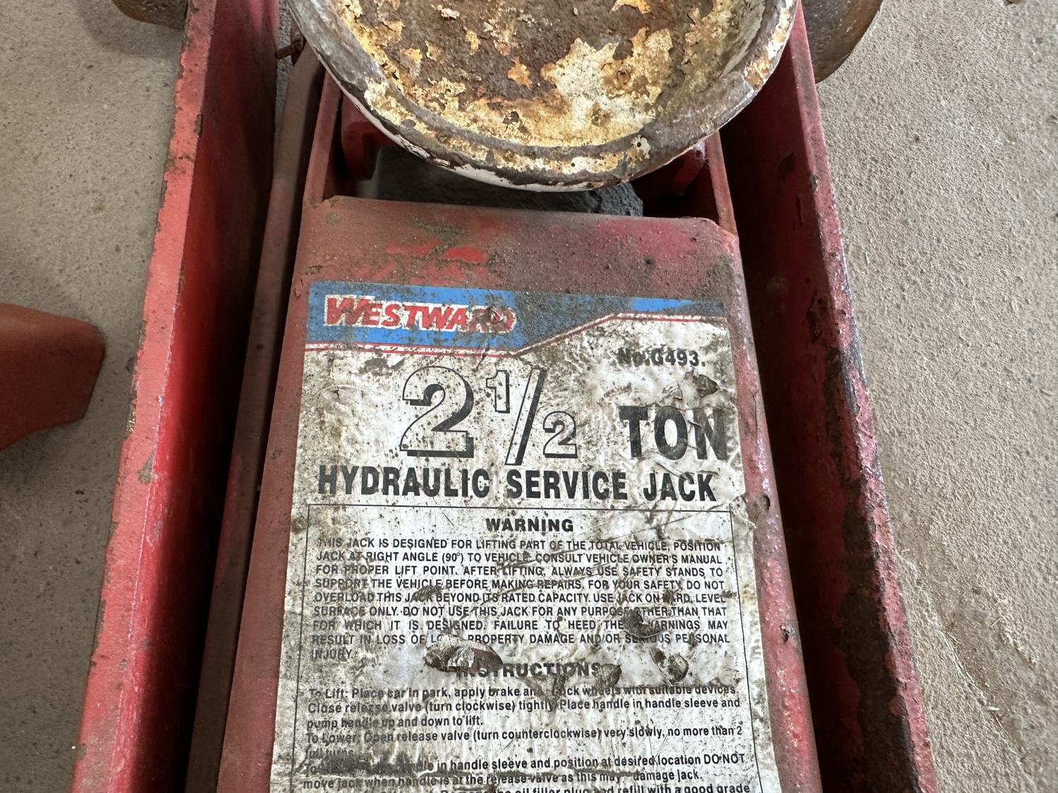 1010 Westward 2-1/2 Ton Hydraulic Floor Jack and (2) Norco 6 Ton Jack Stands (Inoperable)