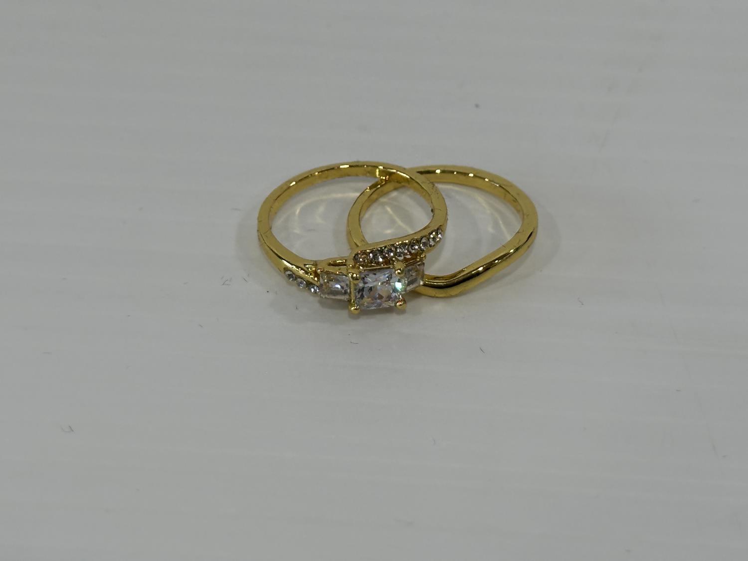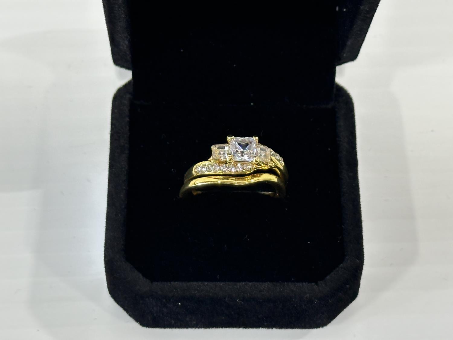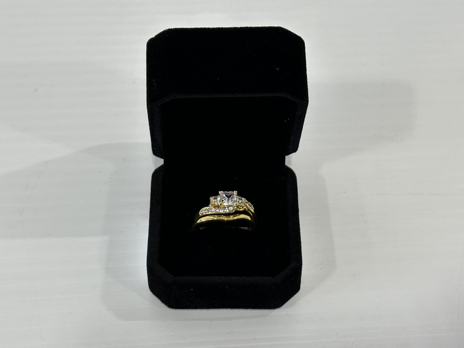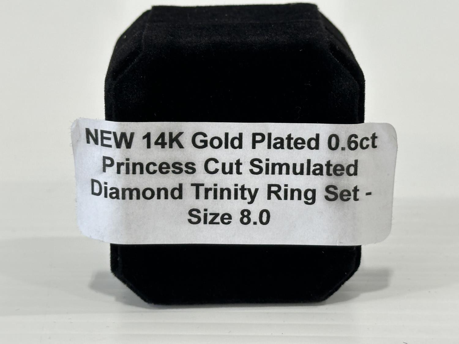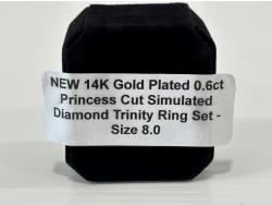 1669 Smartlife 14K Gold Plated 0.6 Ct Princess Cut Simulated Diamond Trinity Ring Set - Size 8 (Unused)