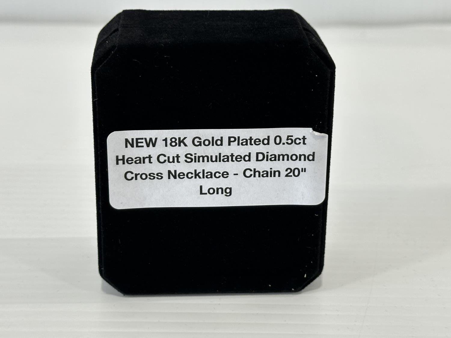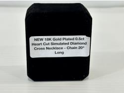 1683 Smartlife 18K Gold Plated 0.5 Ct Heart Cut Simulated Diamond Cross Necklace (Unused)
