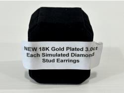 1663 Smartlife 18K Gold Plated 3.0 Ct Each Simulated Diamond Stud Earrings (Unused)