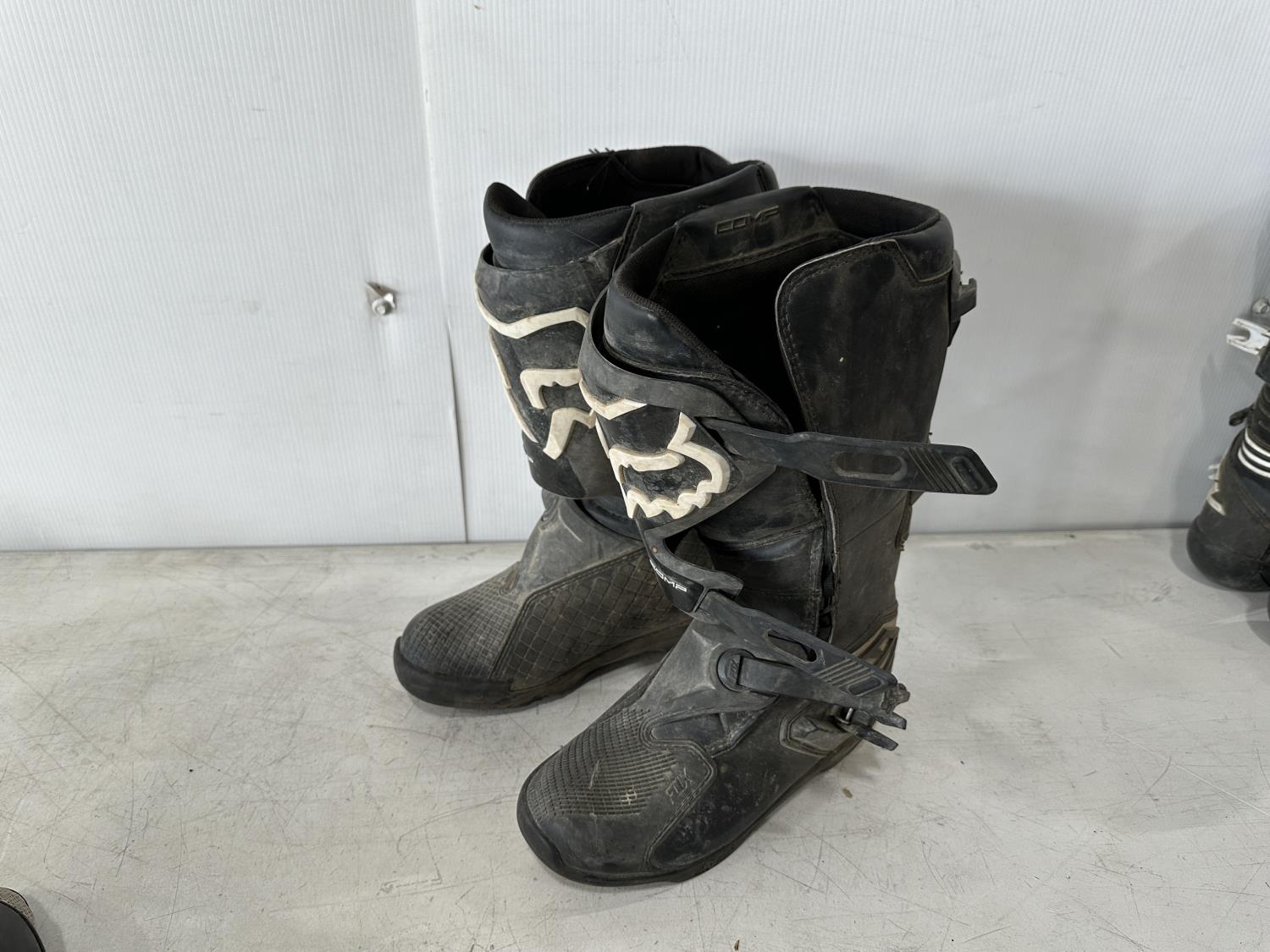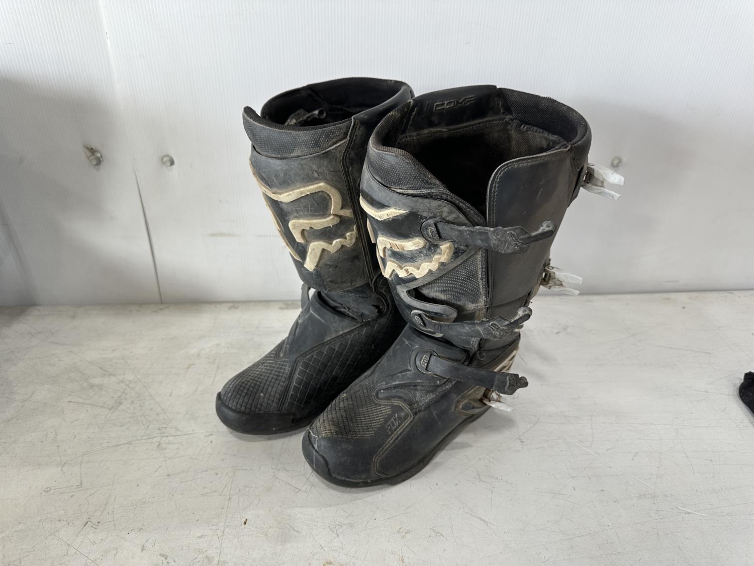 1335 (2) Pairs of Fox Racing Motocross Boots, Kid's Large Jersey and Silencer