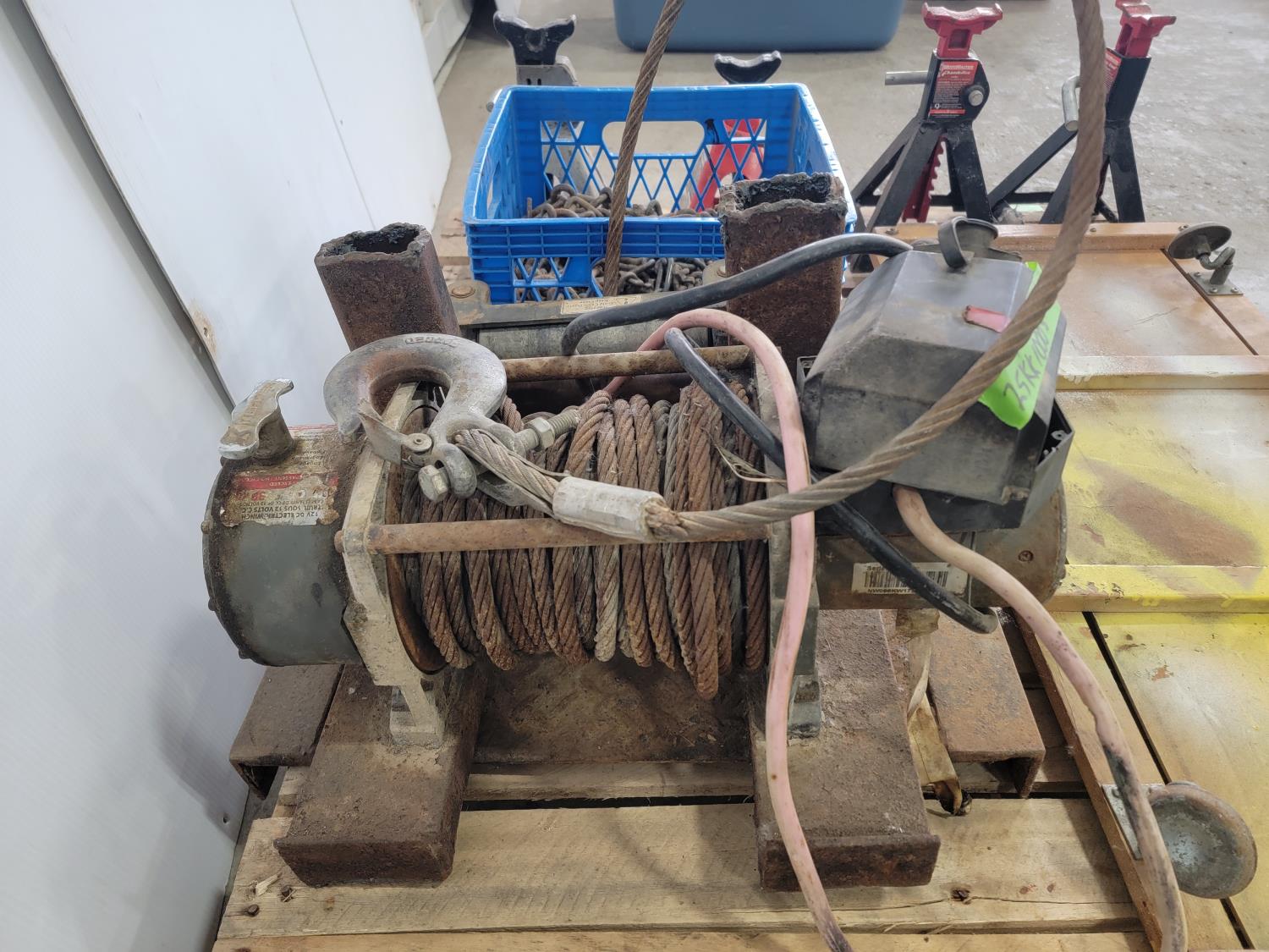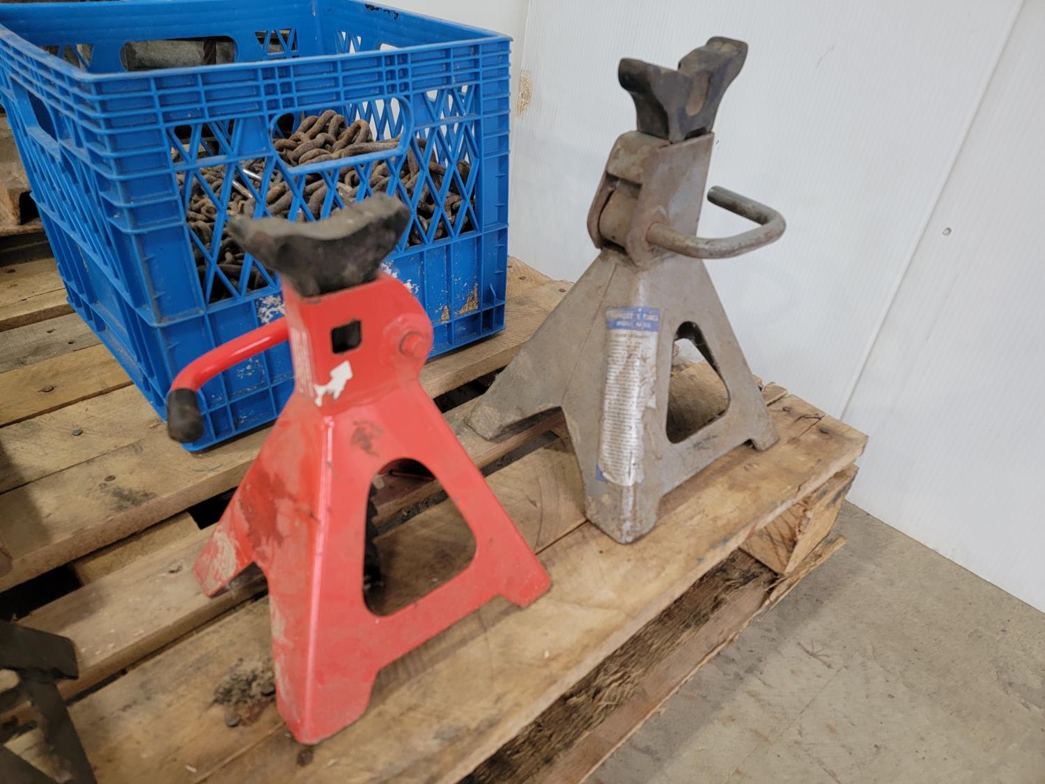 1268 (4) Jack Stands, ATV Tire Chains, Mechanics Creeper and 12,000 lb Electric Winch with Remote
