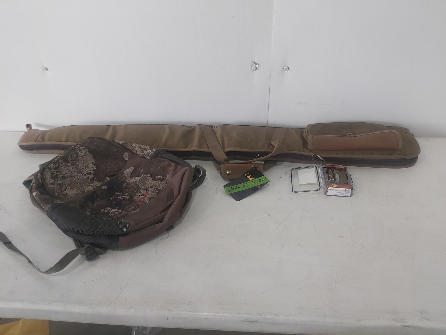 1606 Cabela's 52 Inch Rifle Case, Folding Knife and Light Combo Set and Red Head Backpack