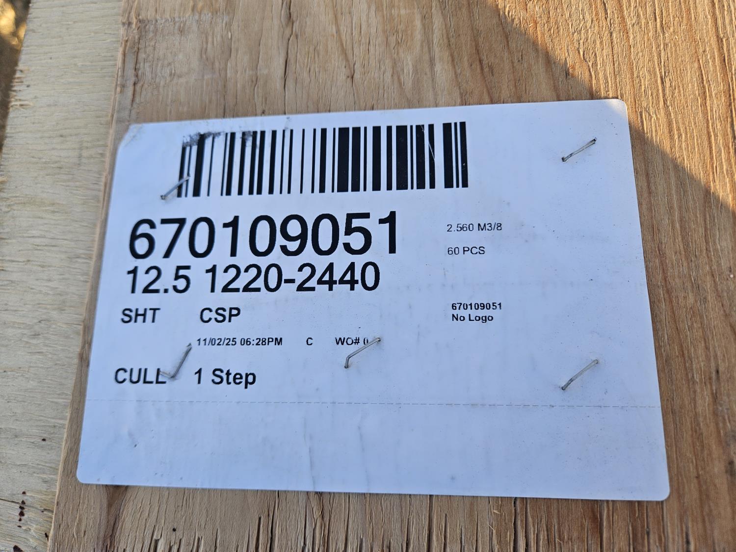 1719 (60) 1/2 Inch Utility Grade No Stamp Plywood (Unused)
