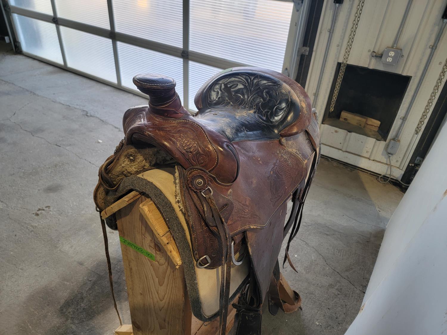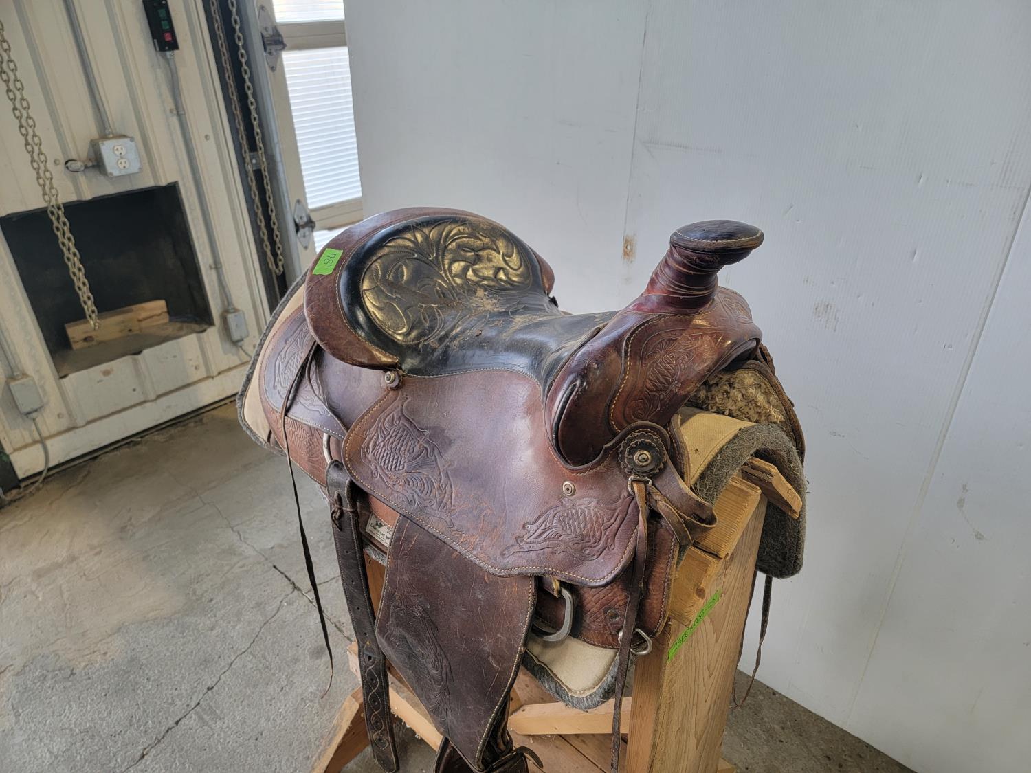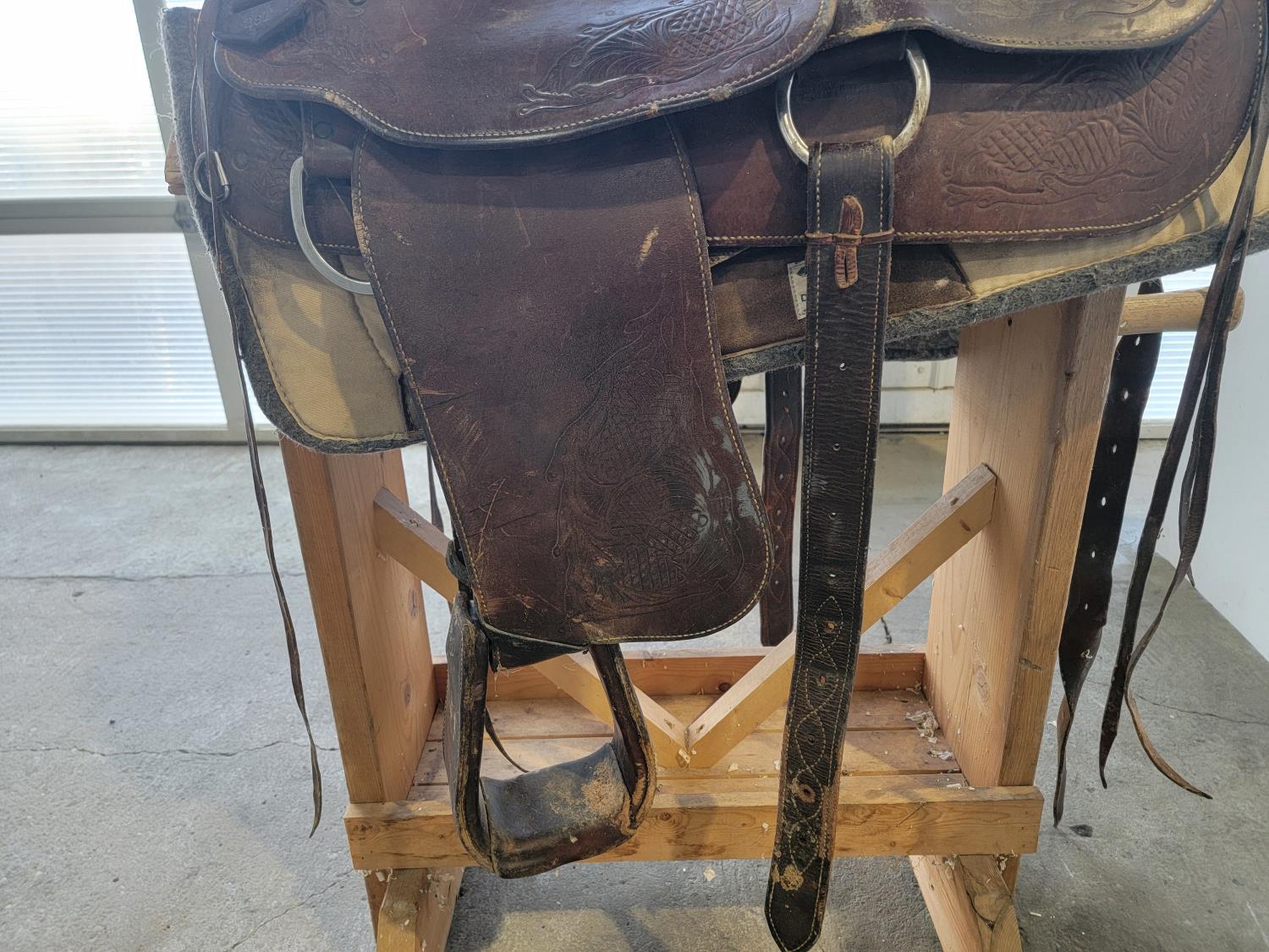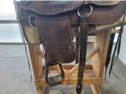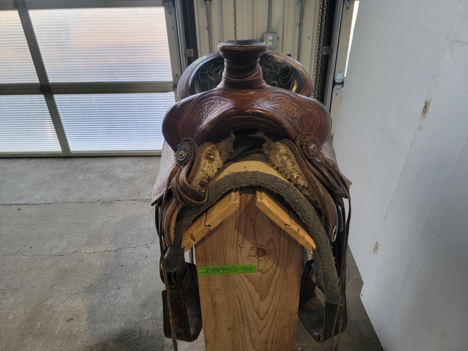 1659 Eamors 16 Inch Western Saddle, Diamond Wool Saddle Pad and Wooden Saddle Stand