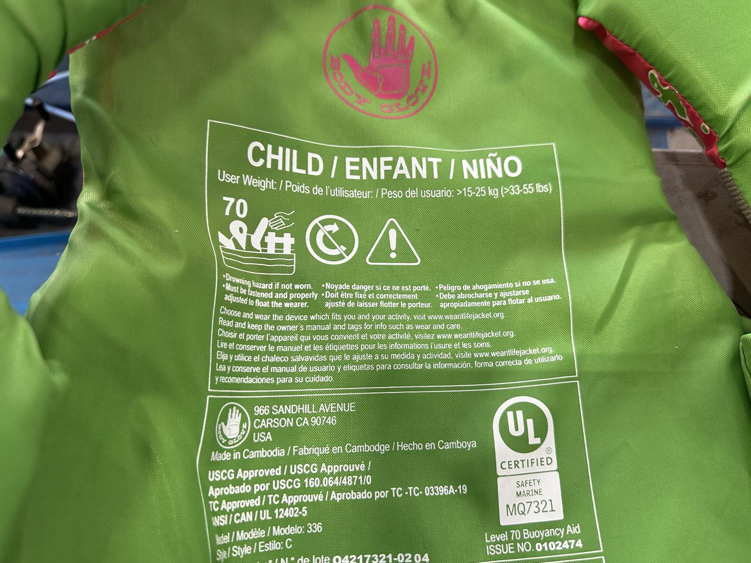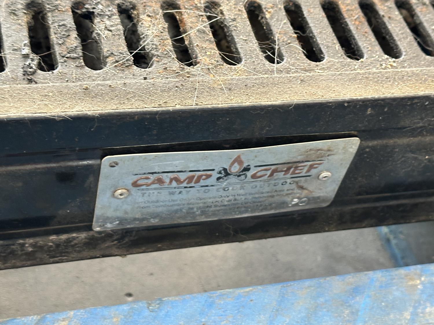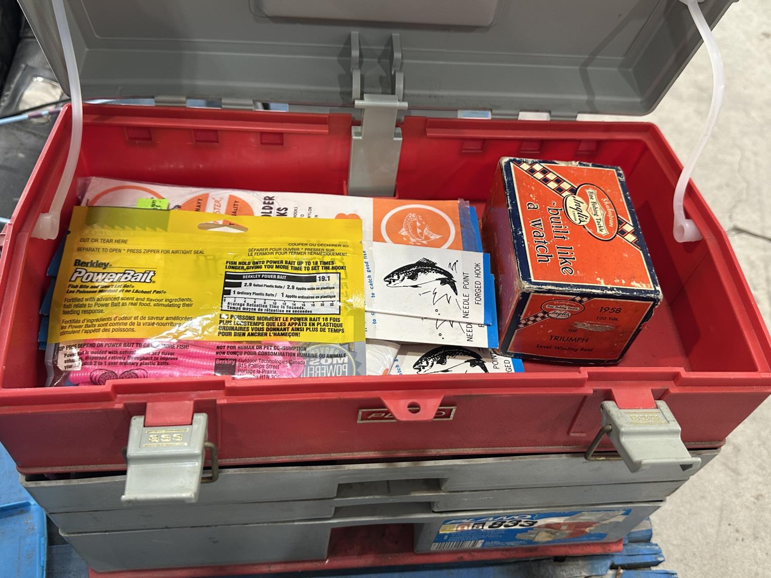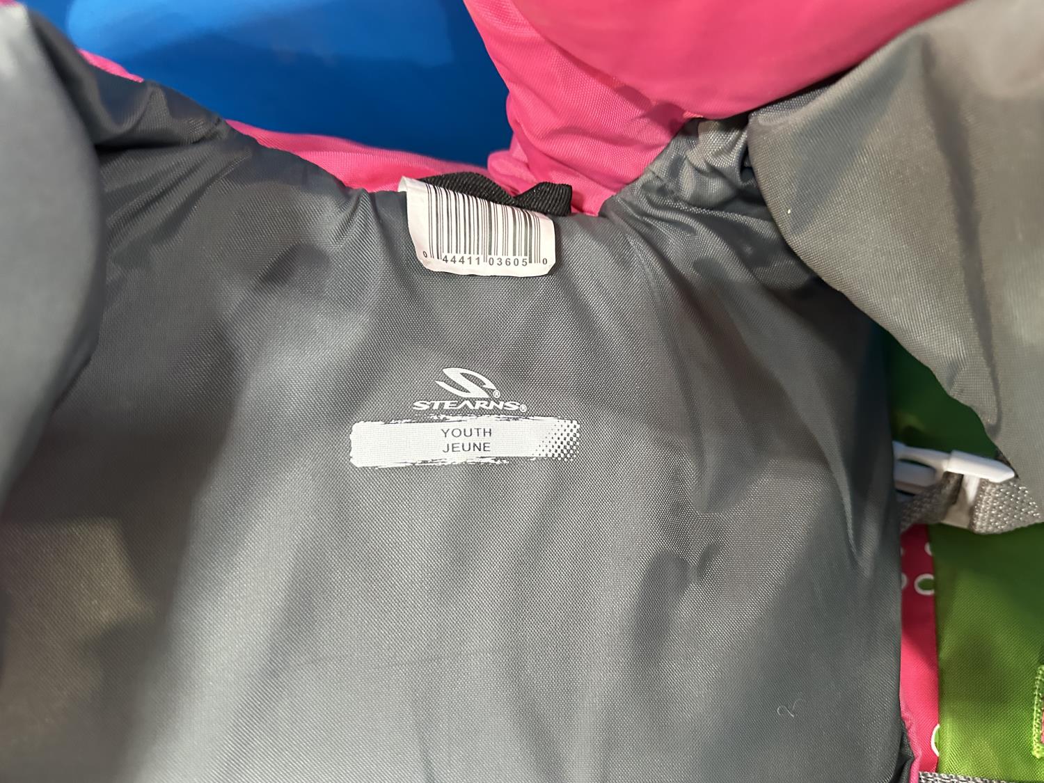 (4) life jackets, mini basketball net, tackle box with contents, Bear youth compound bow, Camp Chef grill