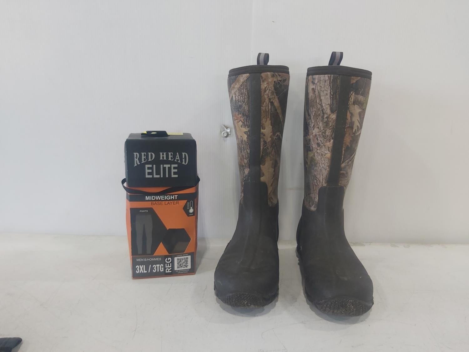 1116 Muck Fieldblazer Classic Size 8 Boots and Red Head Elite Size 3XL Baselayer Pants