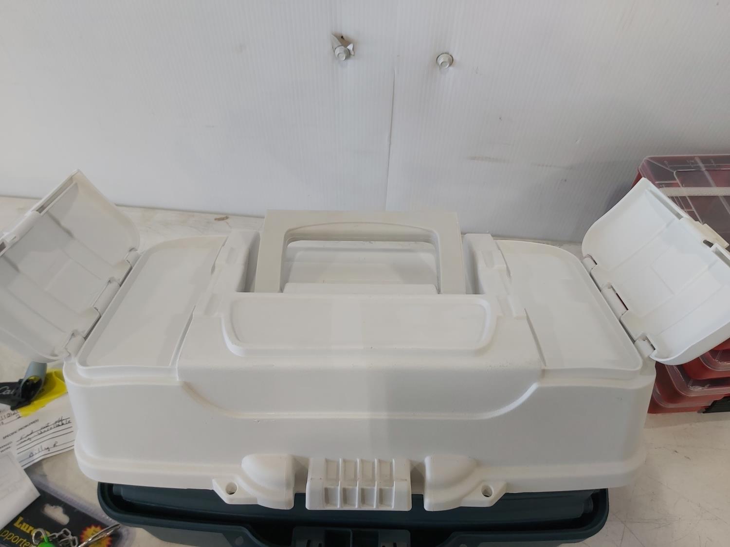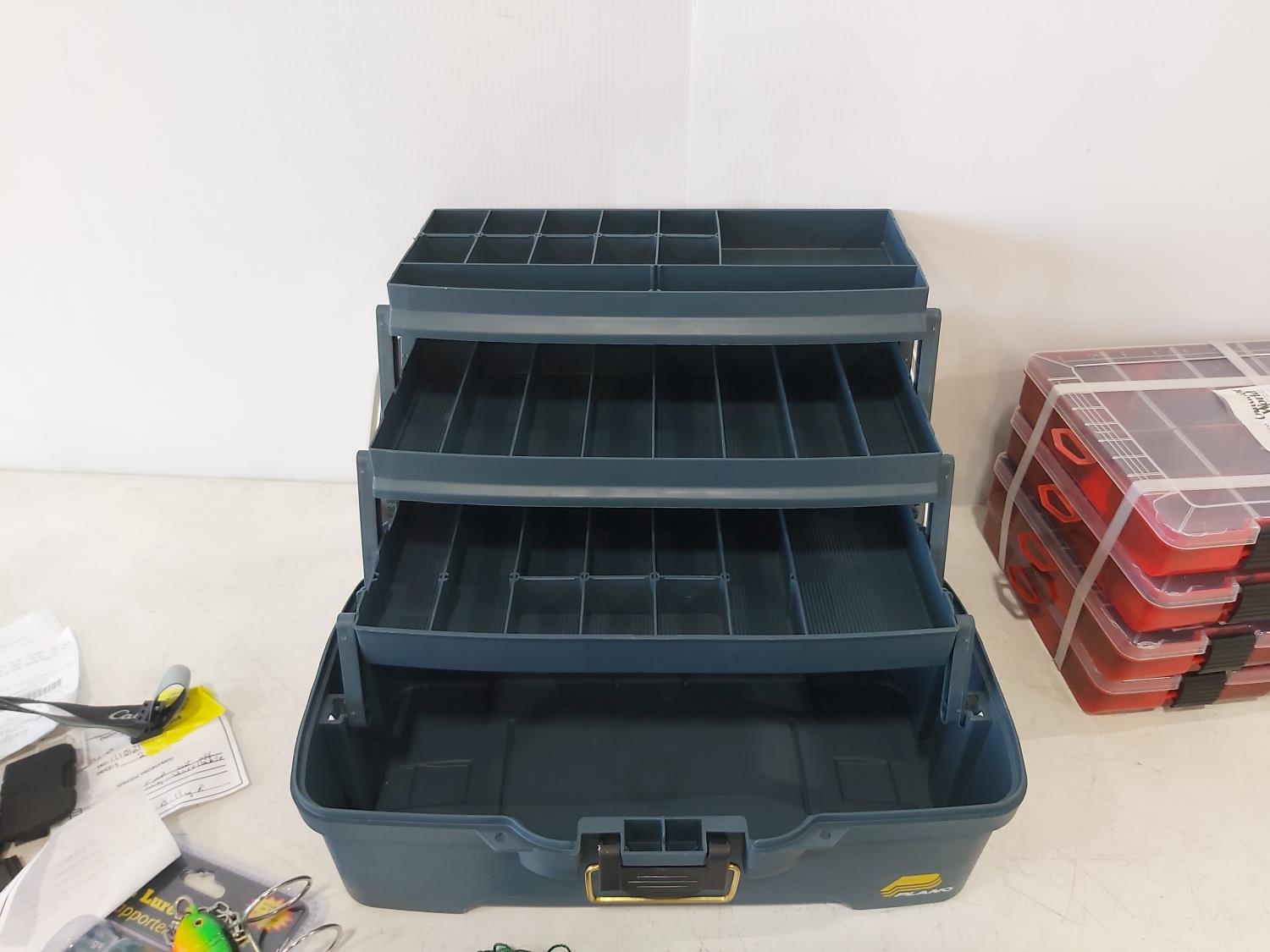 1183 Plano Tackle Box, (4) Plastic Organizer Trays, Fishing Accessories and Head Lamp
