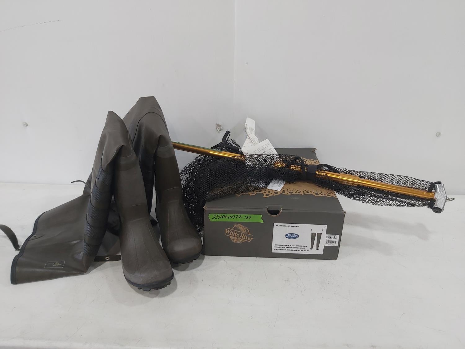 1400 White River Size 13M Hip Waders and Fishing Net