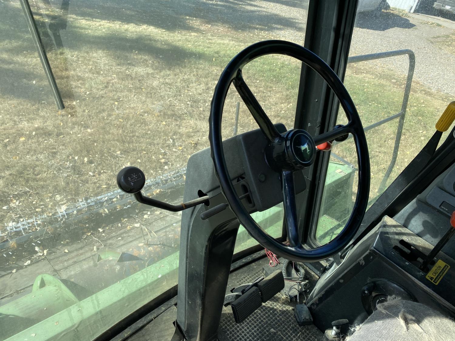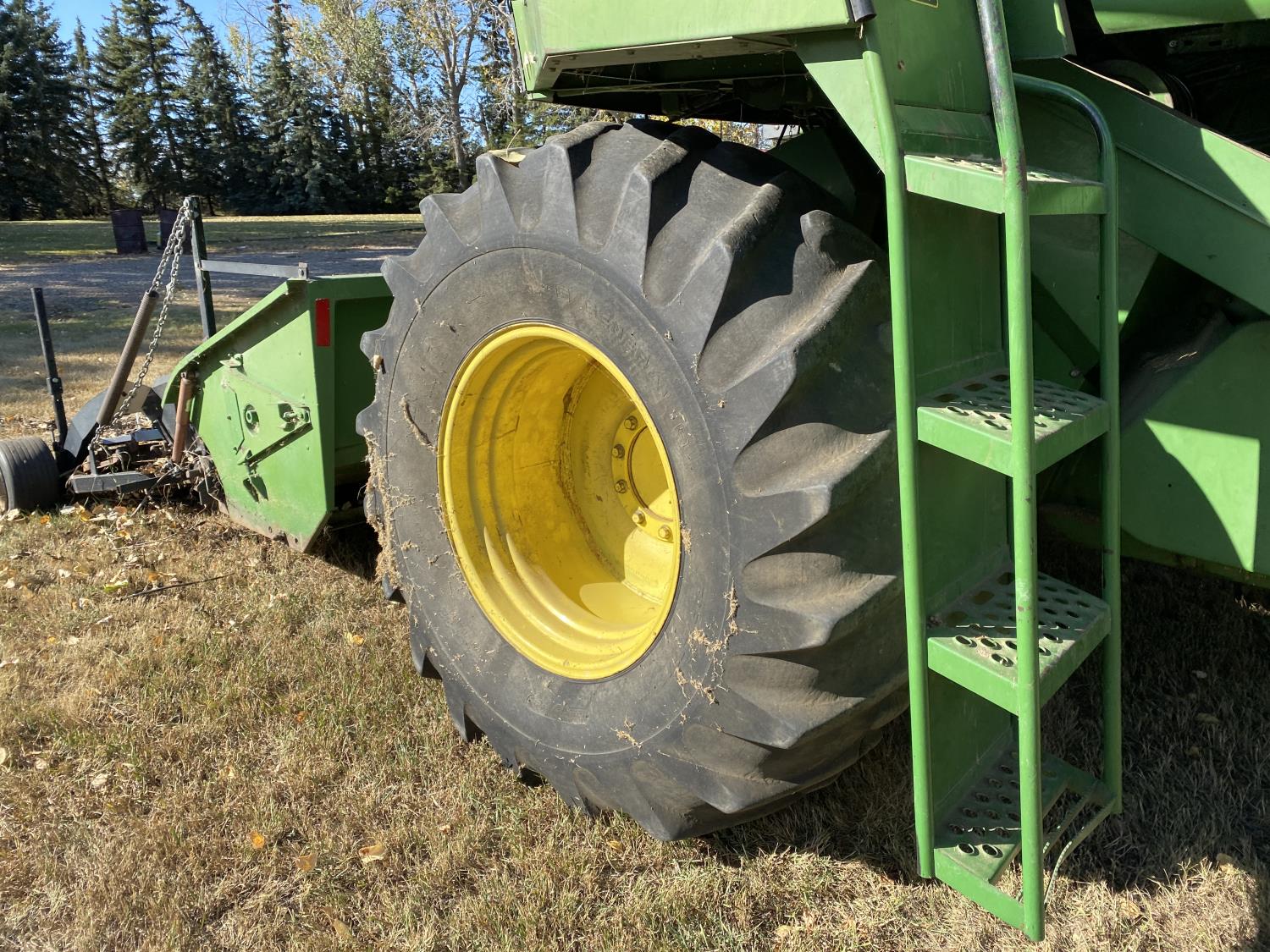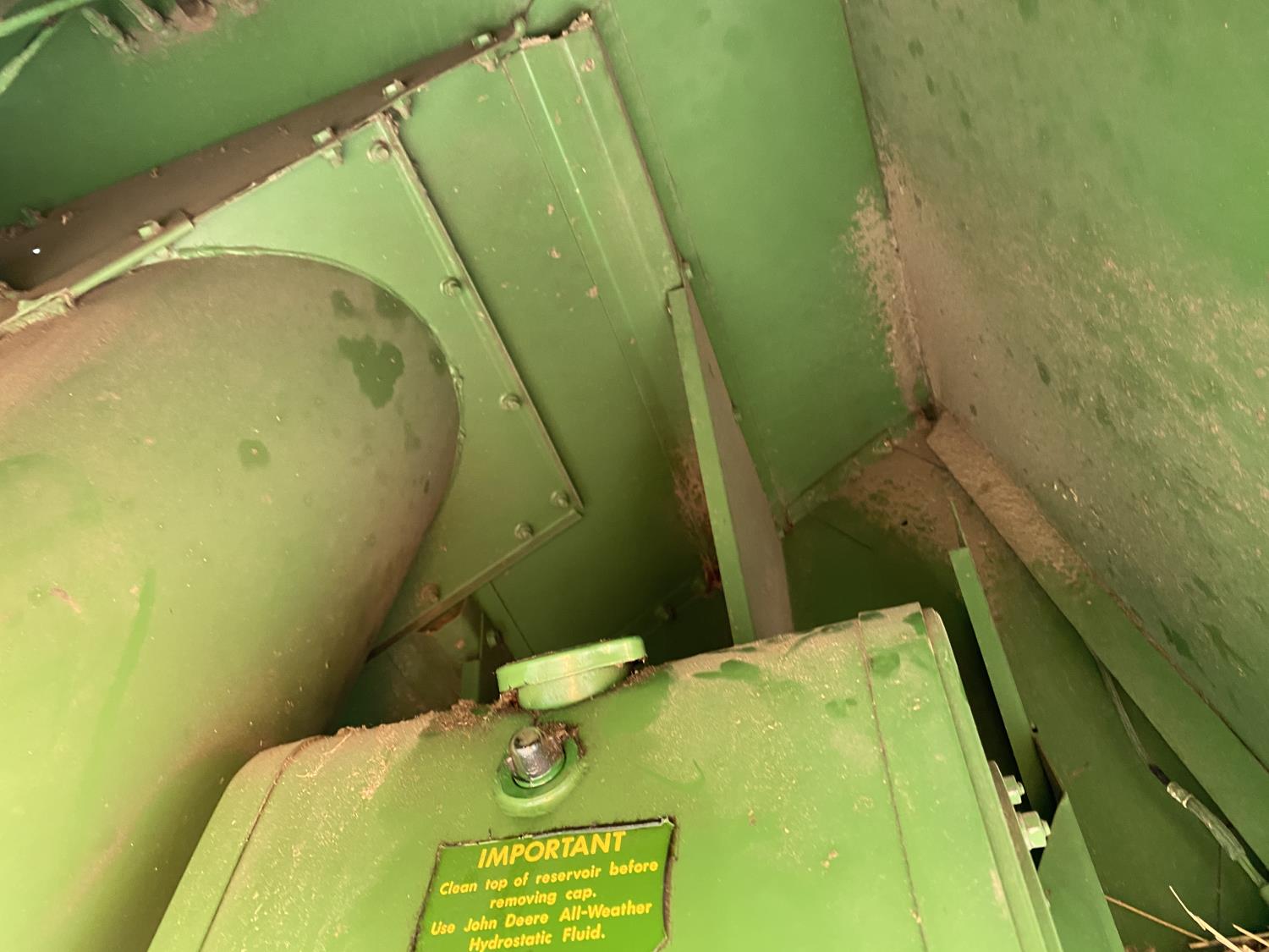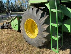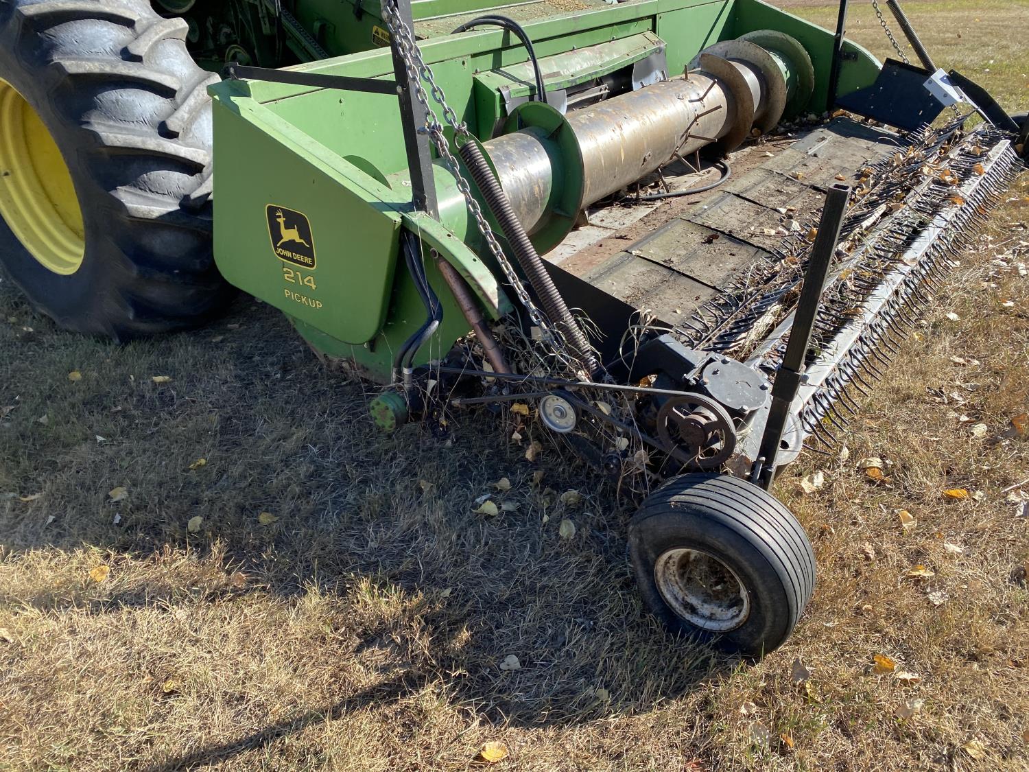 John Deere 214 14 ft pick-up header, variable speed reel, chopper/straw spreader, 16 ft auger, 24.5-32 front tires, 11.25-24 rear tires