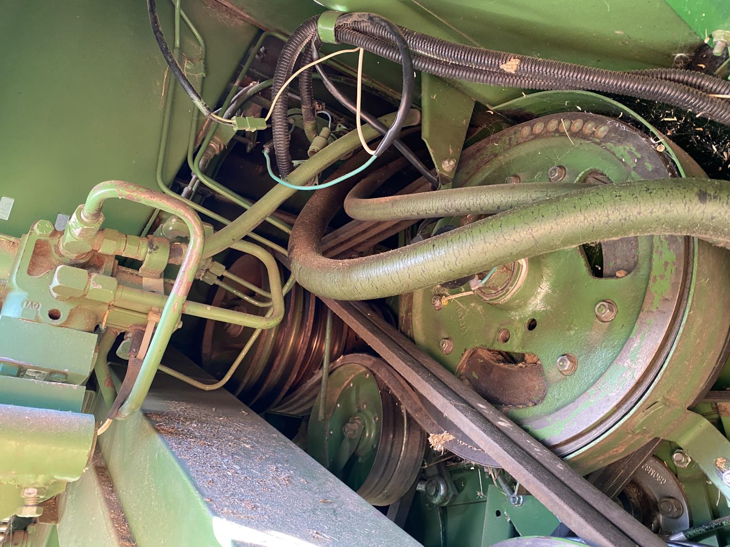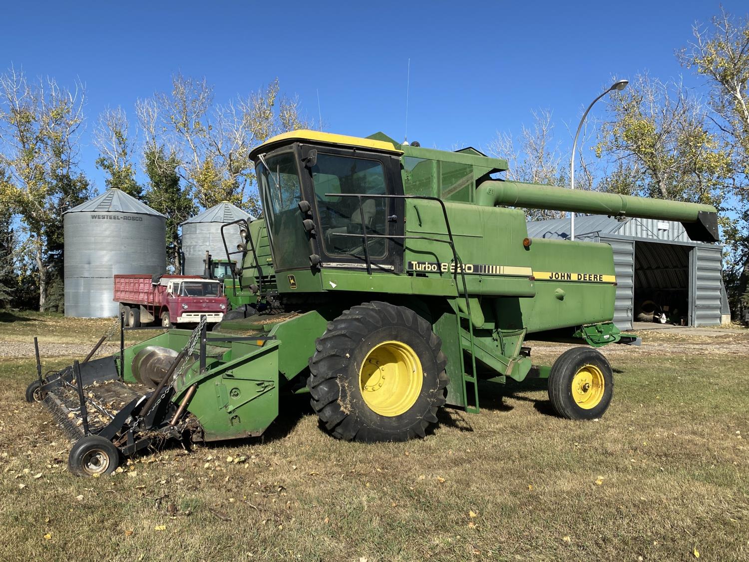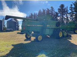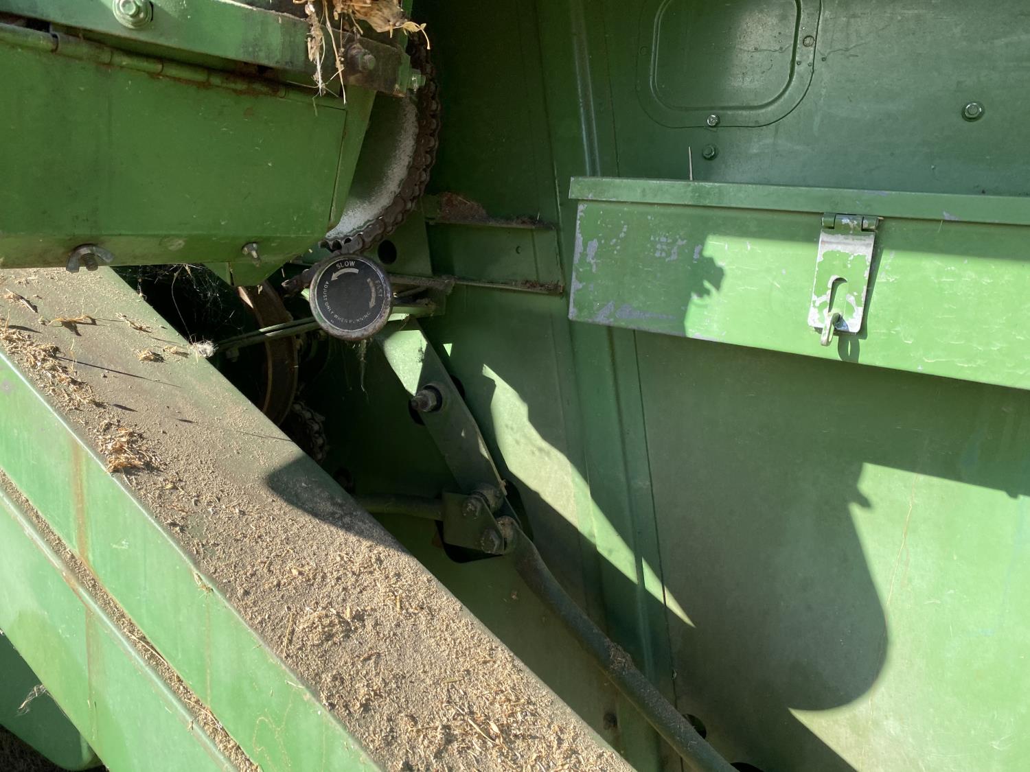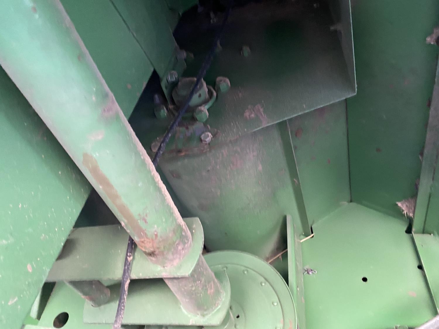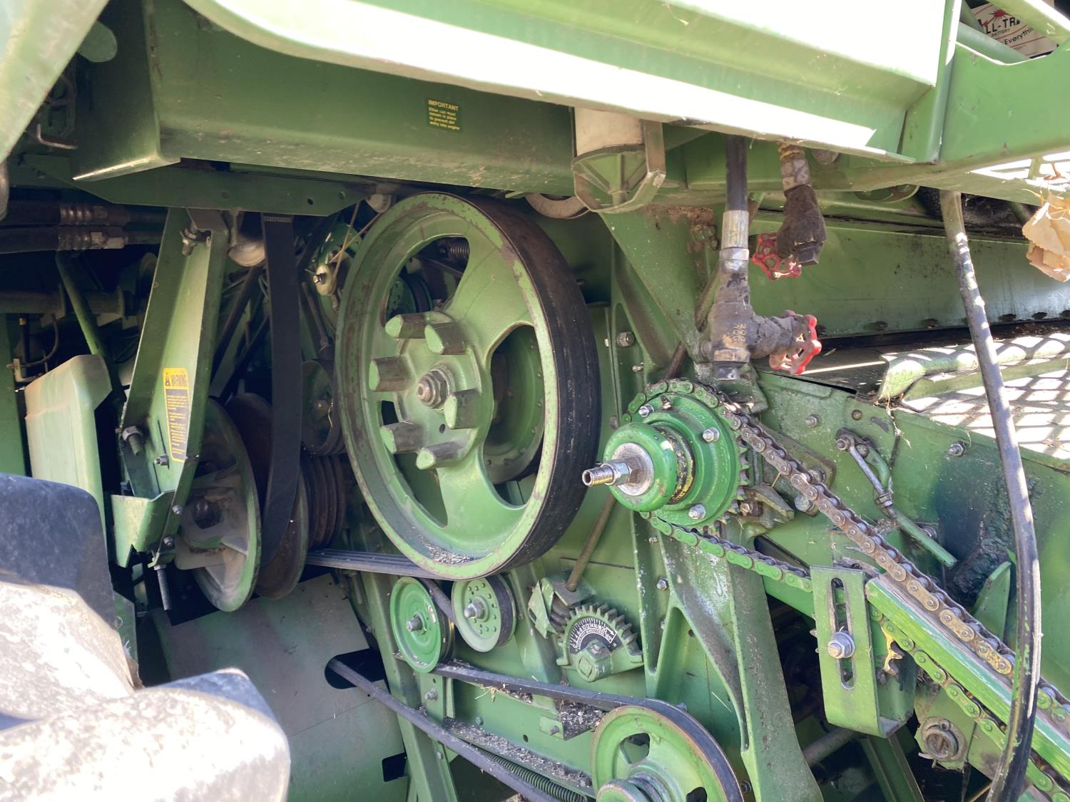 John Deere 214 14 ft pick-up header, variable speed reel, chopper/straw spreader, 16 ft auger, 24.5-32 front tires, 11.25-24 rear tires