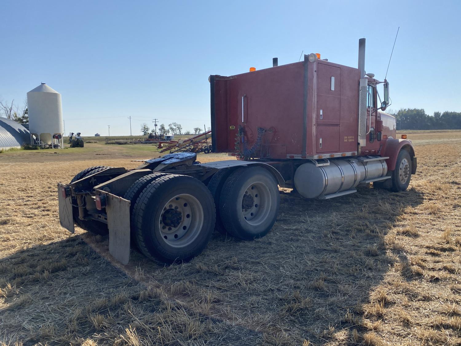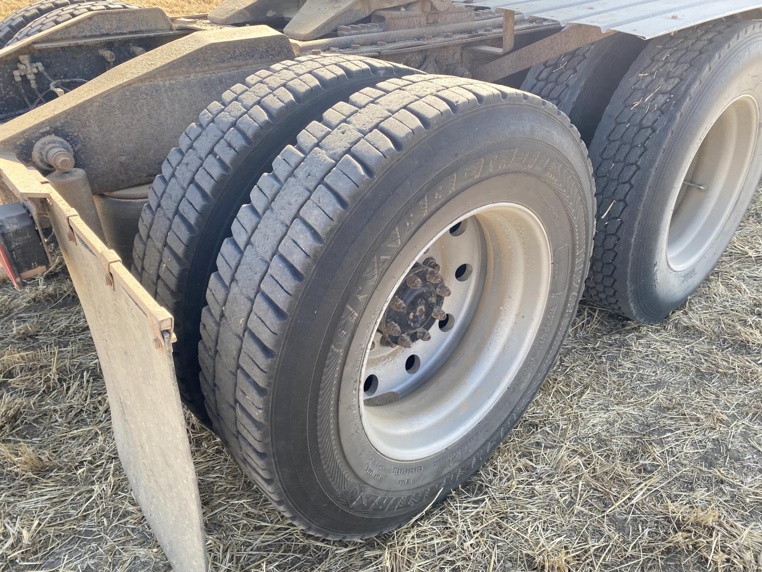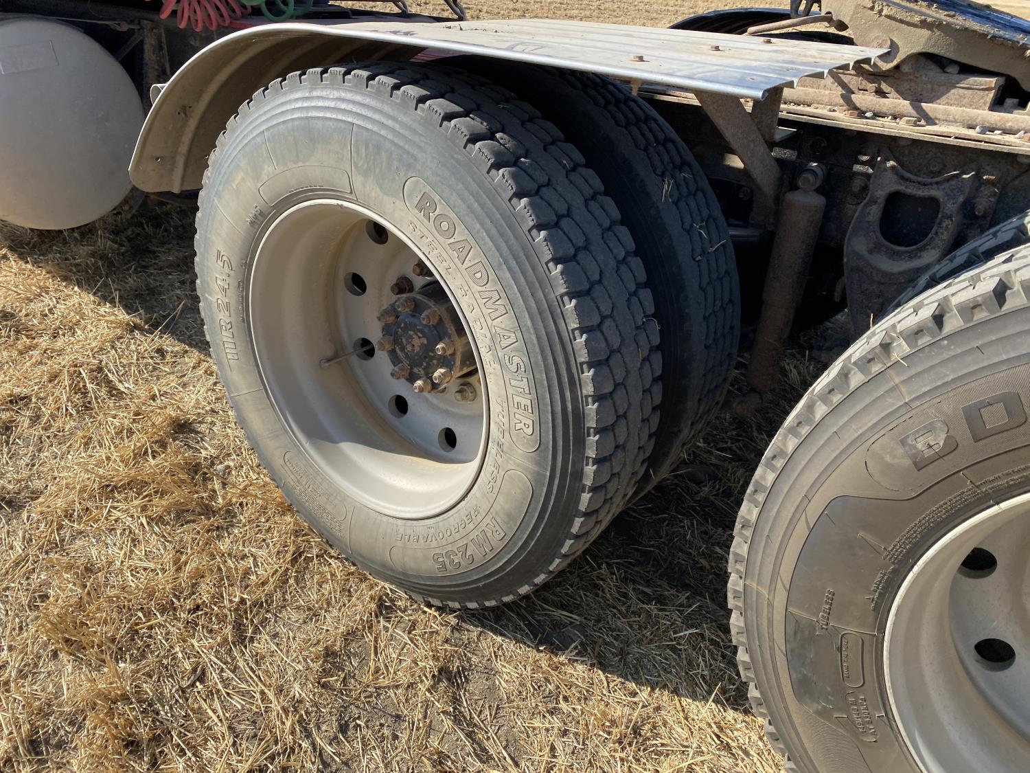 Caterpillar 3406B 14.6 L 6 cylinder 425 HP engine, engine block heater, Eaton Fuller 13 speed manual transmission, flat top 60 inch sleeper, A/C, cruise control, air ride driver seat, air ride suspension, 12,000 lb front axle, 38,000 lb rear axles, diff lock, 240 inch WB, all aluminum wheels, 11R24.5 tires