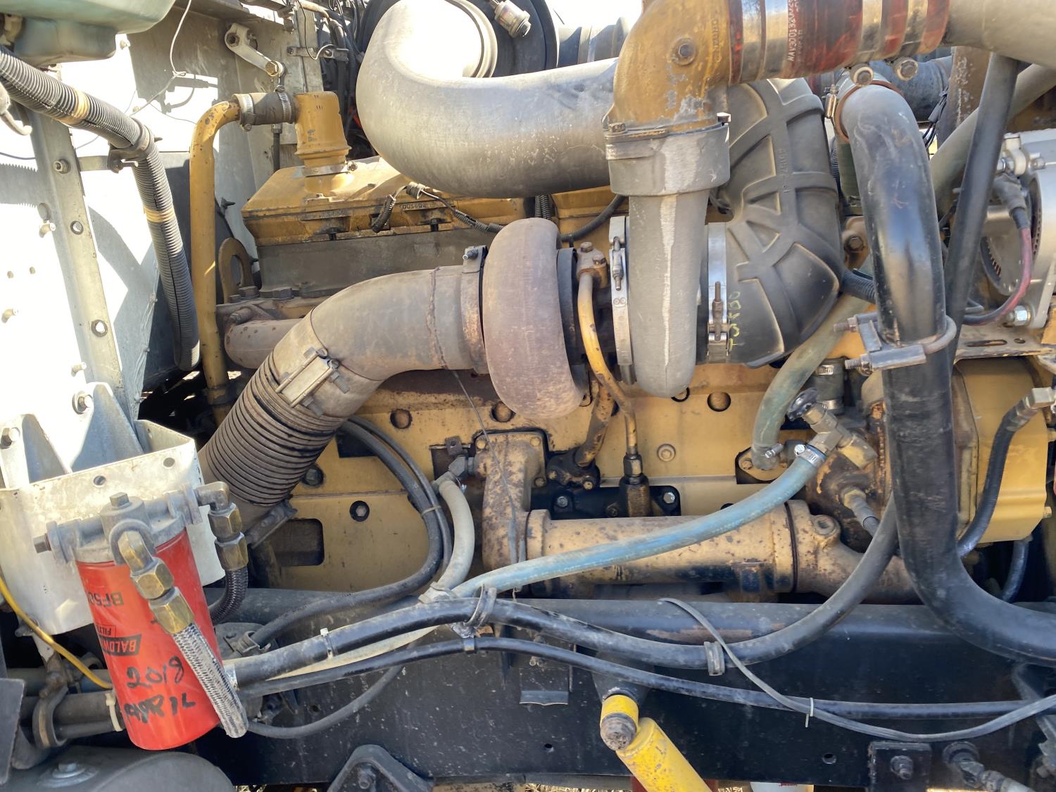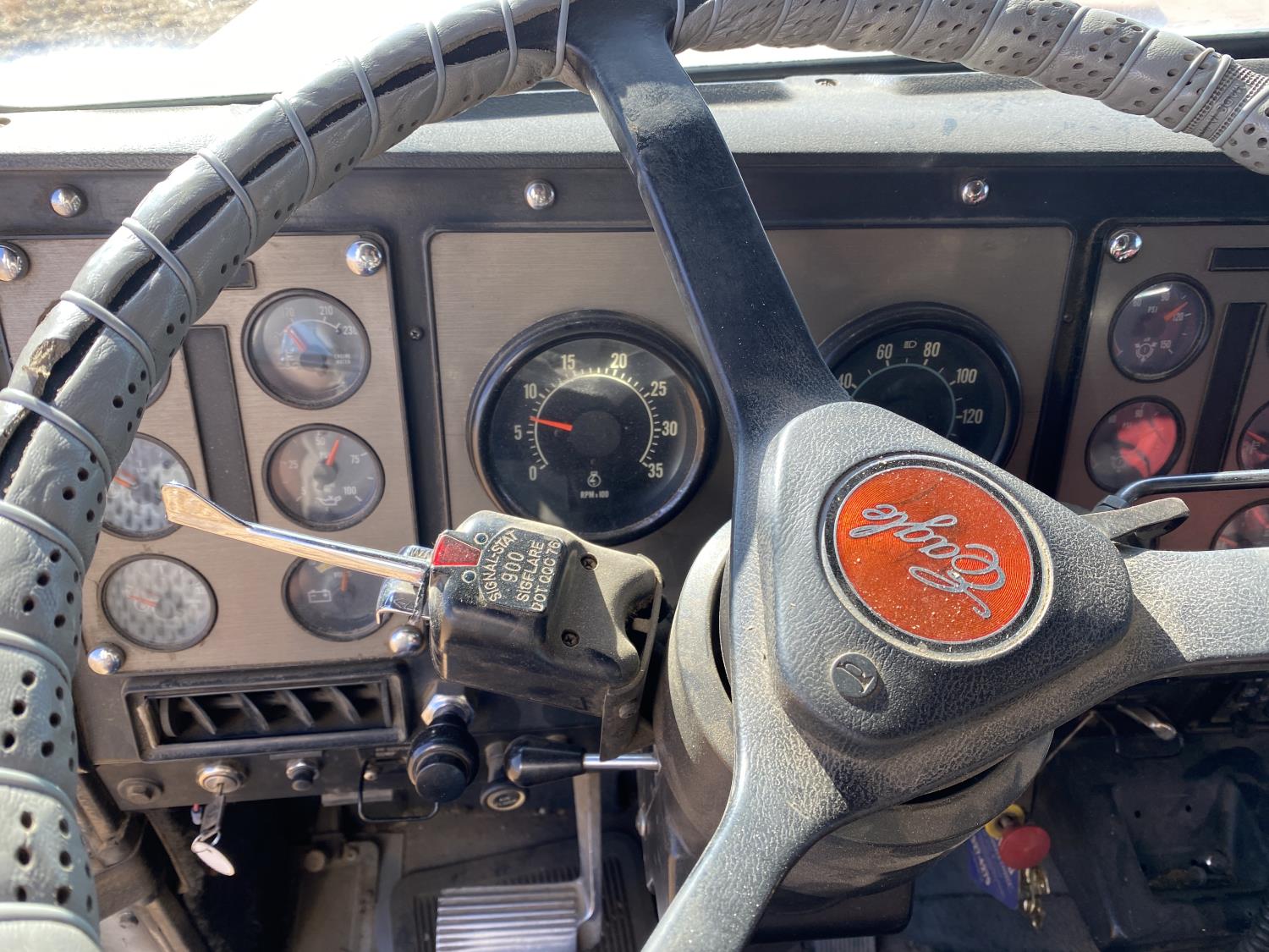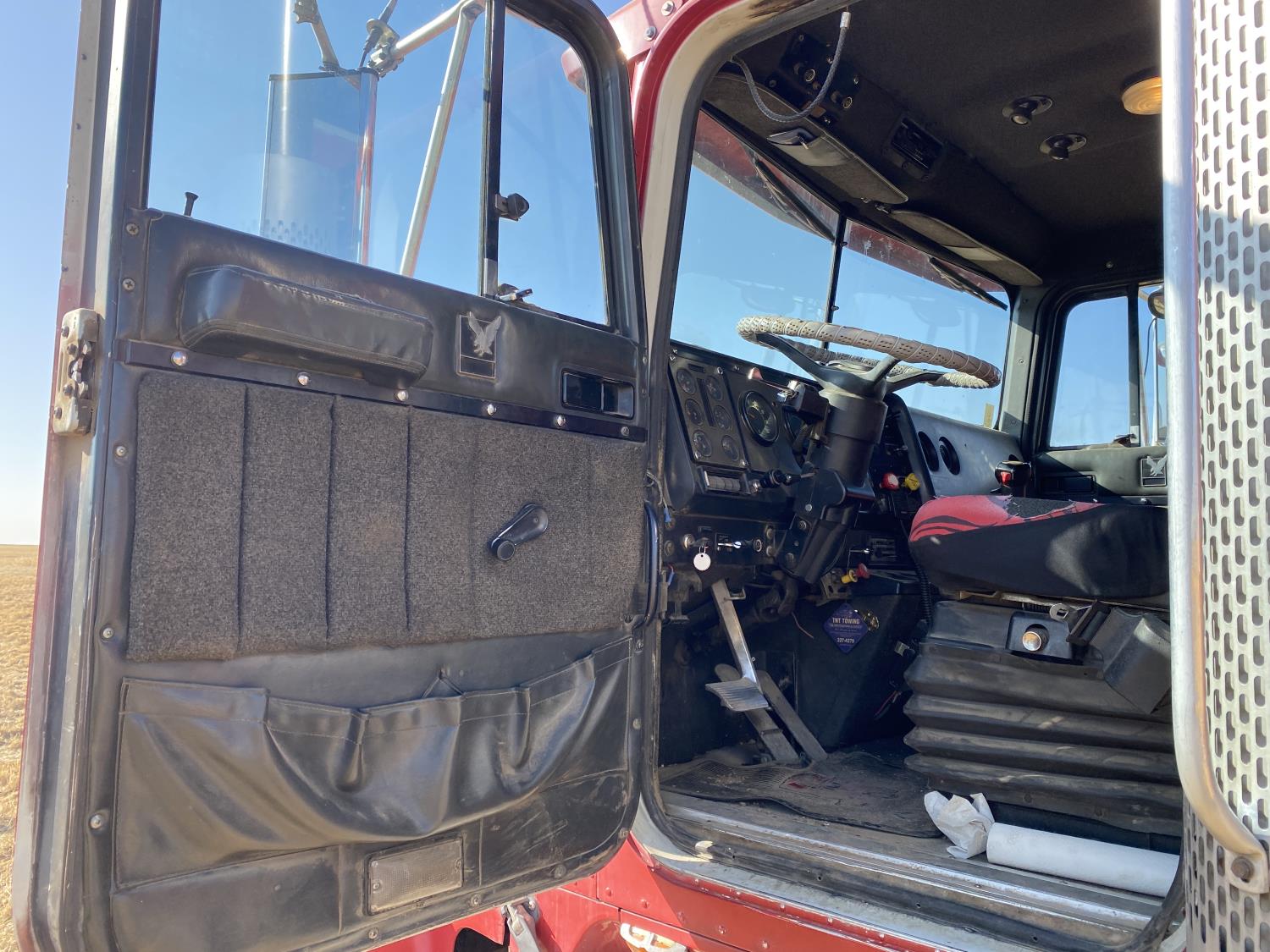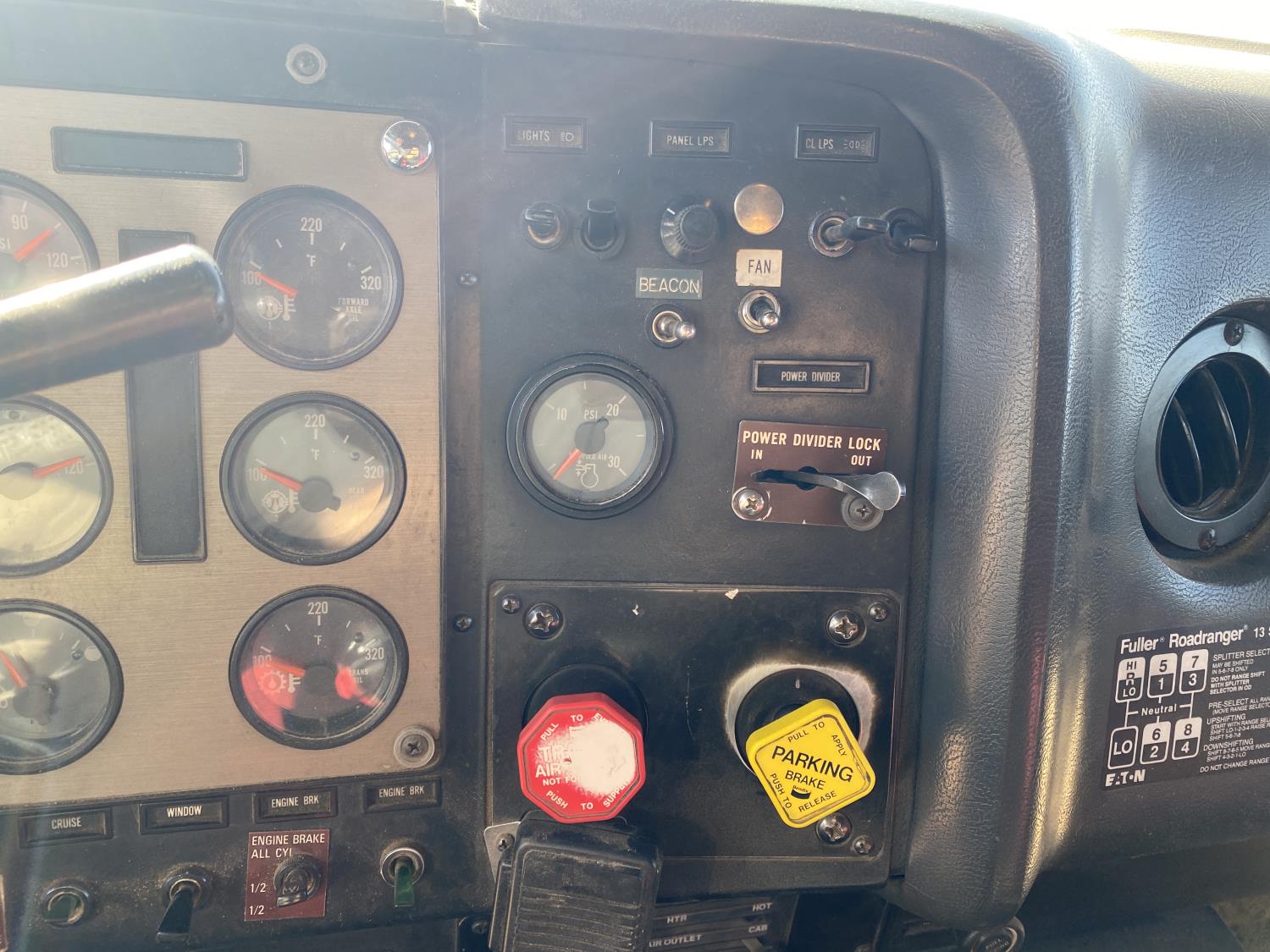 Caterpillar 3406B 14.6 L 6 cylinder 425 HP engine, engine block heater, Eaton Fuller 13 speed manual transmission, flat top 60 inch sleeper, A/C, cruise control, air ride driver seat, air ride suspension, 12,000 lb front axle, 38,000 lb rear axles, diff lock, 240 inch WB, all aluminum wheels, 11R24.5 tires
