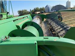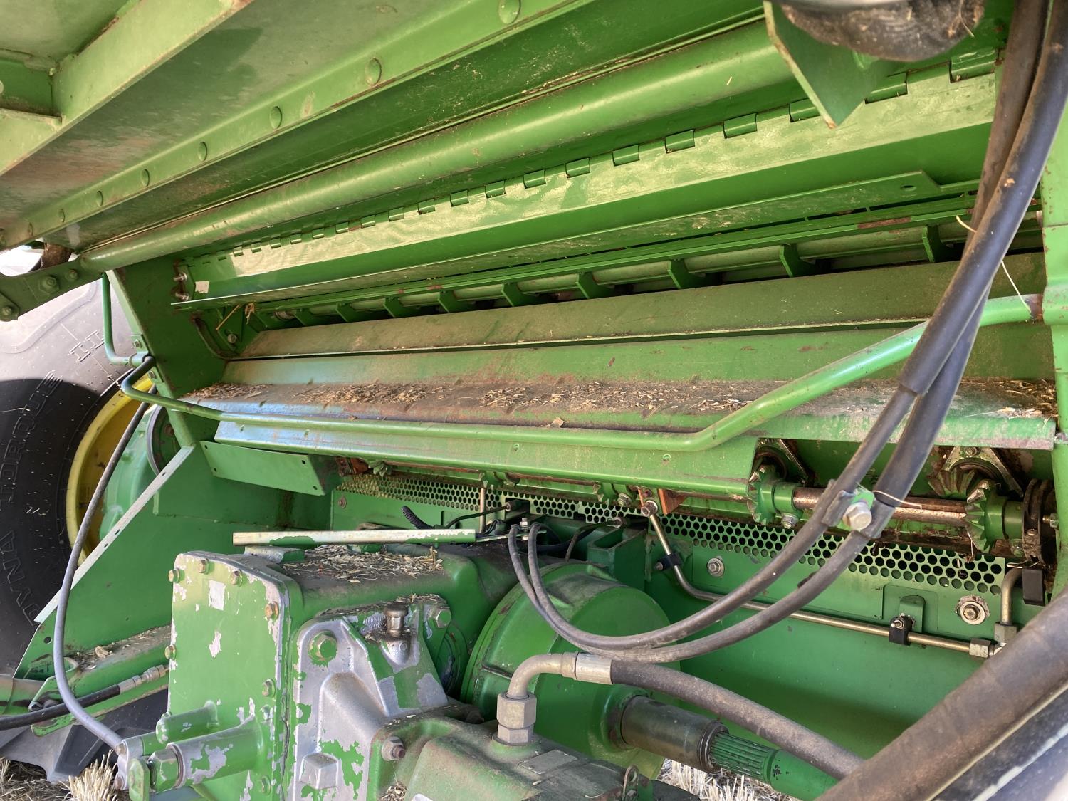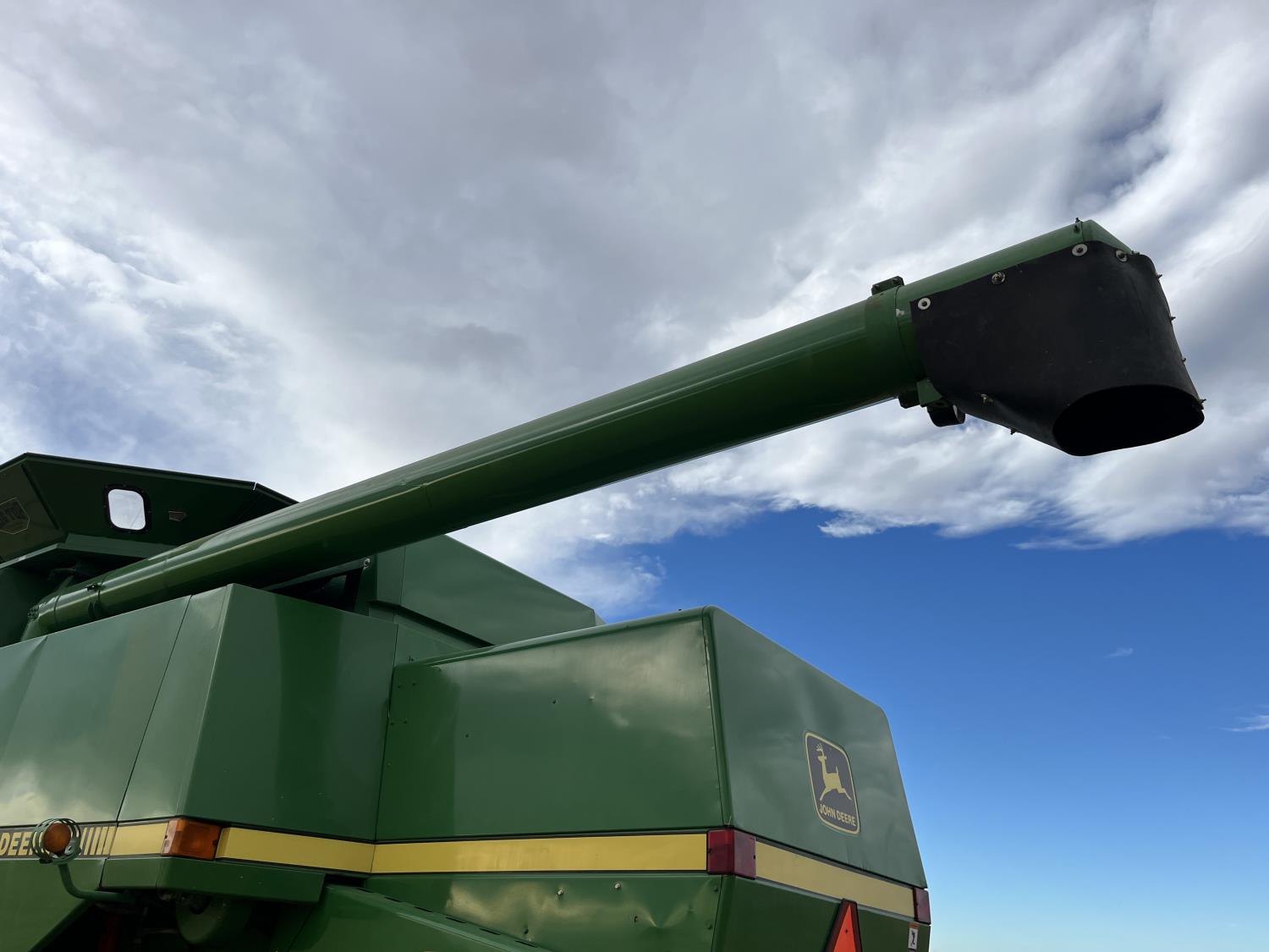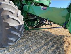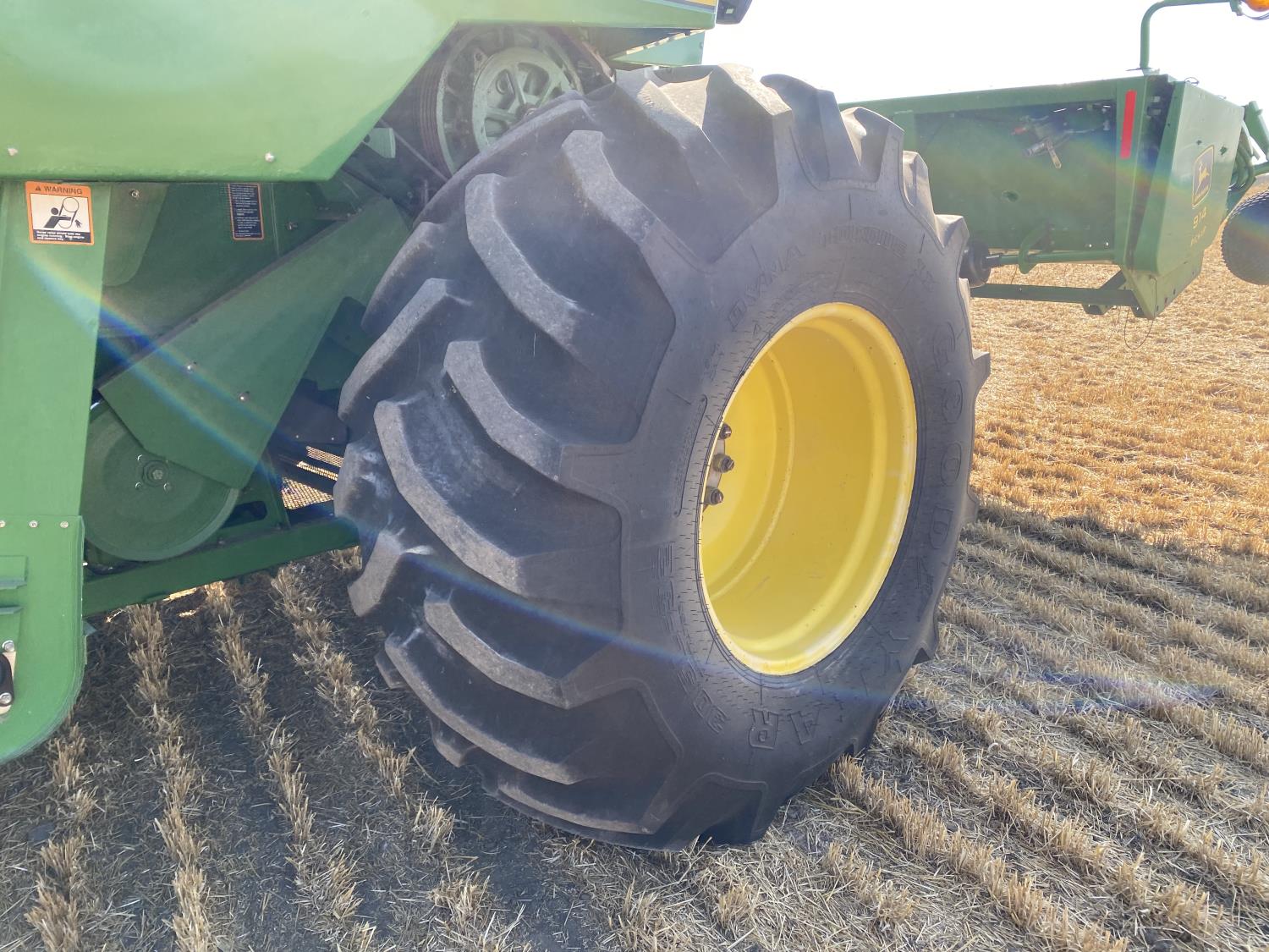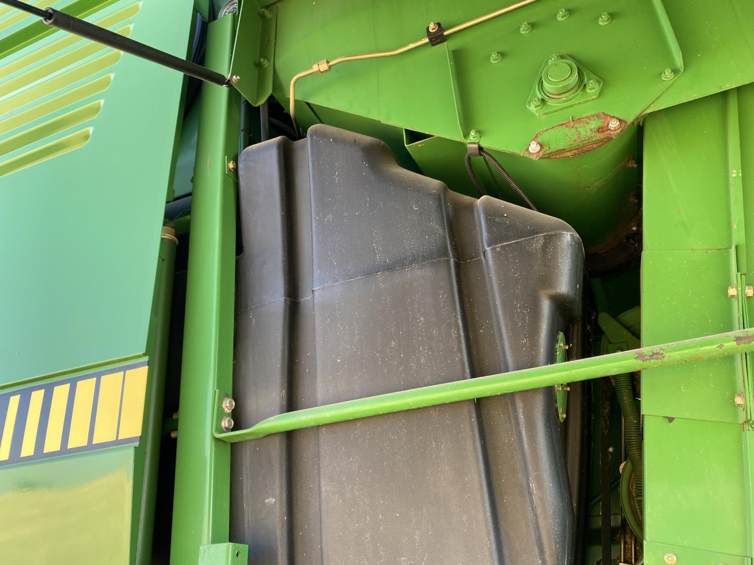1998 John Deere 914 14 ft pick-up header, variable speed reel, fore & aft, reverser, rock trap, chaff spreader, fine cut chopper/spreader, grain tank extensions, 18 ft auger, A/C, buddy seat, 30.5-32 front tires, 16.9-26 rear tires