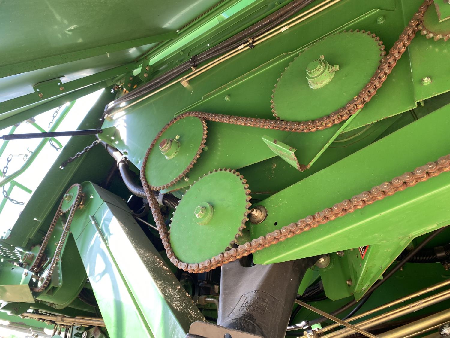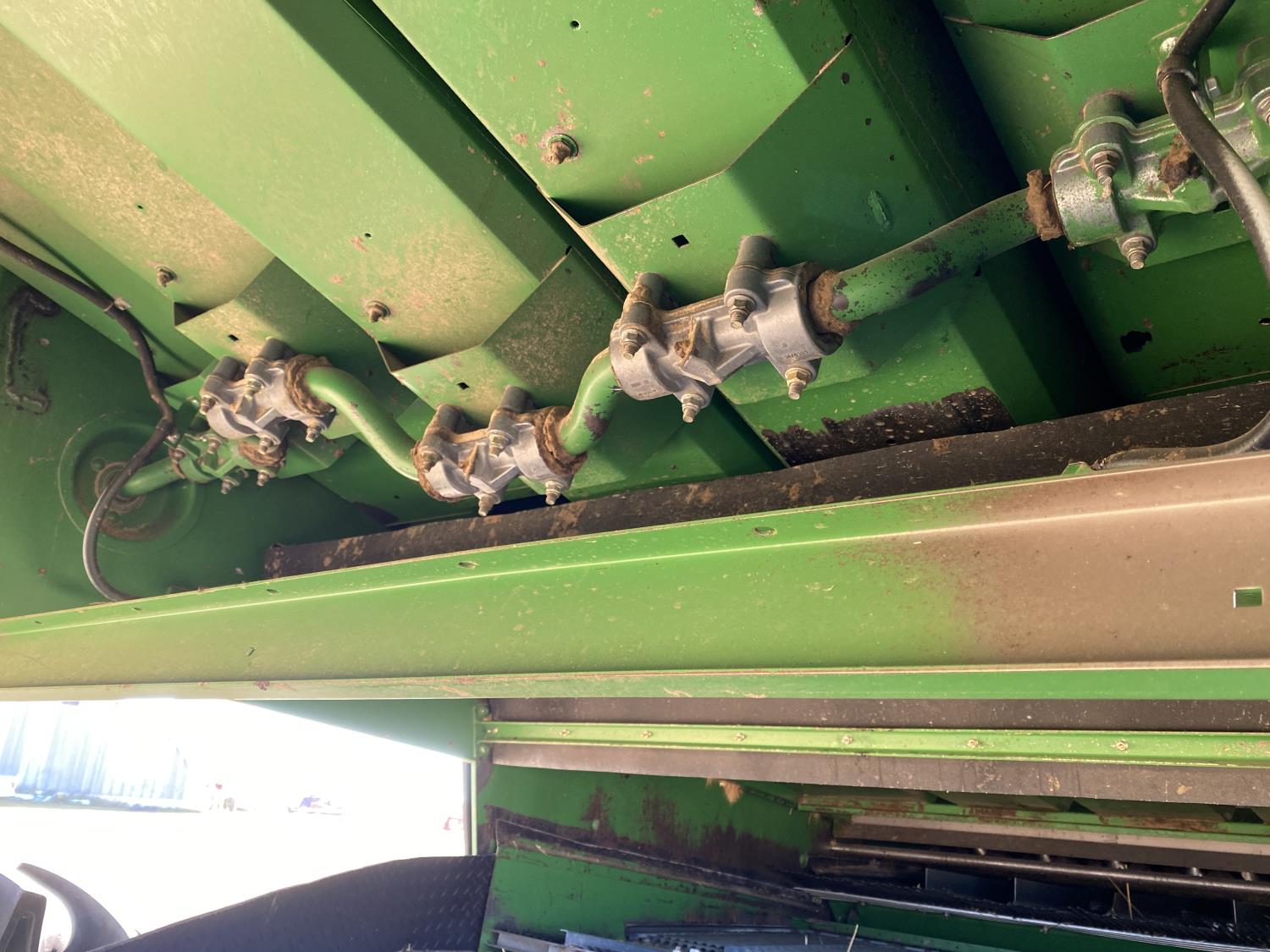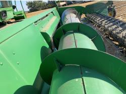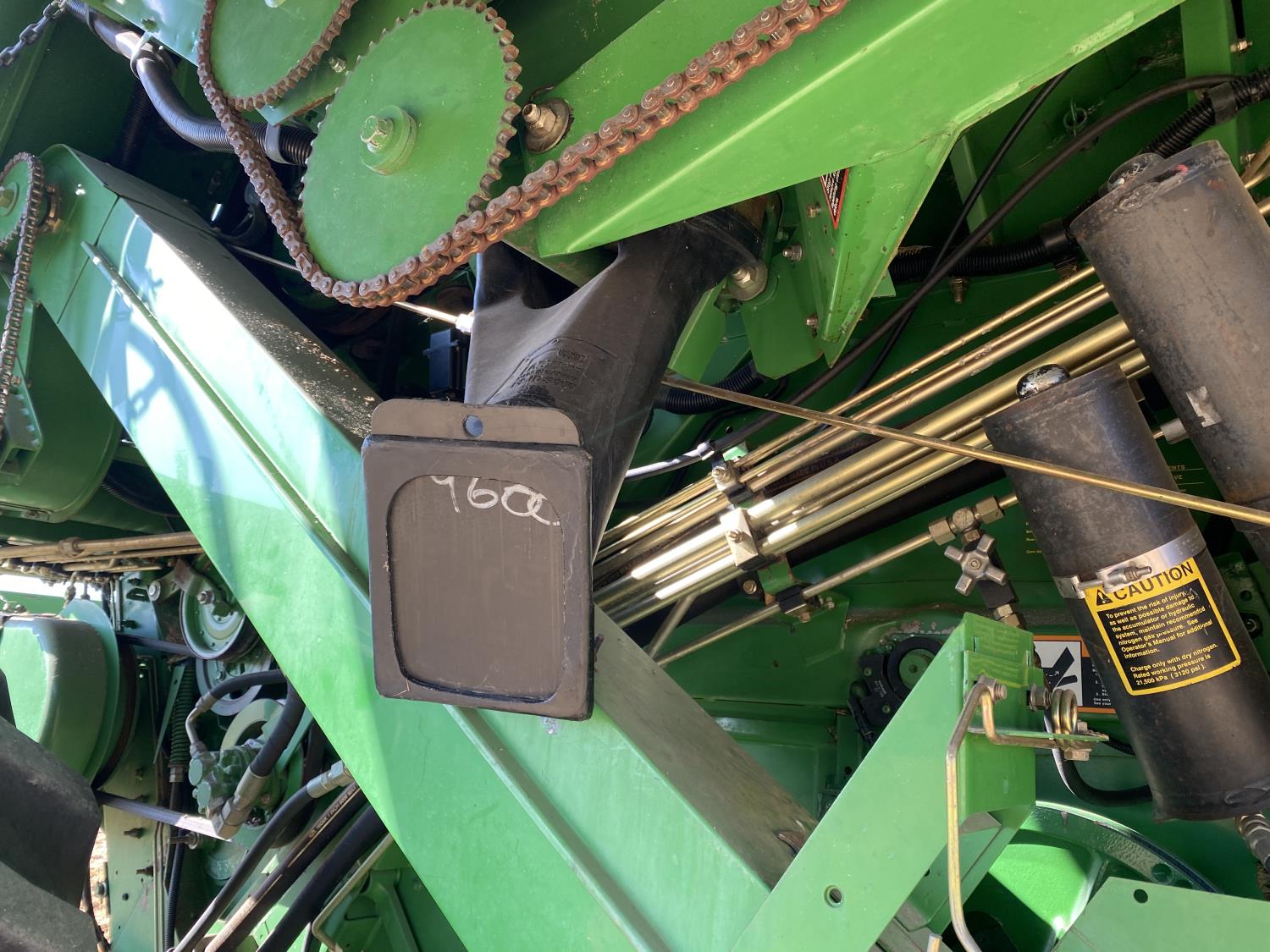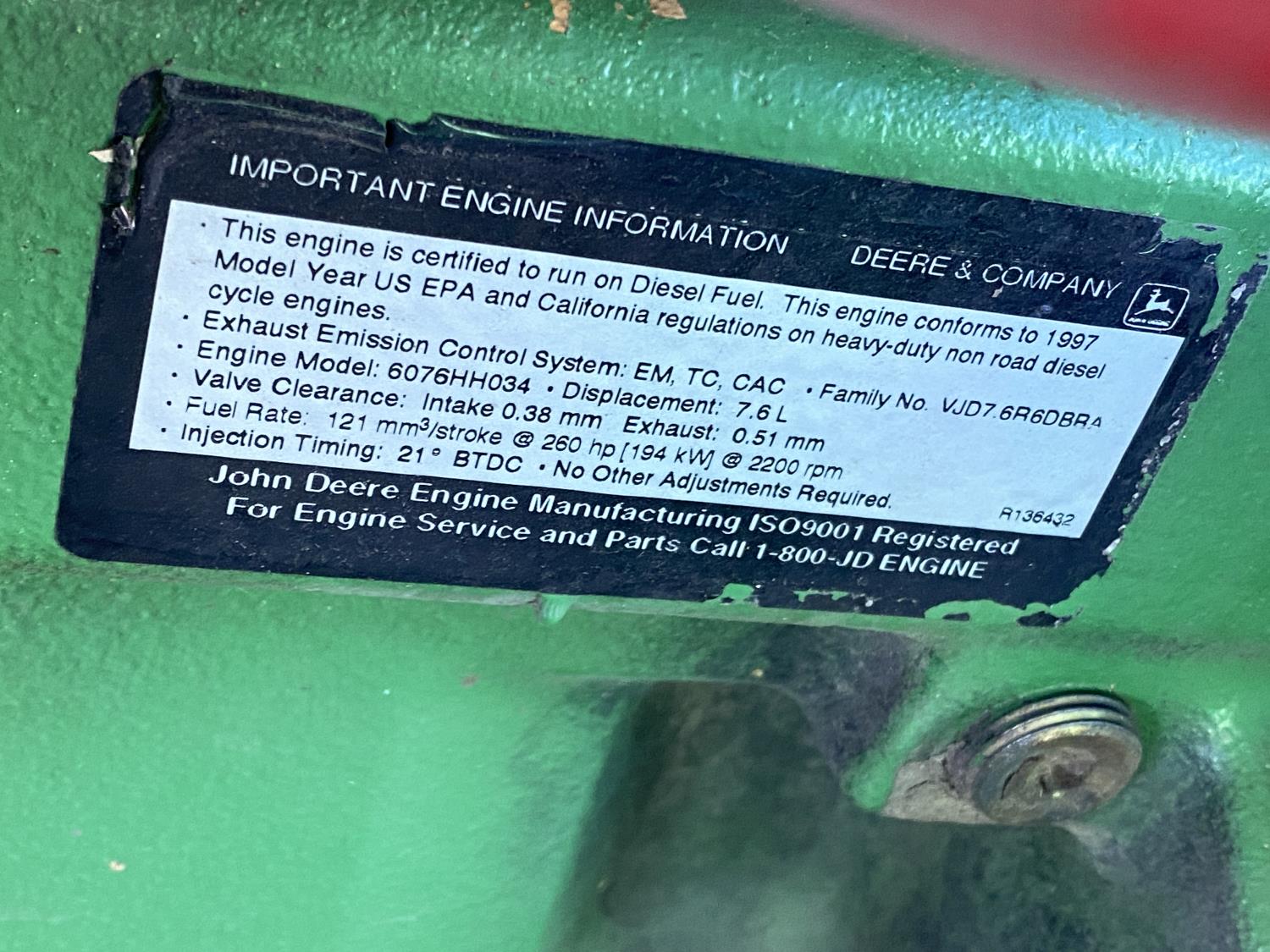 1998 John Deere 914 14 ft pick-up header, variable speed reel, fore & aft, reverser, rock trap, chaff spreader, fine cut chopper/spreader, grain tank extensions, 18 ft auger, A/C, buddy seat, 30.5-32 front tires, 16.9-26 rear tires