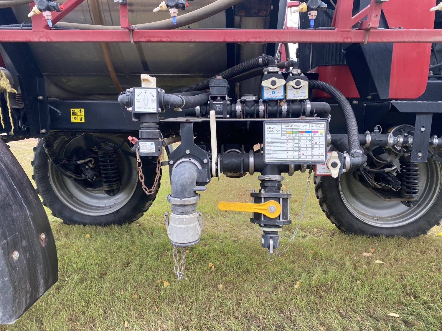 1200 US gallon stainless steel tank, 5 nozzle bodies, 5 sectional controls, fence row nozzles, rinse tank, A/C, radio, AutoGuidance Steering, hydro transmission, Dickey-john Land manager, Case FM-750, EZ-Steer, 300/95R46 tires