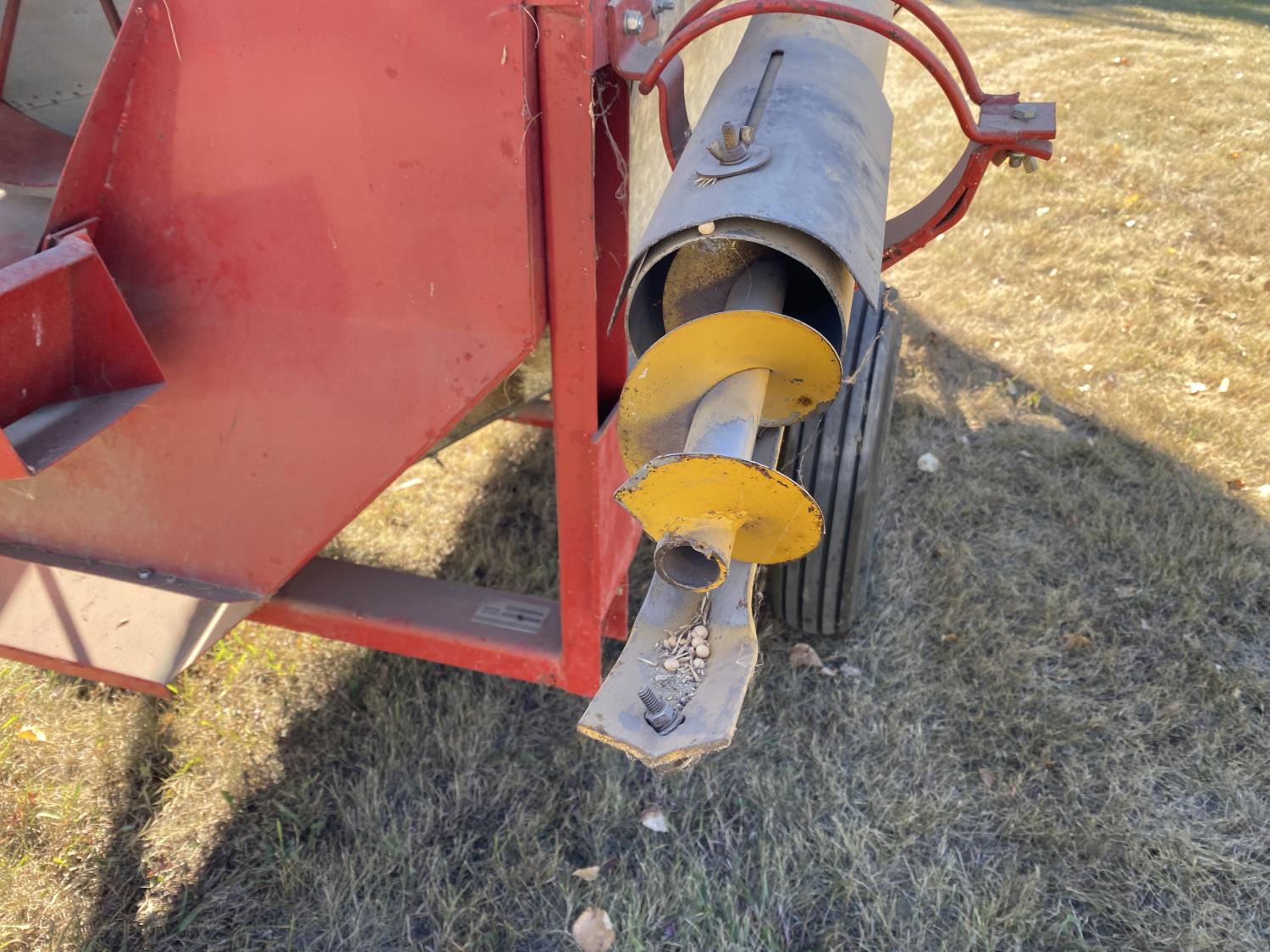 48 inch drum, 5 inch auger, 115/230V single phase 1-1/2 HP electric motor, 6.70-15 tires