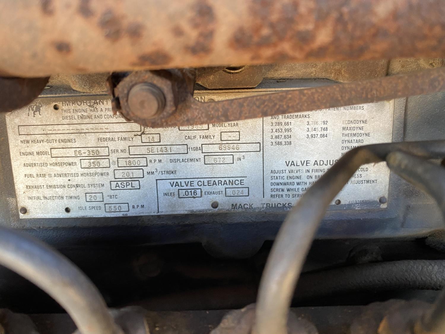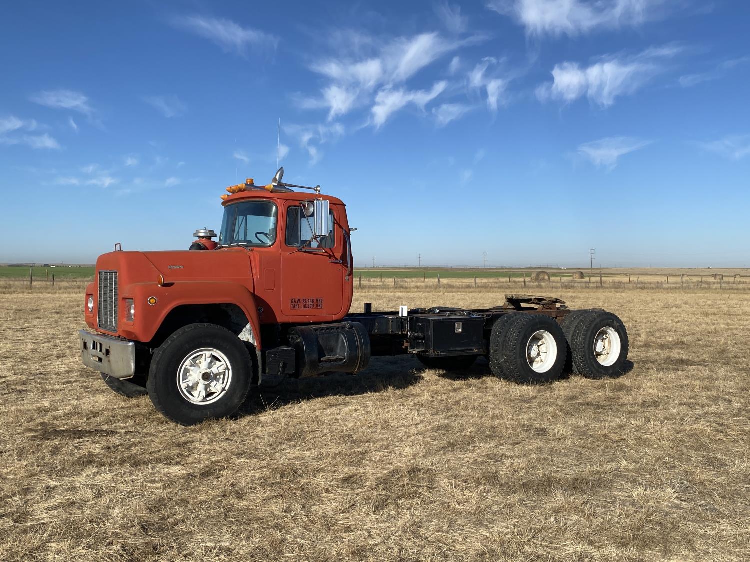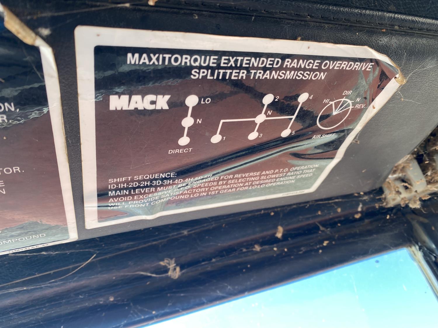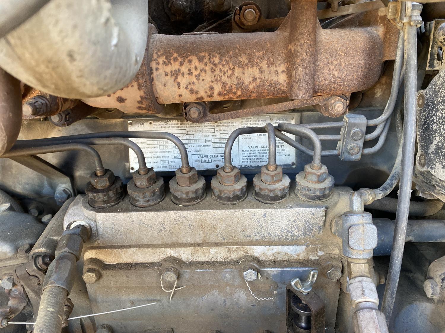 Mack E6-350 11.0 L 6 cylinder 350 HP engine, Mack AIR SHIFT OVERDRIVE 10 speed manual transmission, spring suspension, 11,900 lb front axle, 37,900 lb rear axles, 220 inch WB, 13R22.5 front tires, 11R22.5 rear tires