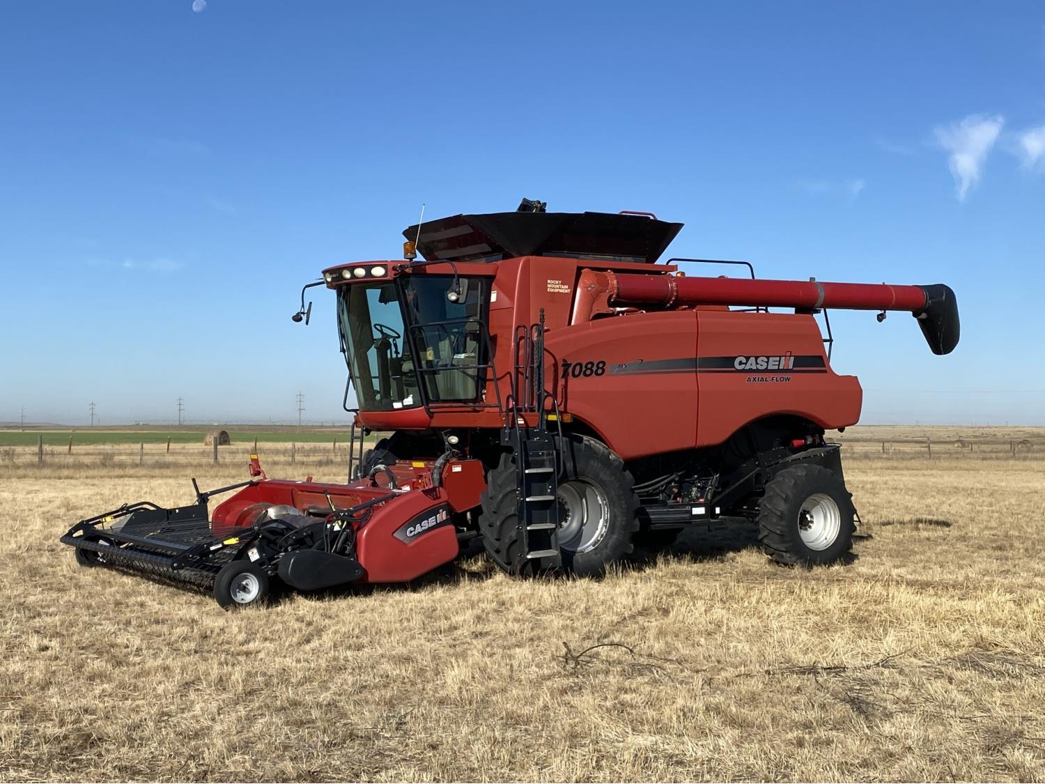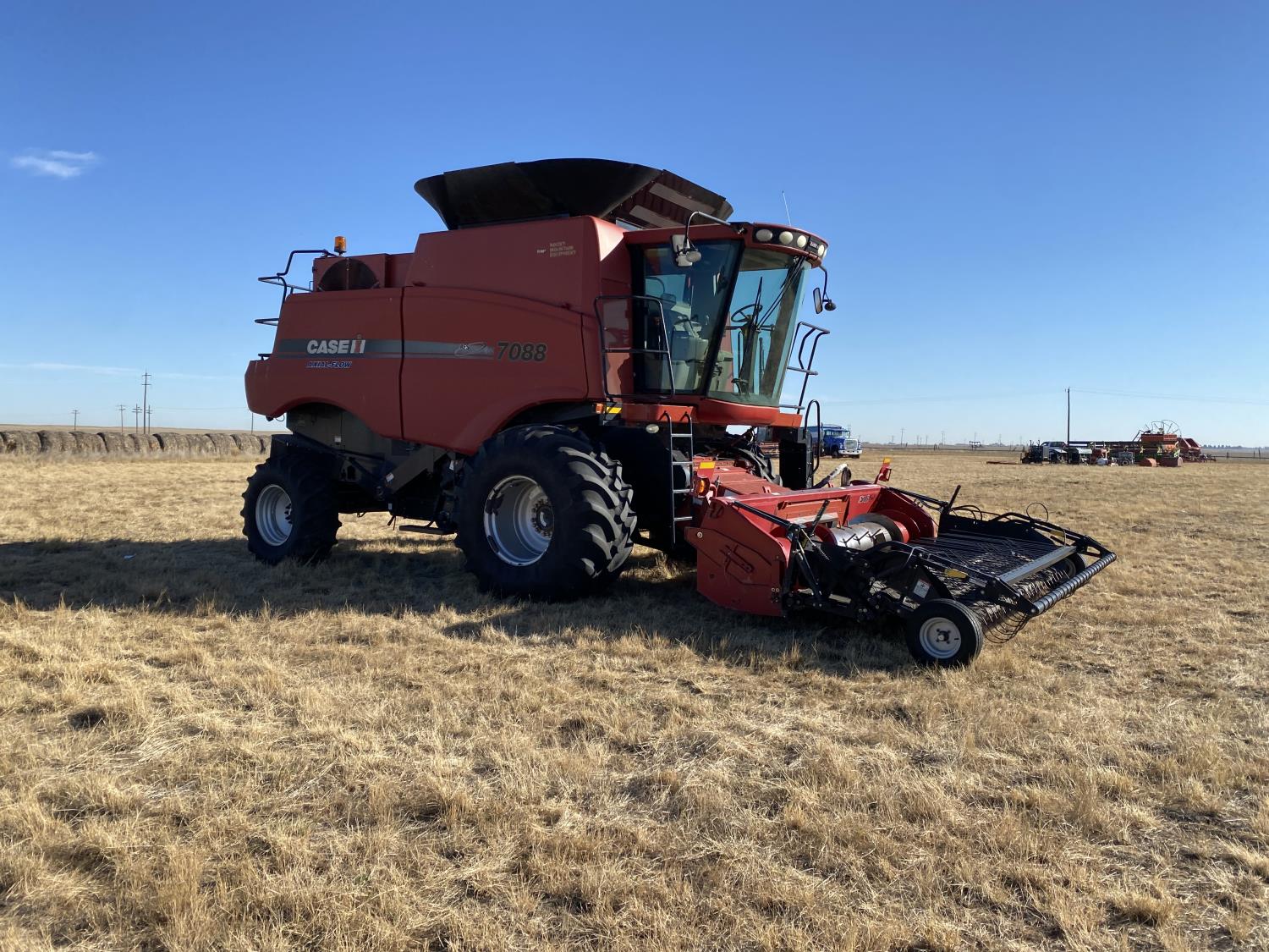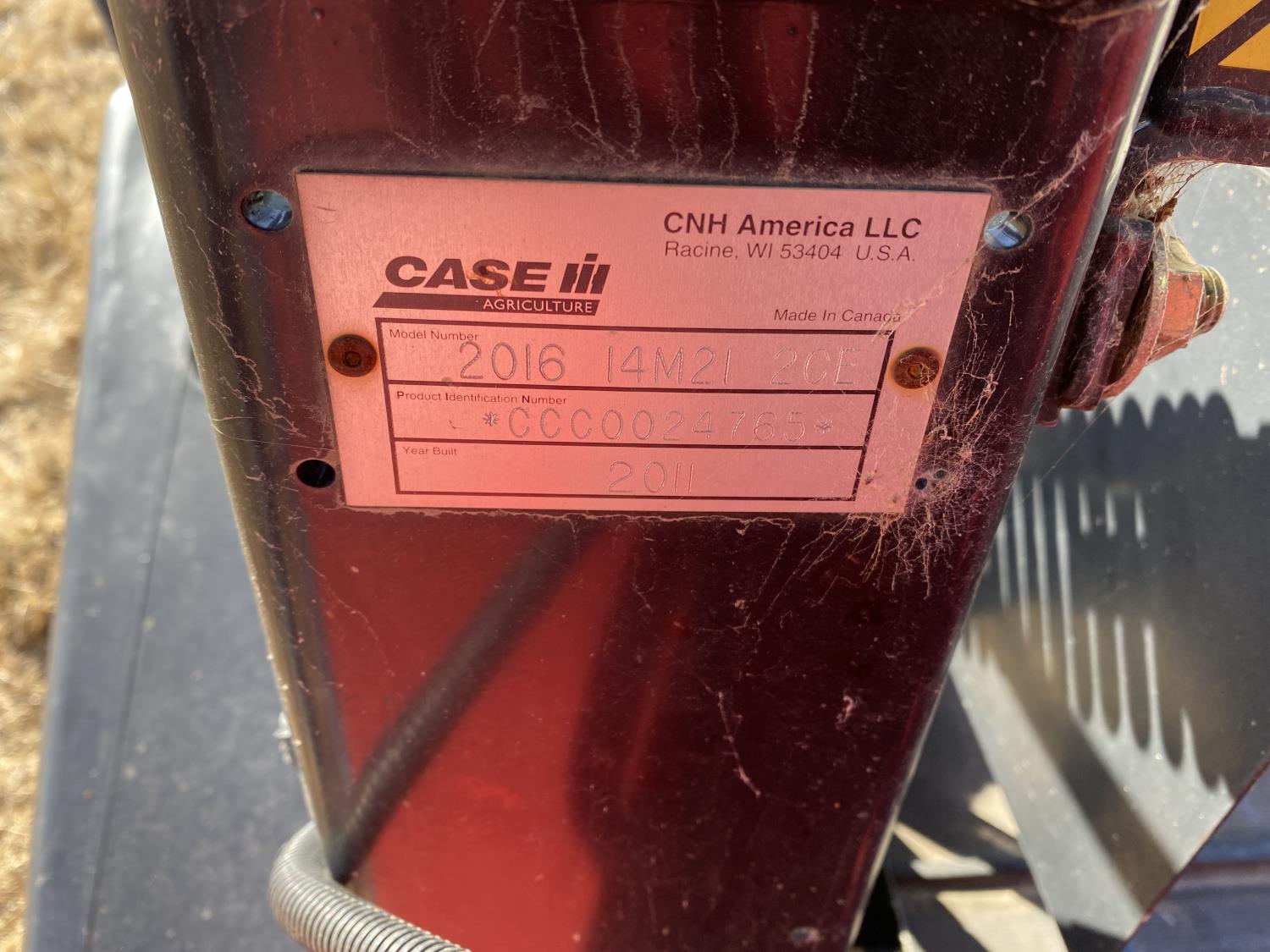 2011 Case iH 2016-14 14 ft pick-up header, variable speed reel, auto header height, fore & aft, reverser, lateral tilt, rock trap, yield & moisture, chaff spreader, chopper, grain tank extensions, 20 ft auger, A/C, buddy seat, AFS Pro 600 Monitor, 800/65R32 front tires, 18.4-26 rear tires