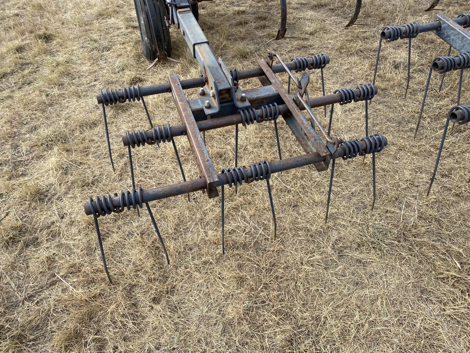 12 inch spacing, 10 inch sweeps, spring tooth harrows, rear hitch, 9.5L-15 tires