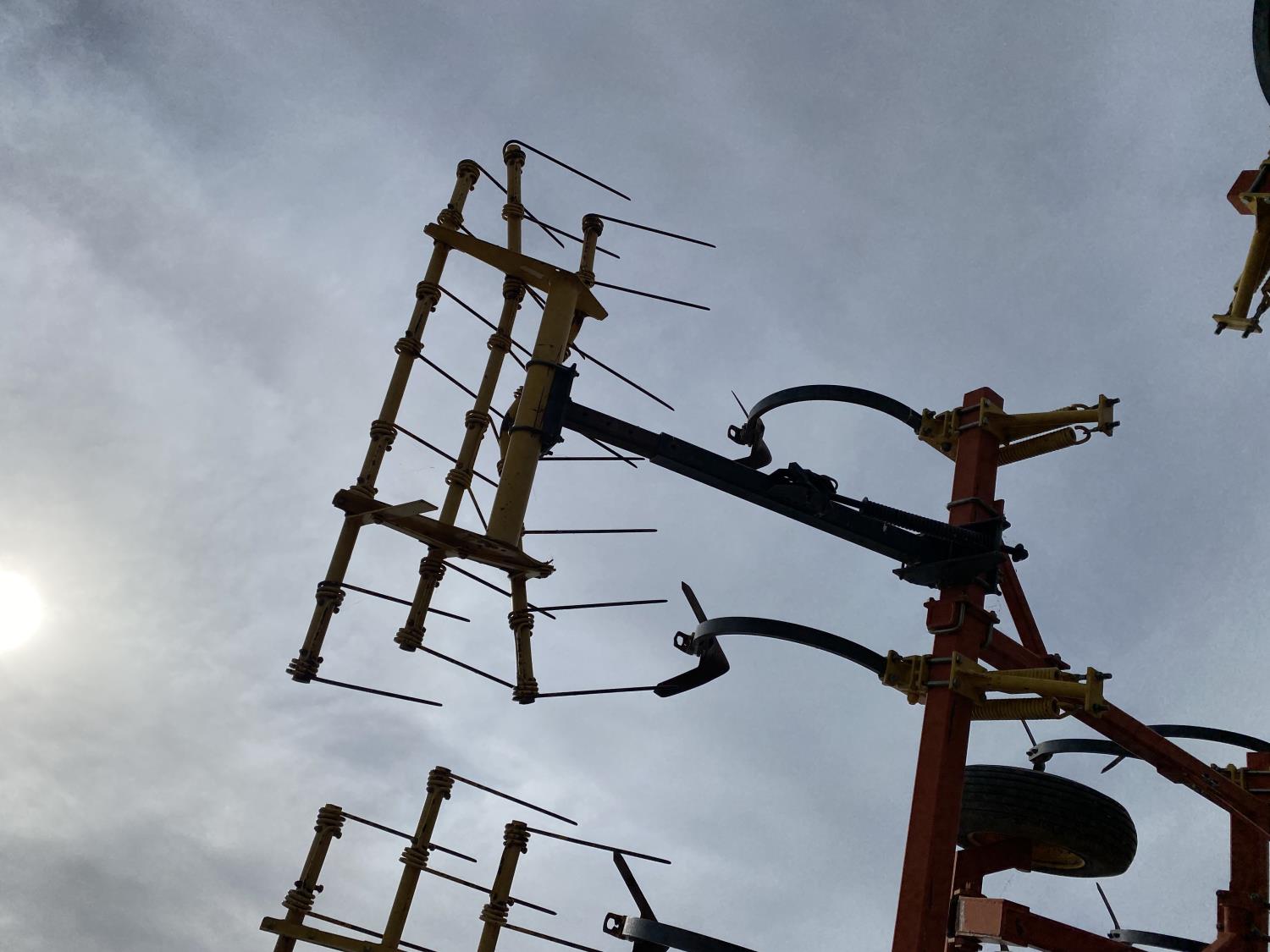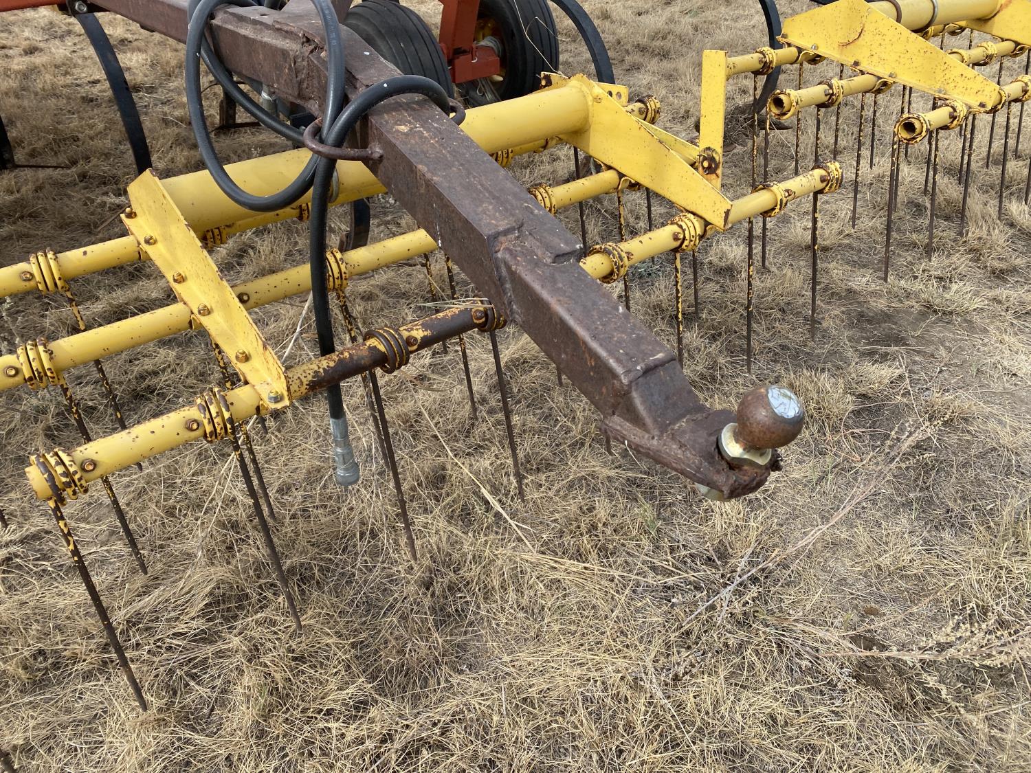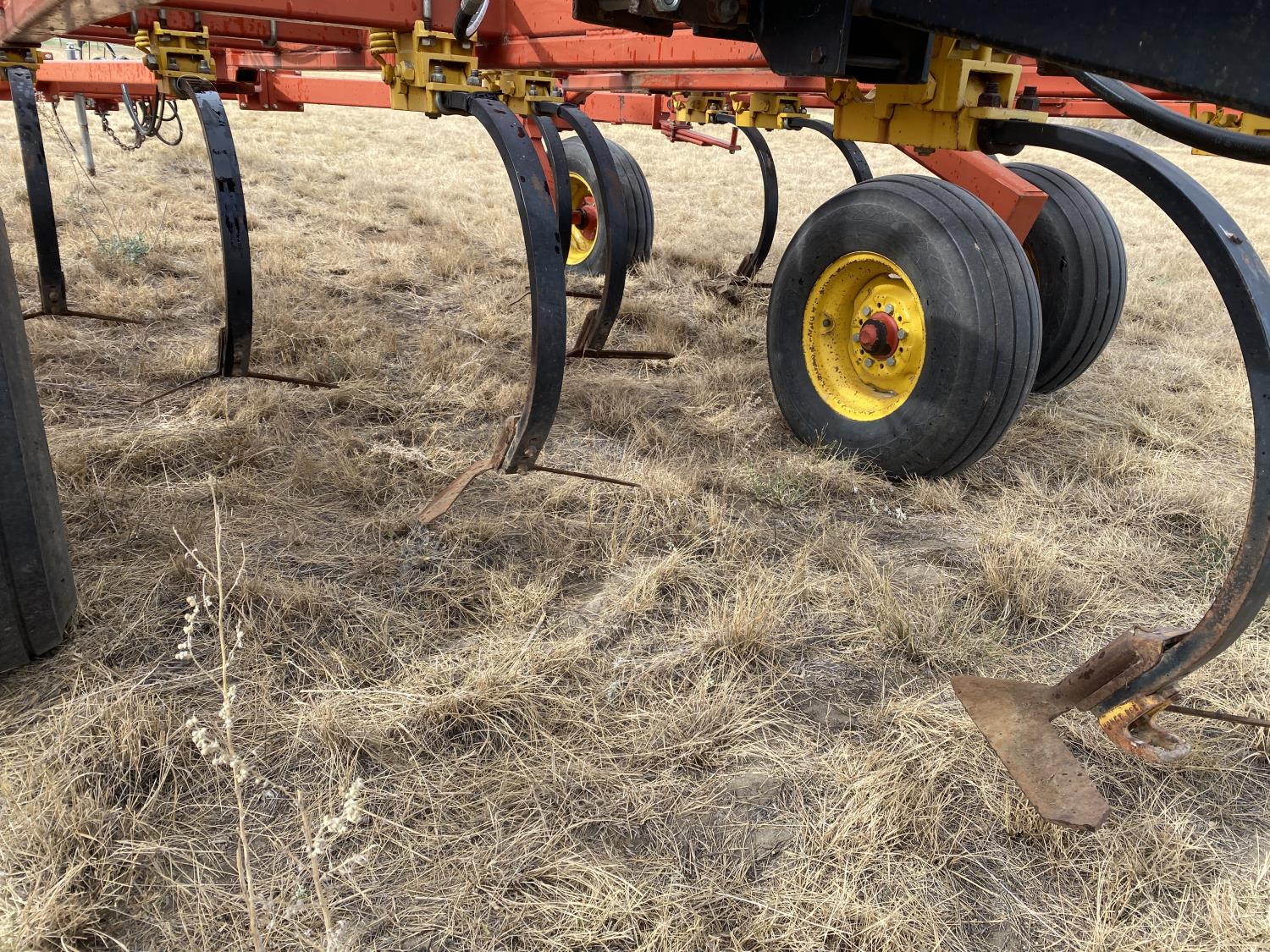 12 inch spacing, 24 inch sweeps, spring tooth harrows, rear hitch, 11L-25 tires