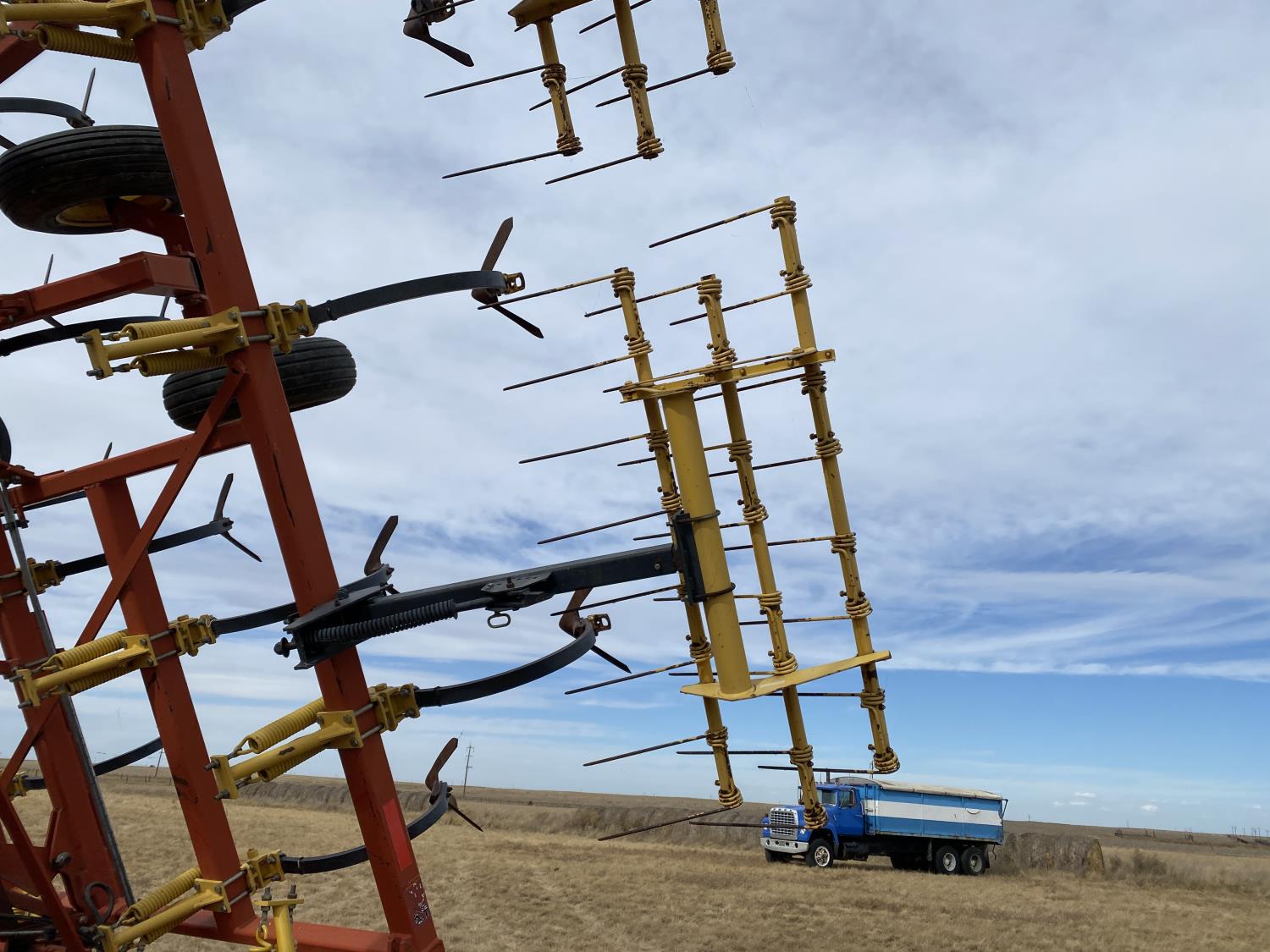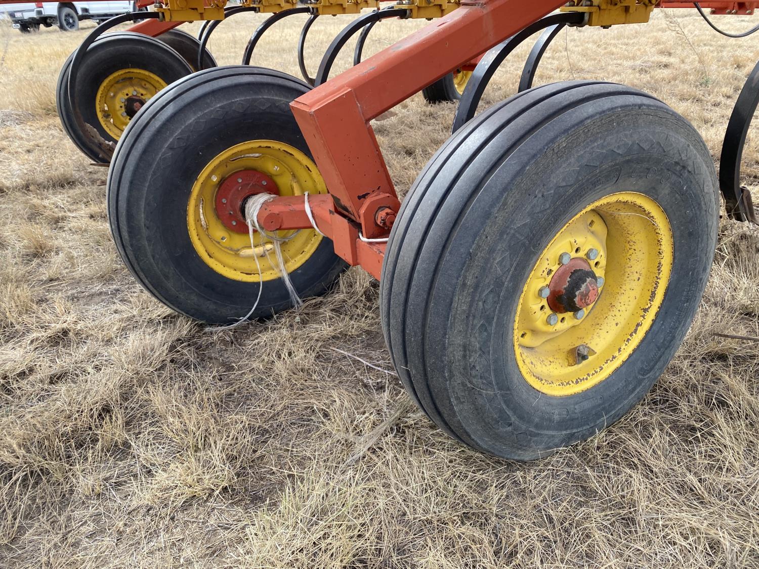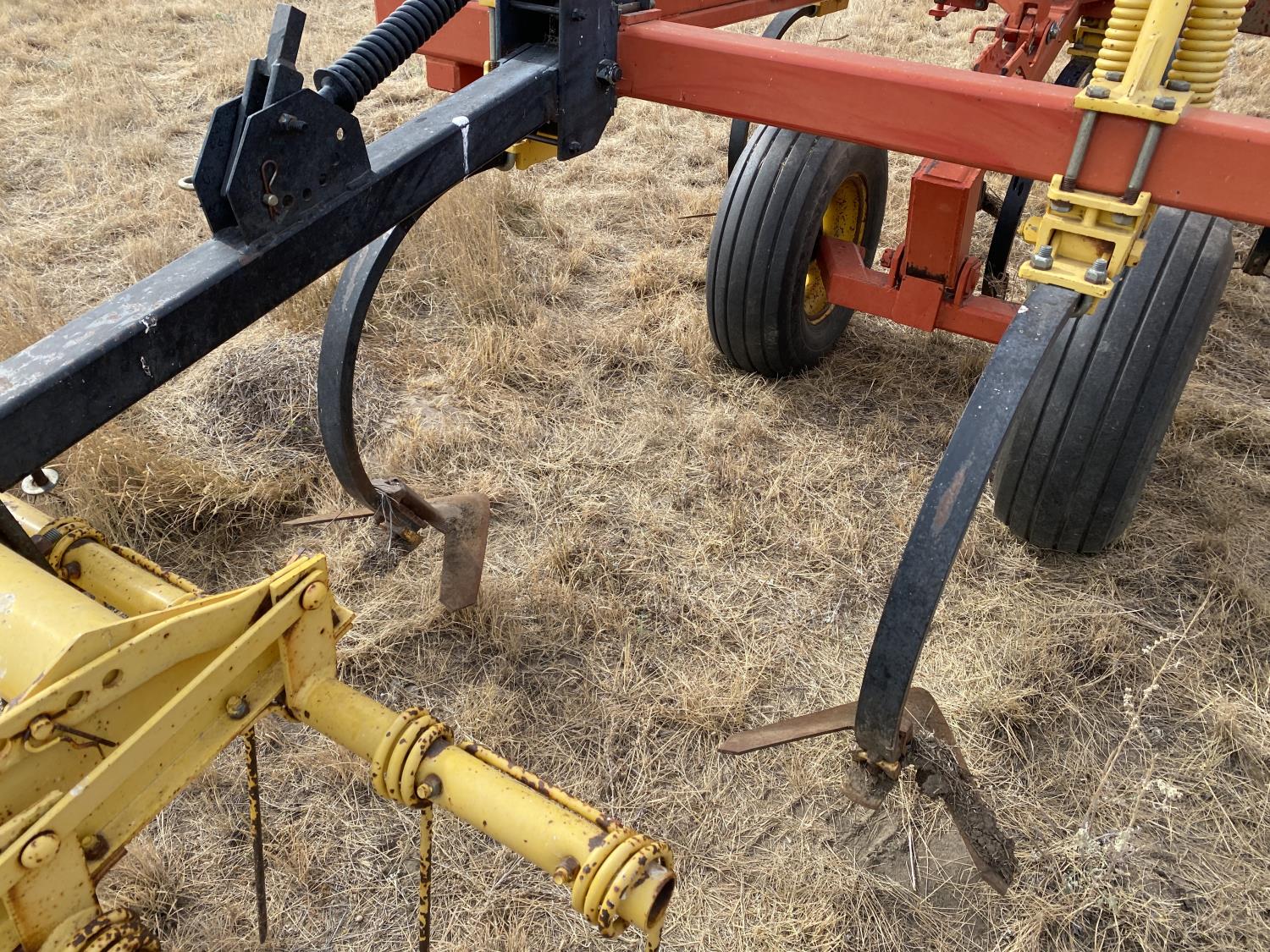 12 inch spacing, 24 inch sweeps, spring tooth harrows, rear hitch, 11L-25 tires