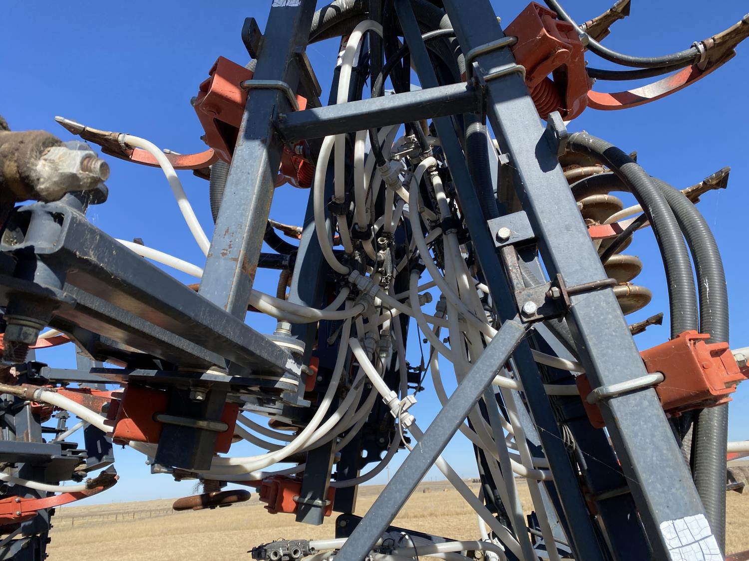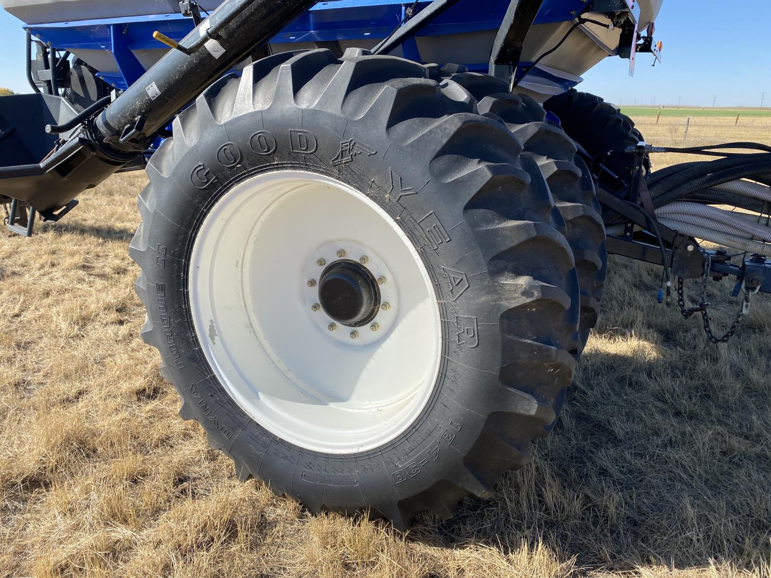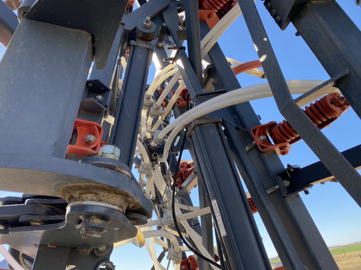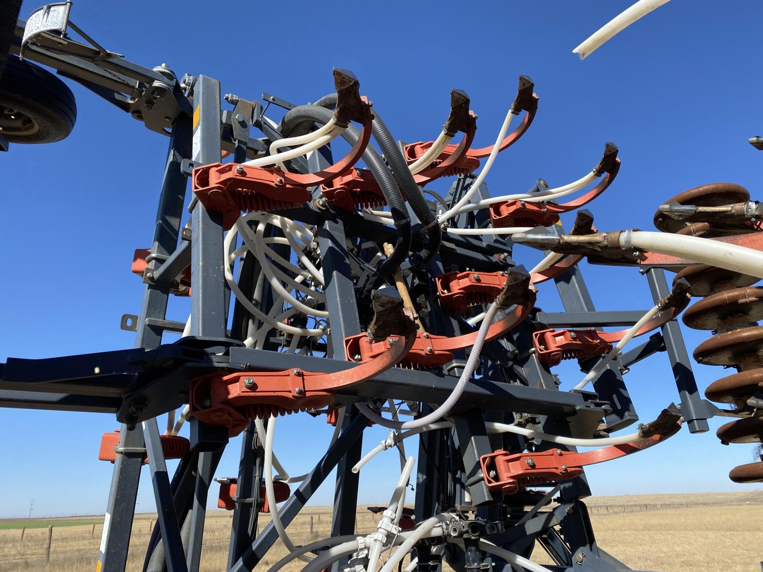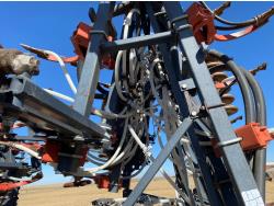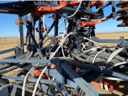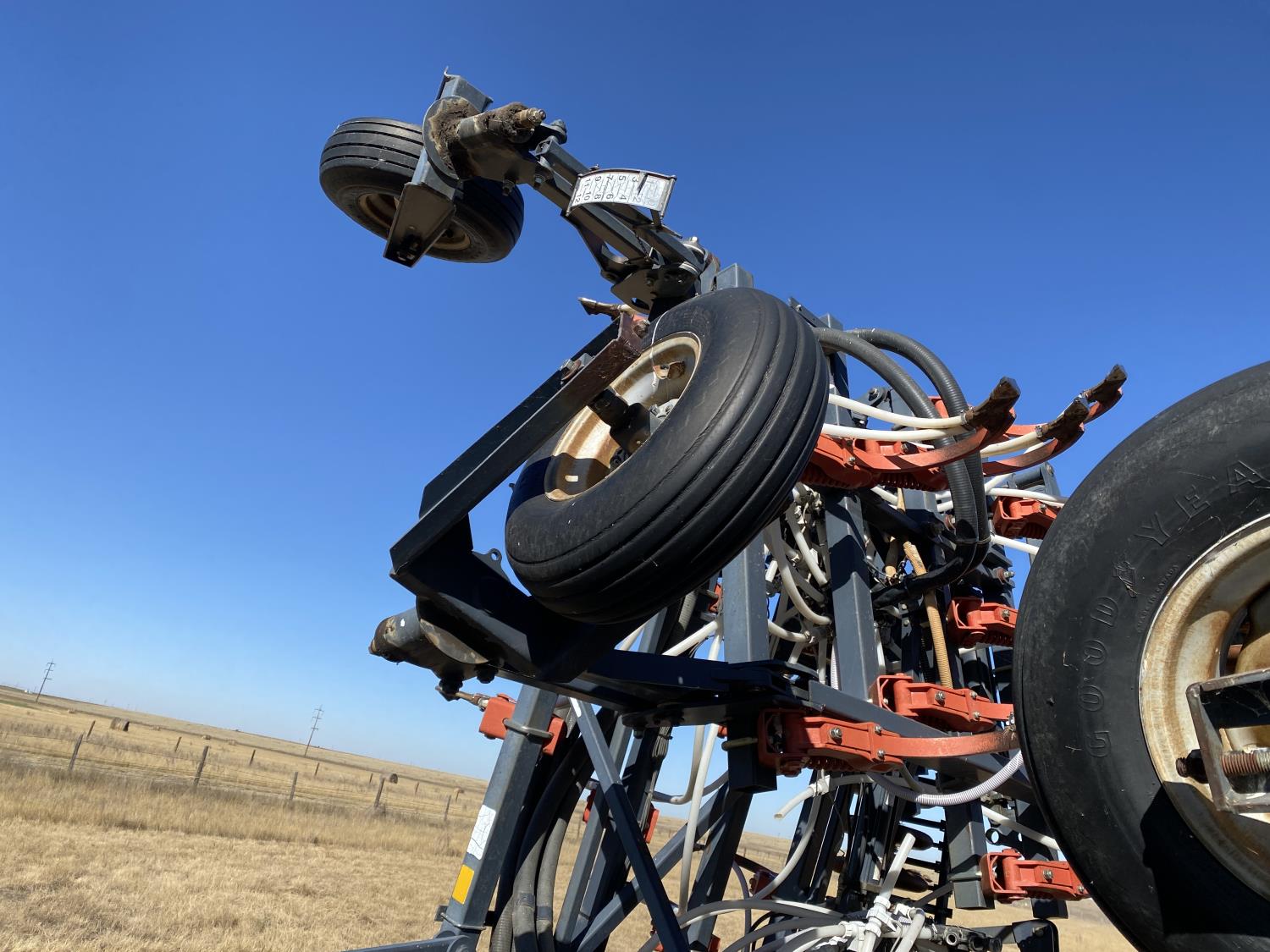 10 inch spacing, double shoot openers, 4 inch steel packers, Air Cart: 3 compartments, 8 inch loading auger, single fan, variable rate metering, 3 tank cameras, dual 18.4-38 rear tires