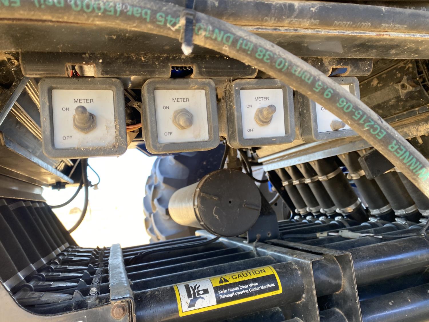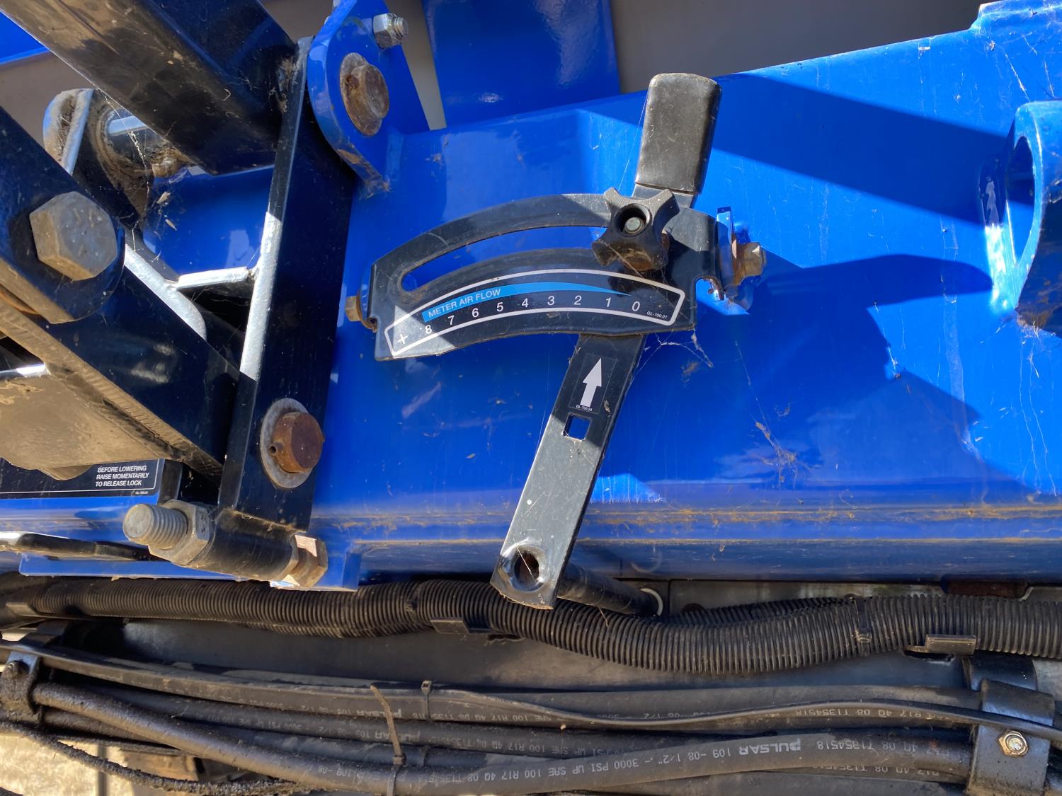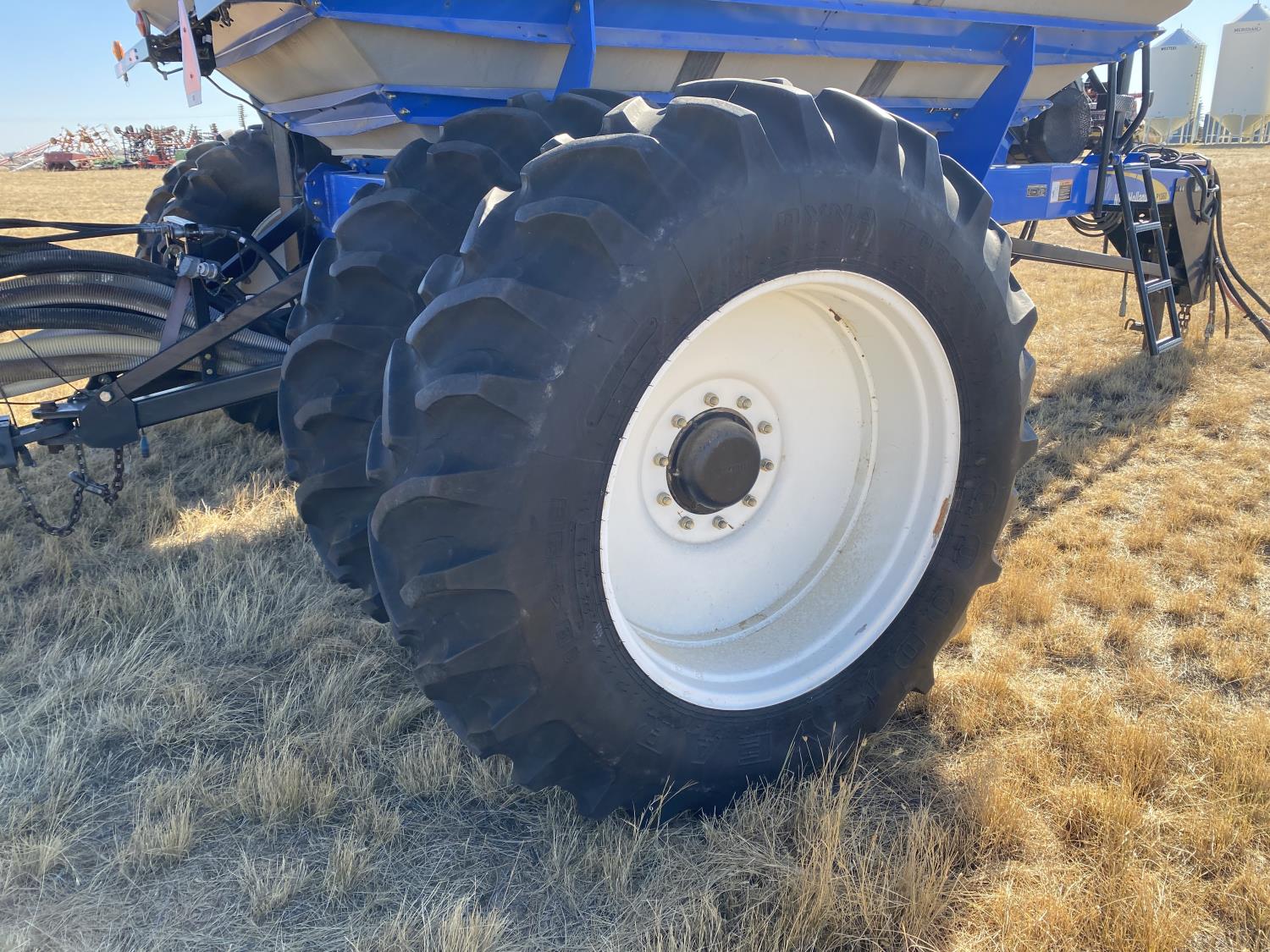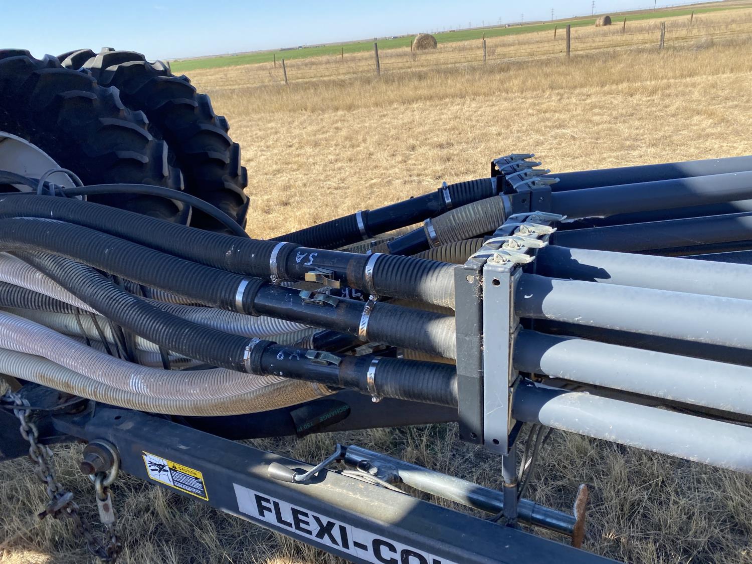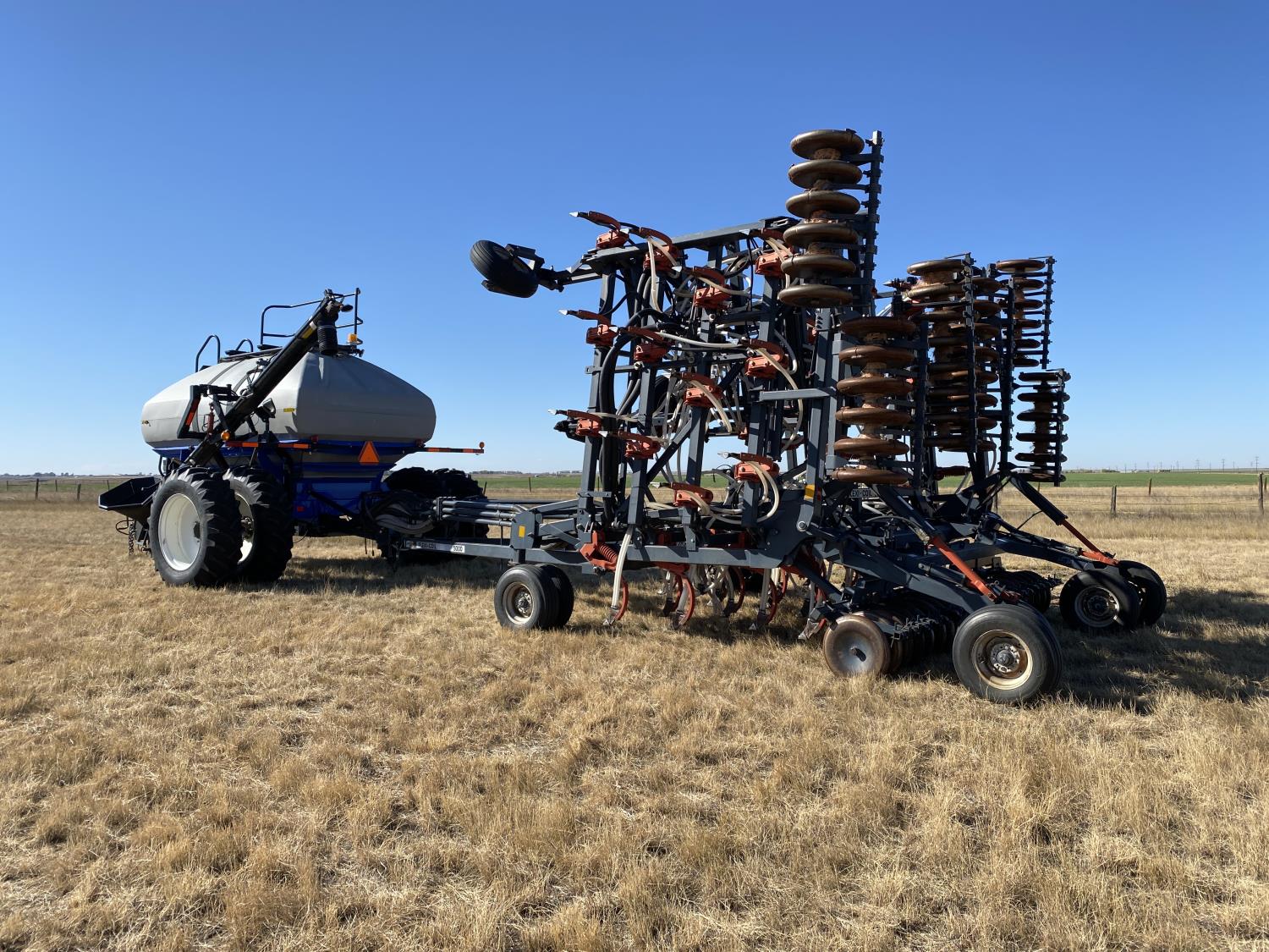 10 inch spacing, double shoot openers, 4 inch steel packers, Air Cart: 3 compartments, 8 inch loading auger, single fan, variable rate metering, 3 tank cameras, dual 18.4-38 rear tires