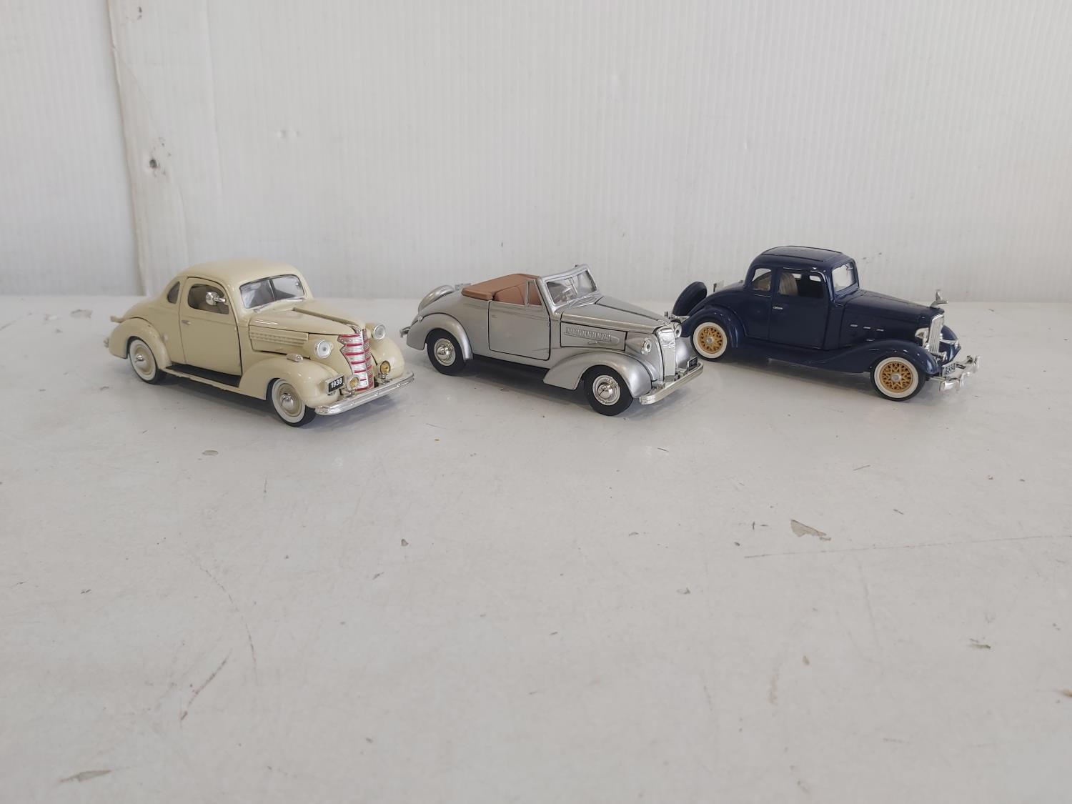 scale unknown, 1938 Chev Master deluxe Business coupe, 1937 Chev Cabriolet, 1933 Chev Eagle