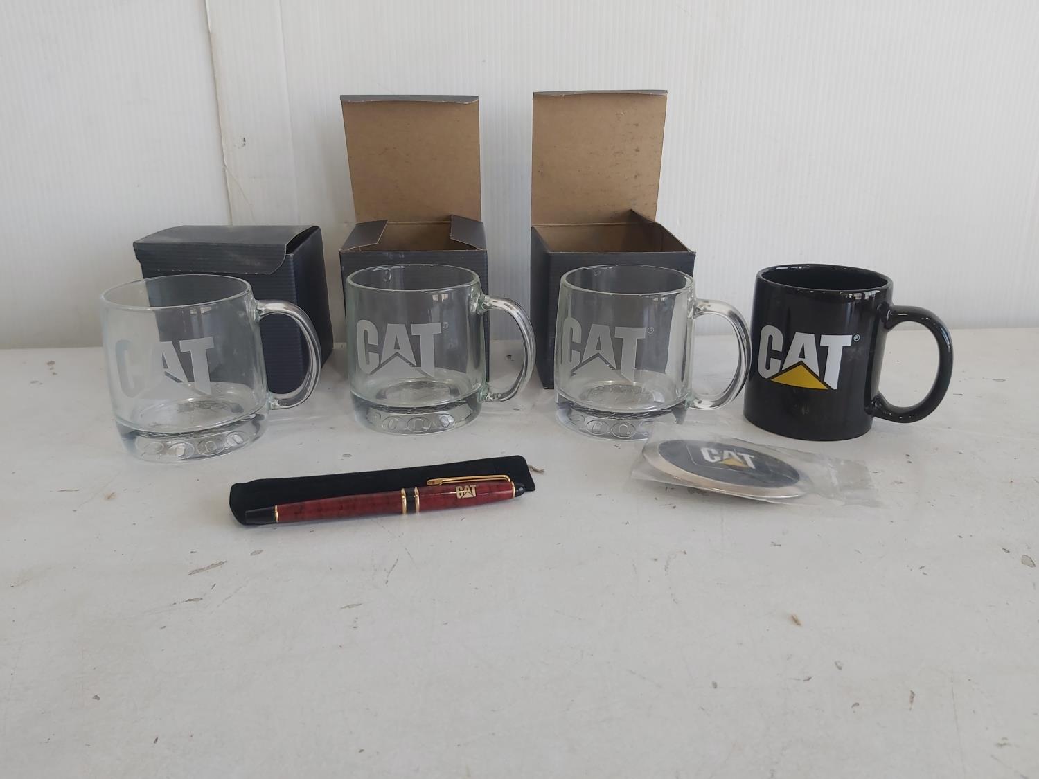 318 Caterpillar (4) Mugs, Ball Point Pen & Belt Buckle