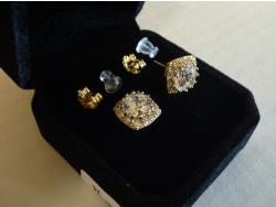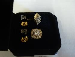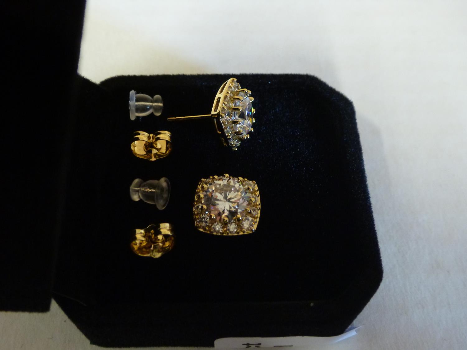 7122 14K Gold Plated 2.0 Ct Each Simulated Diamond Halo Stud Earrings (Unused)