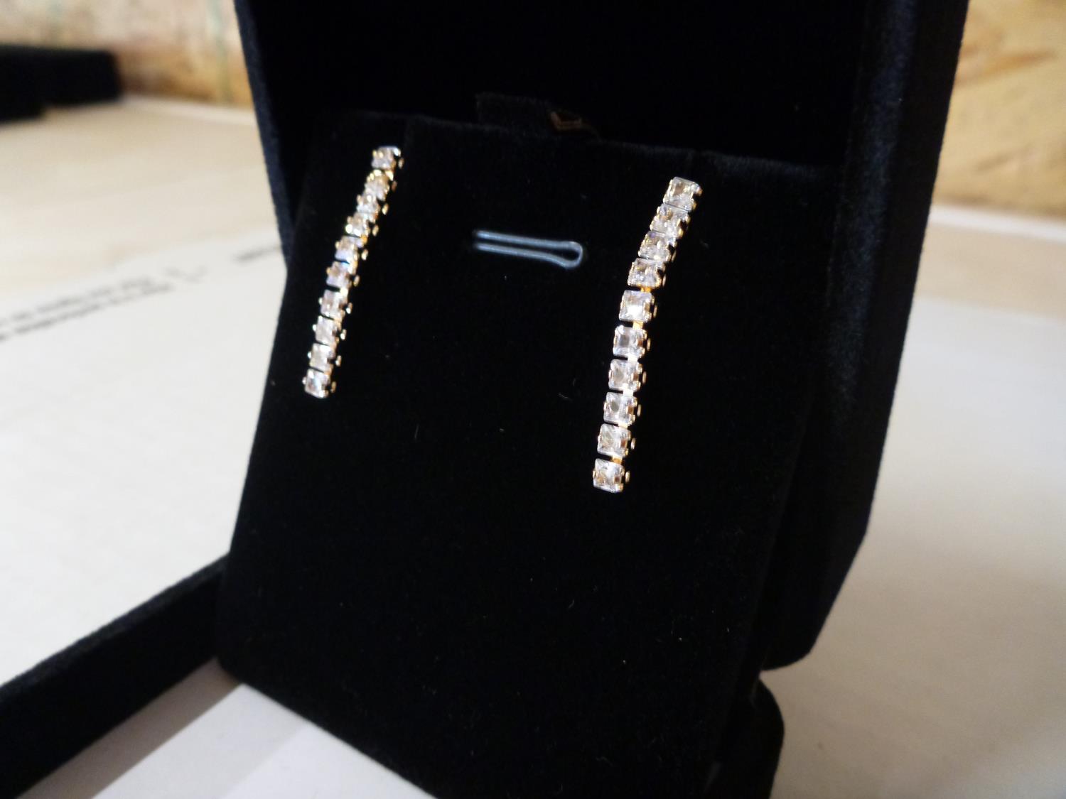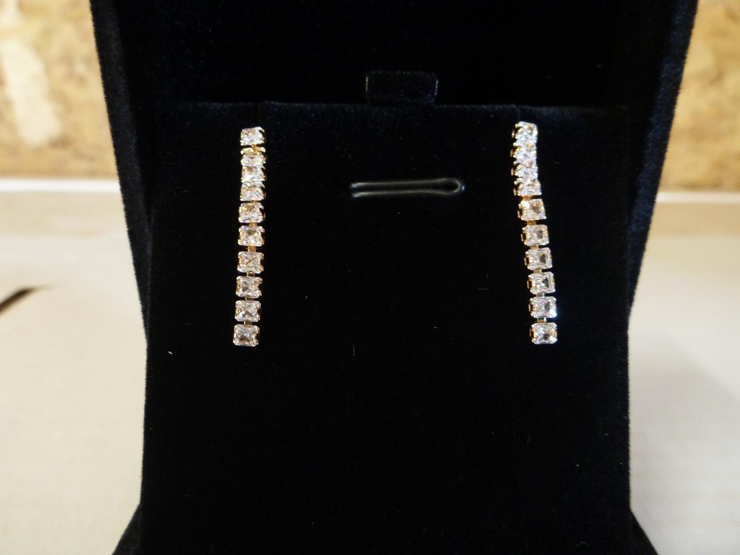 7118 18K Gold Plated 2.5 mm Princess Cut Simulated Diamond Tassel Earrings (Unused)