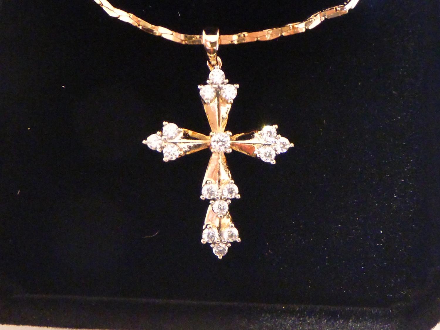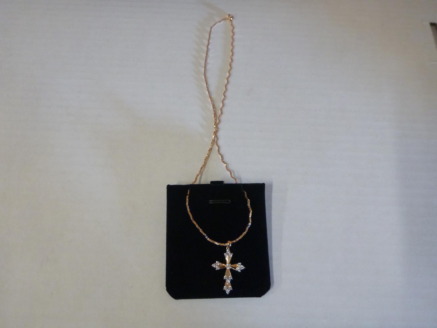 7115 18K Gold Plated 30.0 mm Simulated Diamond Cross Necklace (Unused)
