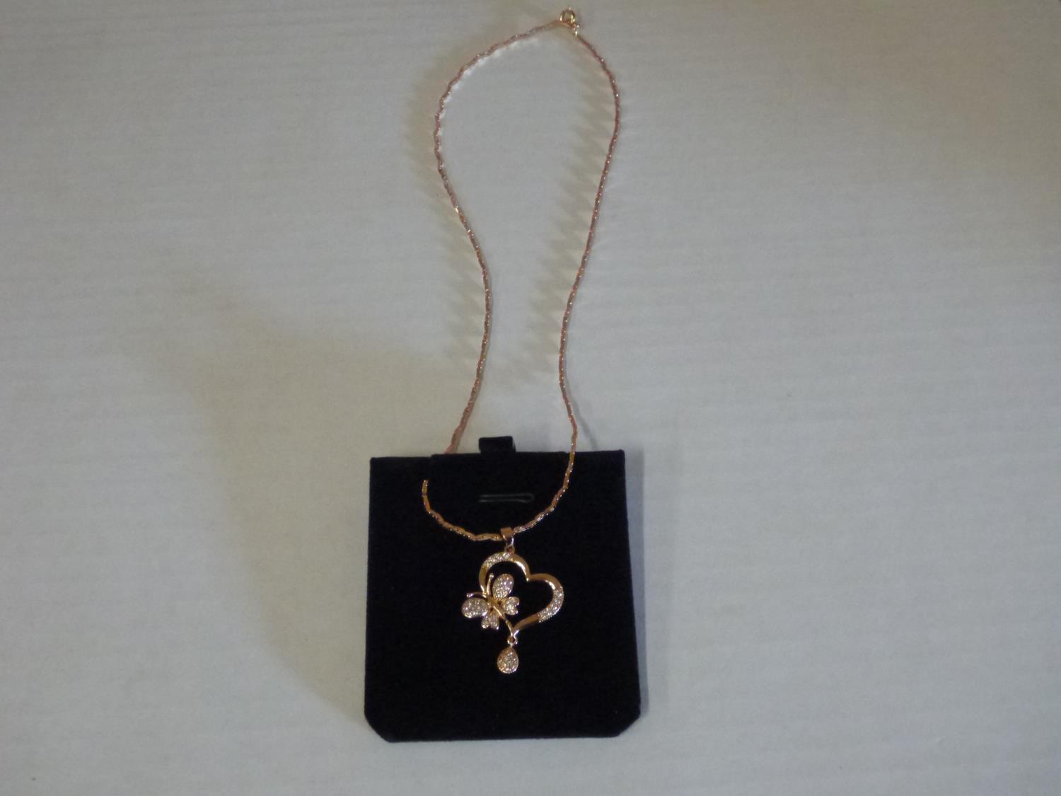 7114 18K Gold Plated 36.0 mm Simulated Diamond Butterfly Heart Necklace (Unused)