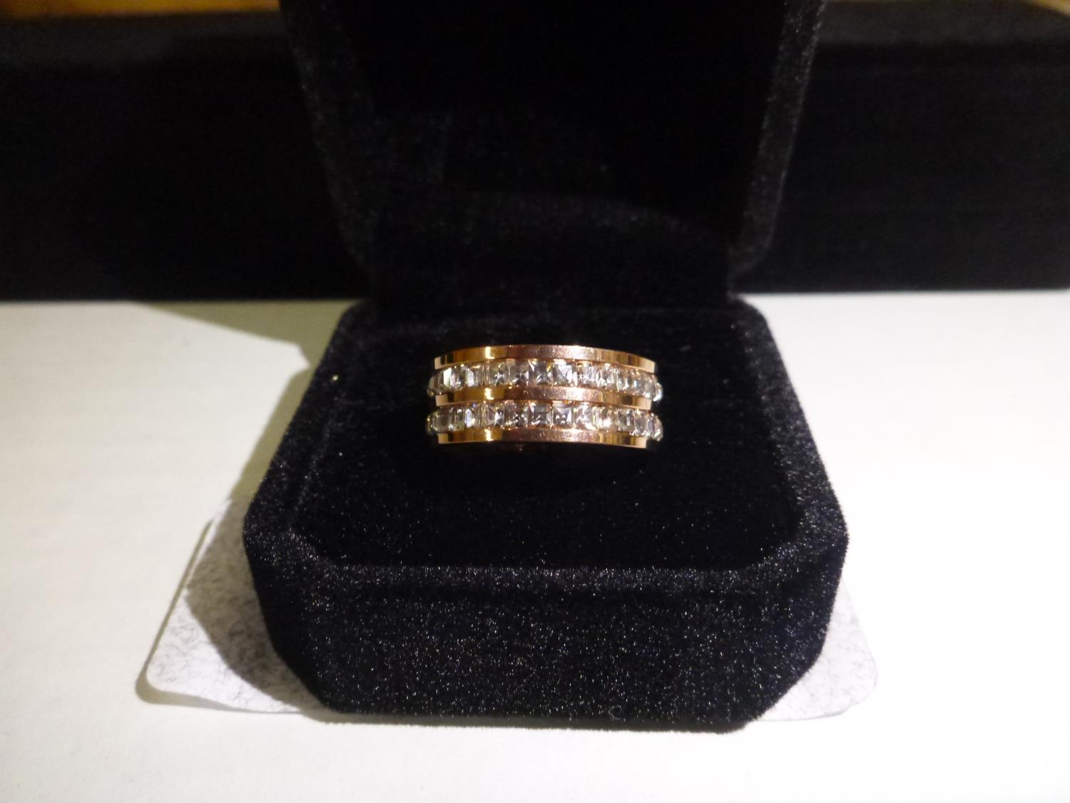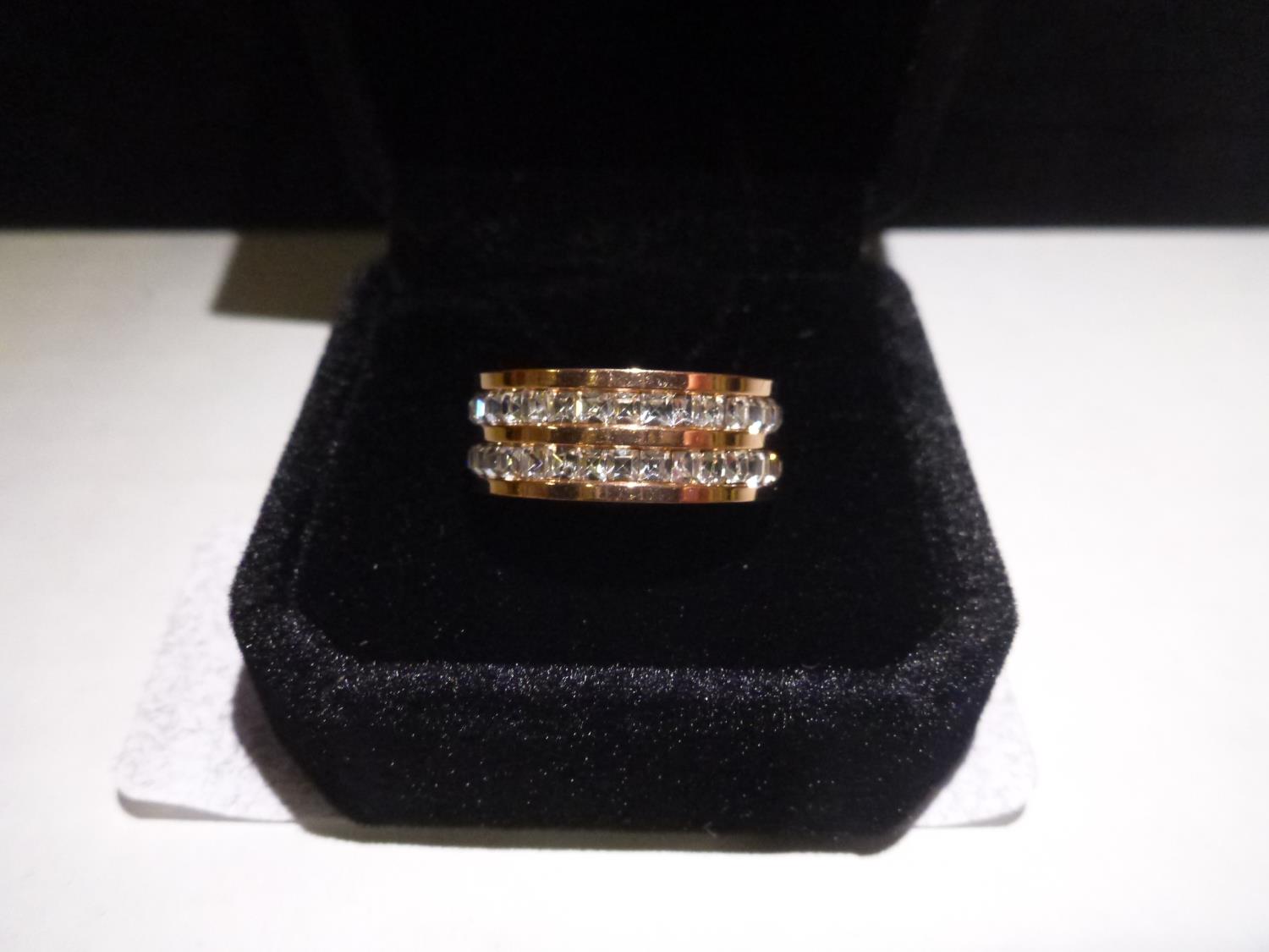 7125 18K Gold Plated 8.0 mm Simulated Diamond Ring (Unused)