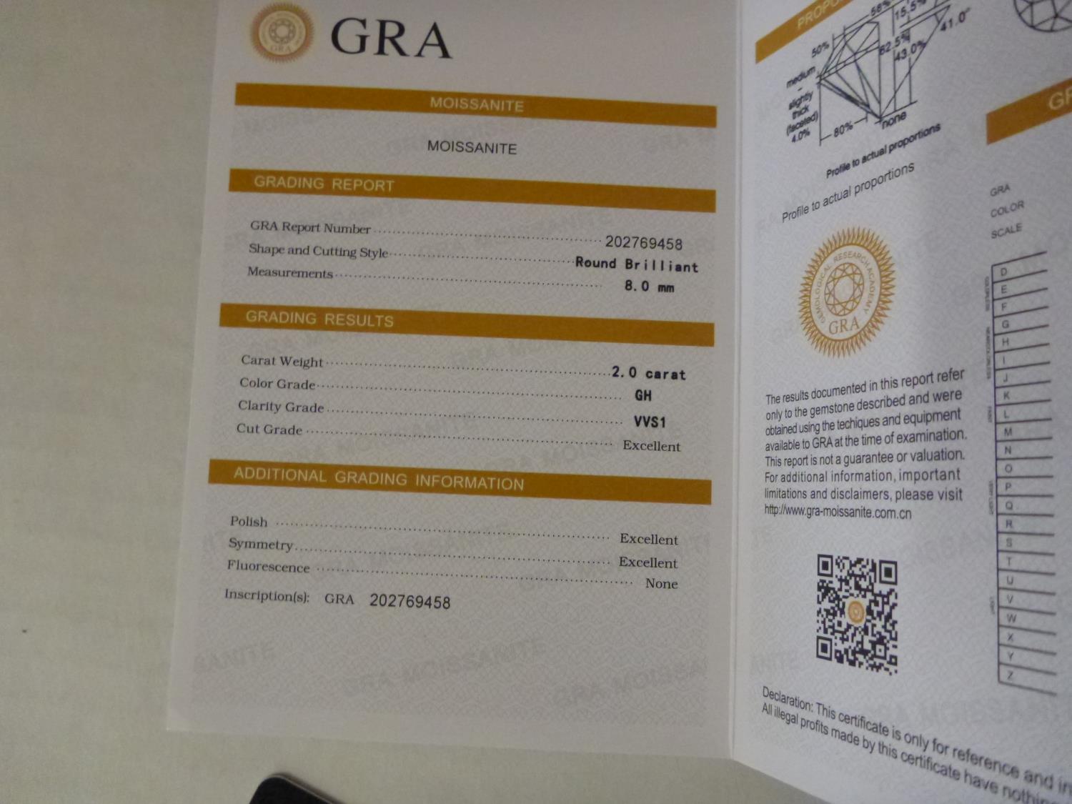 7106 2.0 Ct Moissanite Lab Diamond Round Brillant Cut (Unused)