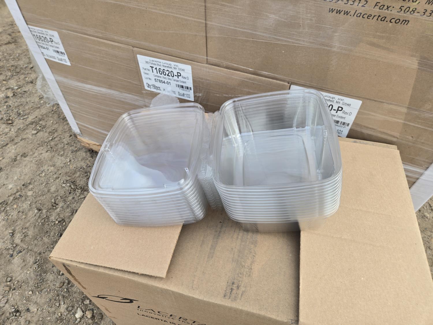 7396 (25) Boxes of Lacerta 64 oz Tamper Evident Plastic Food Containers (Unused)