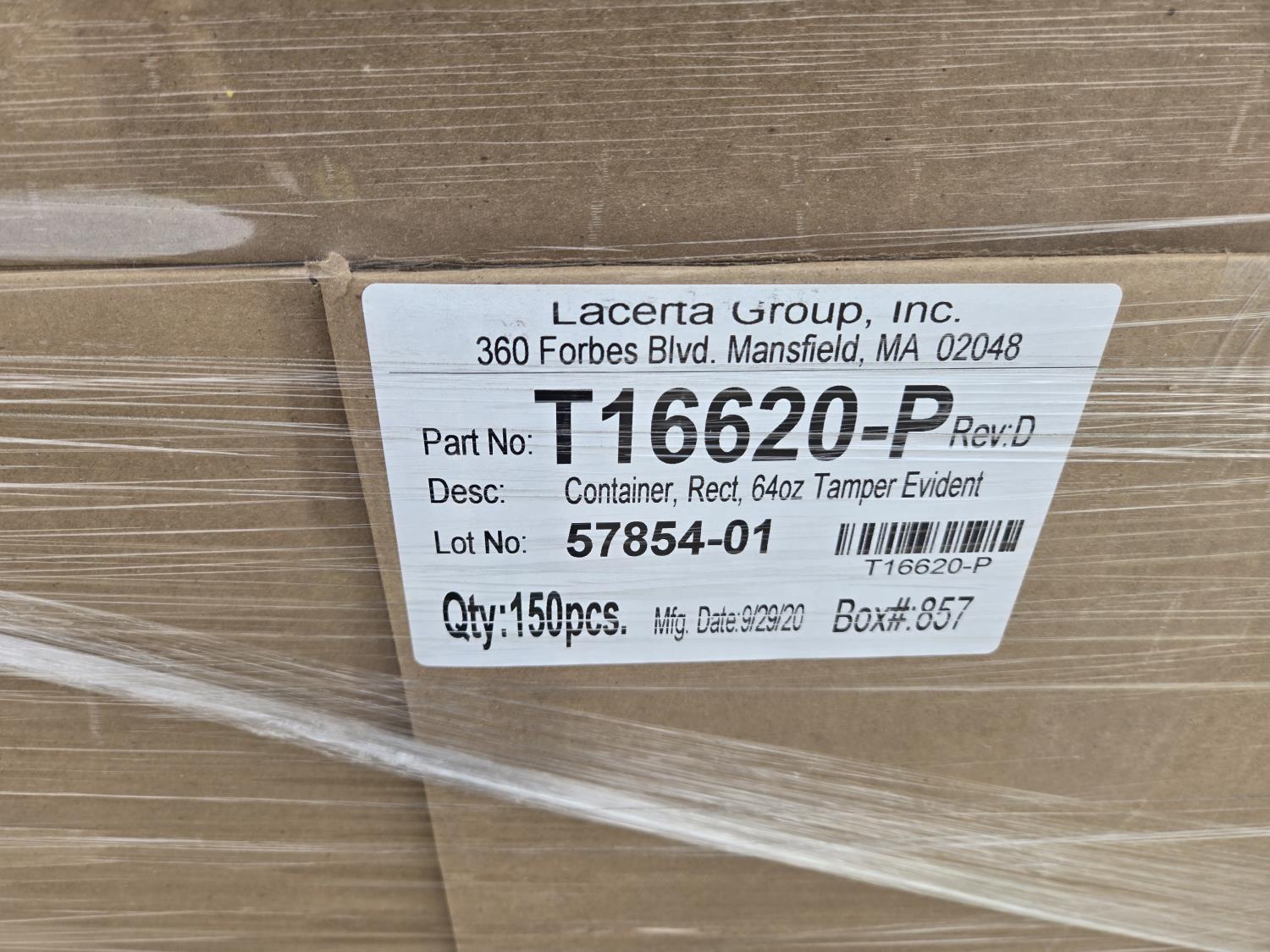 7395 (25) Boxes of Lacerta 64 oz Tamper Evident Plastic Food Containers (Unused)