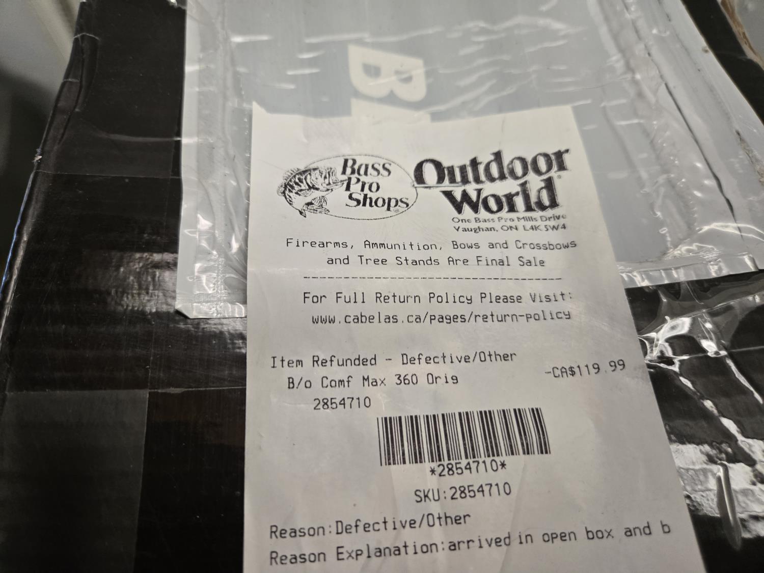 Bass Pro Shop Return, Items are sold as is and may have defects or missing parts, Personal inspection is advised