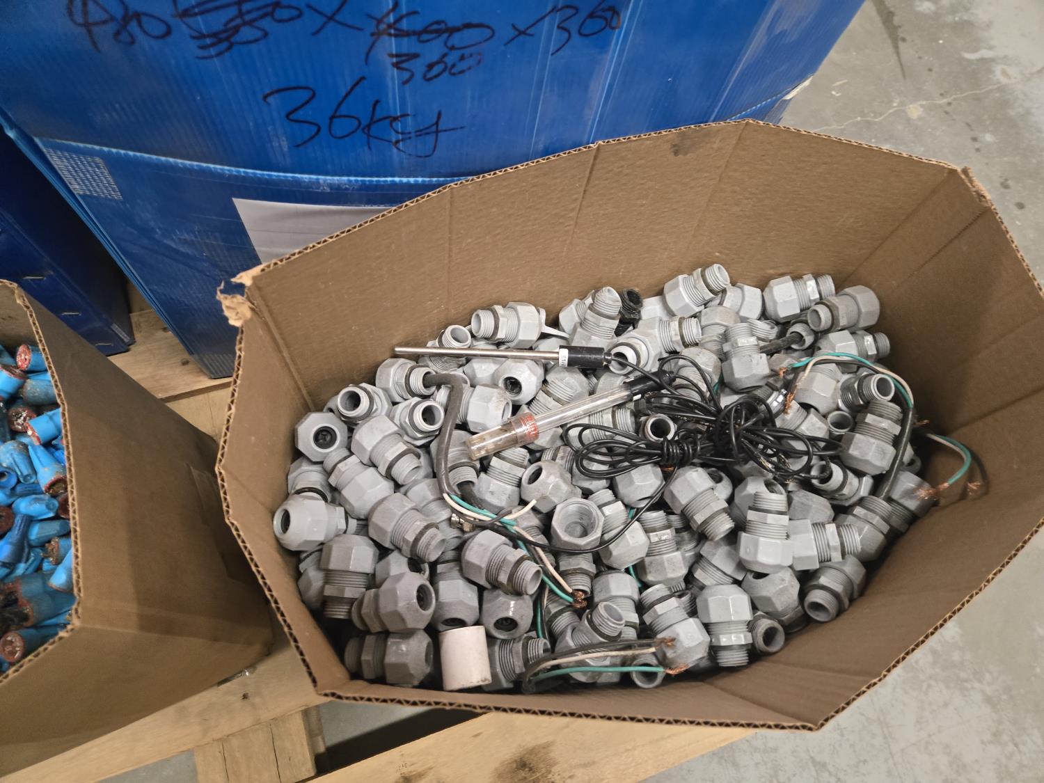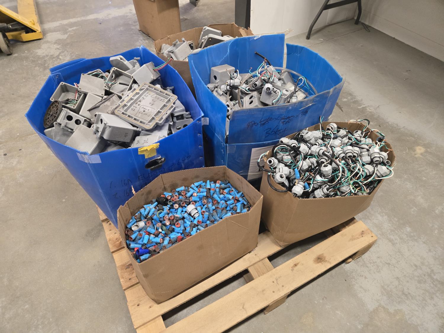 7392 Large Qty of Weather Proof Electrical Boxes, Marquette's & Box Connectors