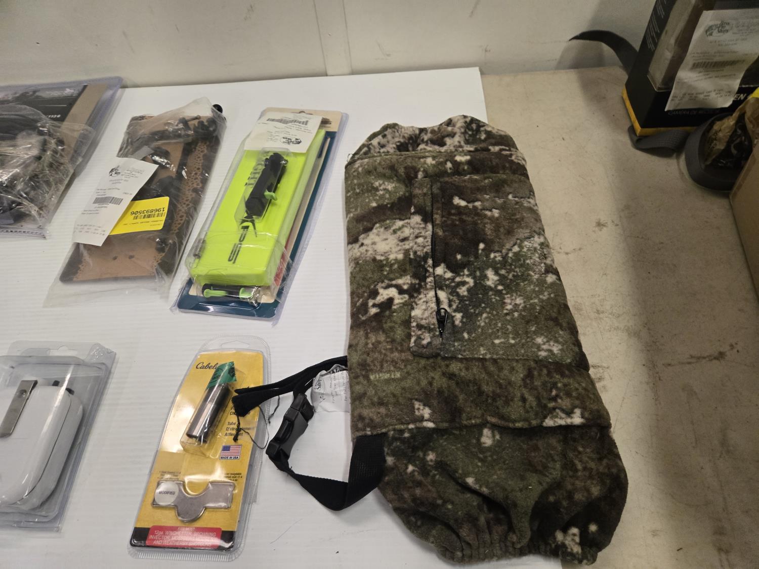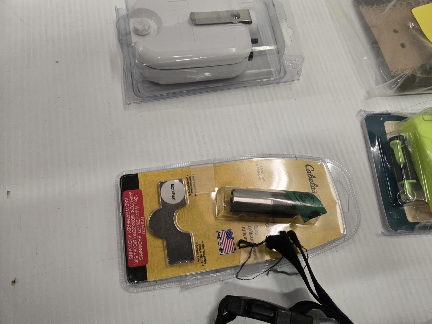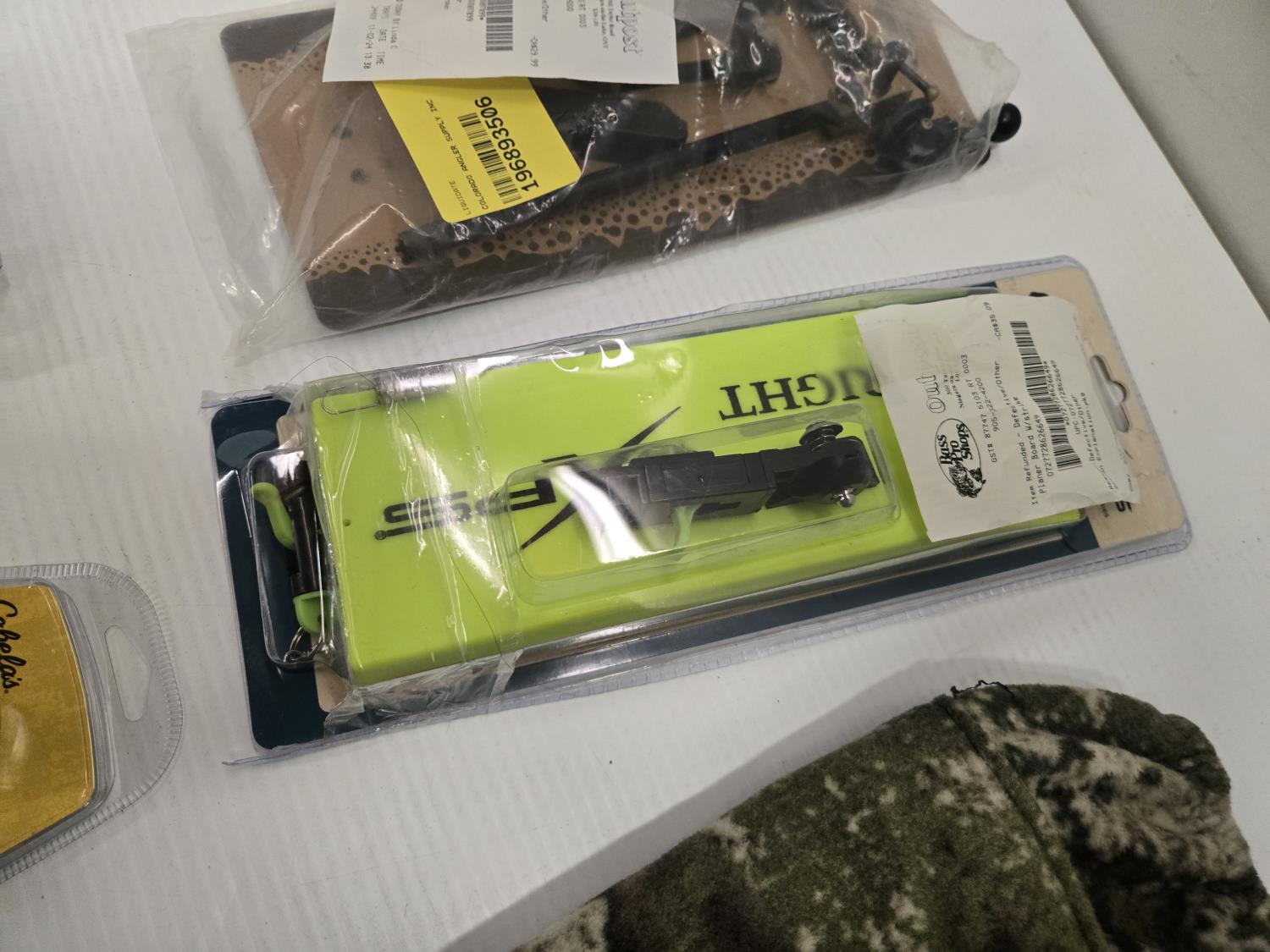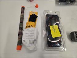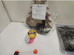 Choke tube, dog jacket, decoy rigging, (2) line locks, fish bait marshmallows, Christmas tree ornament, board with strike flag, Bass Pro Shop Return, Items are sold as is and may have defects or missing parts, Personal inspection is advised