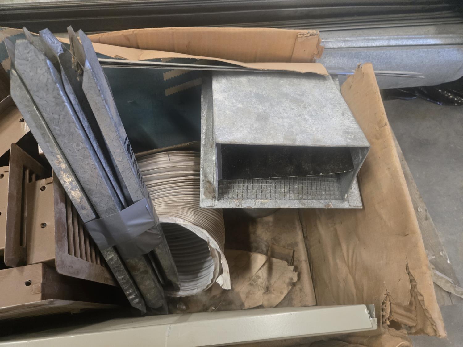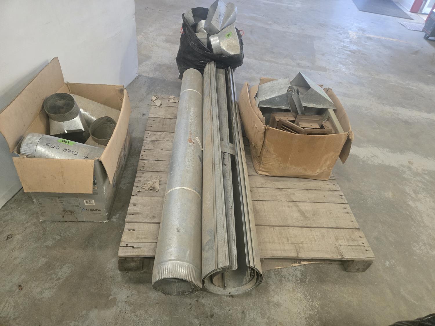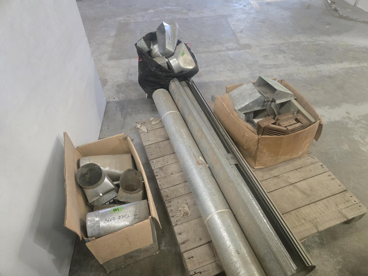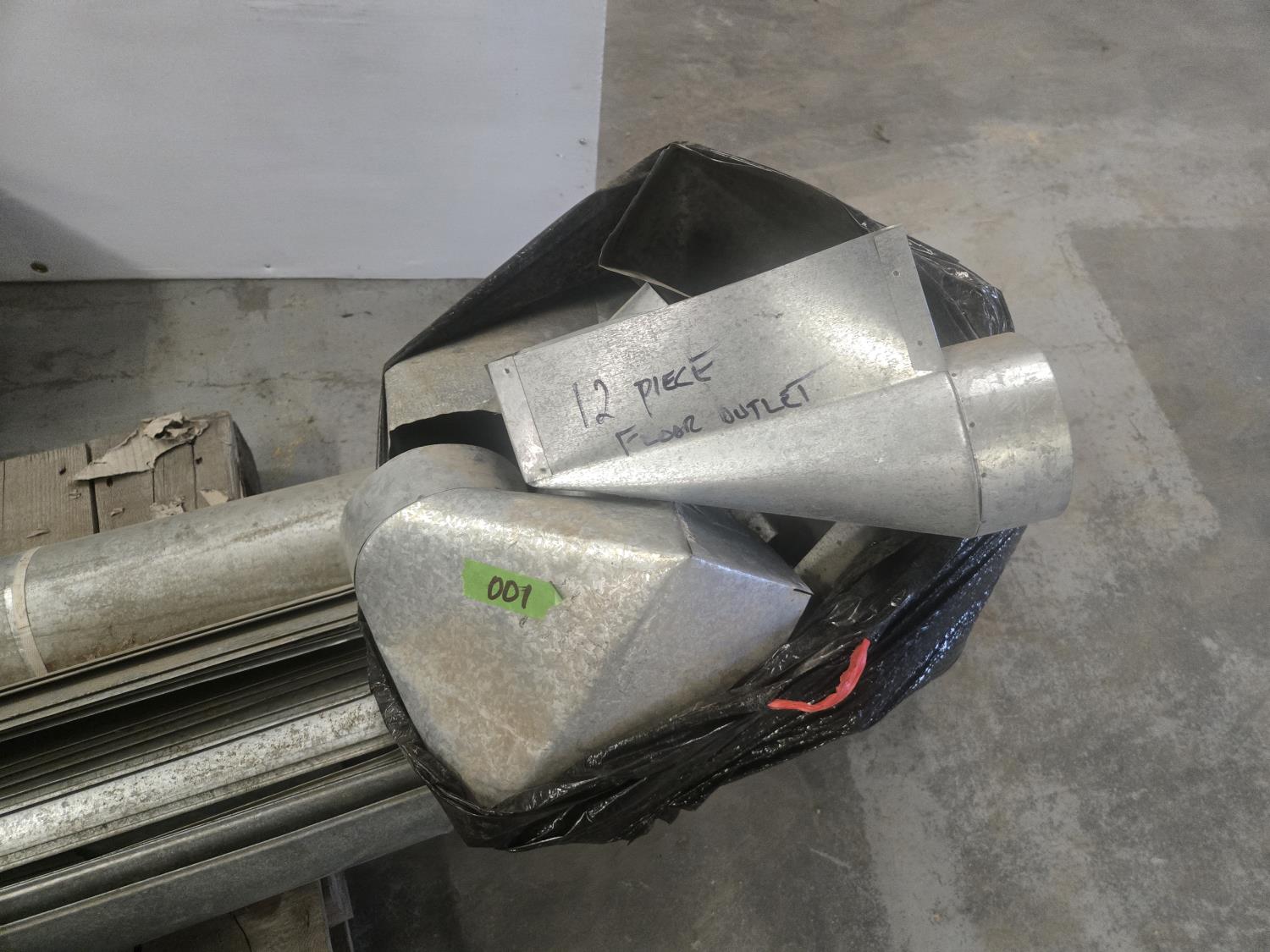 qty of galvanized round heat ducts, (6) floor registers, (12) floor outlets, (7) take offs, (19) elbows, miscellaneous vents