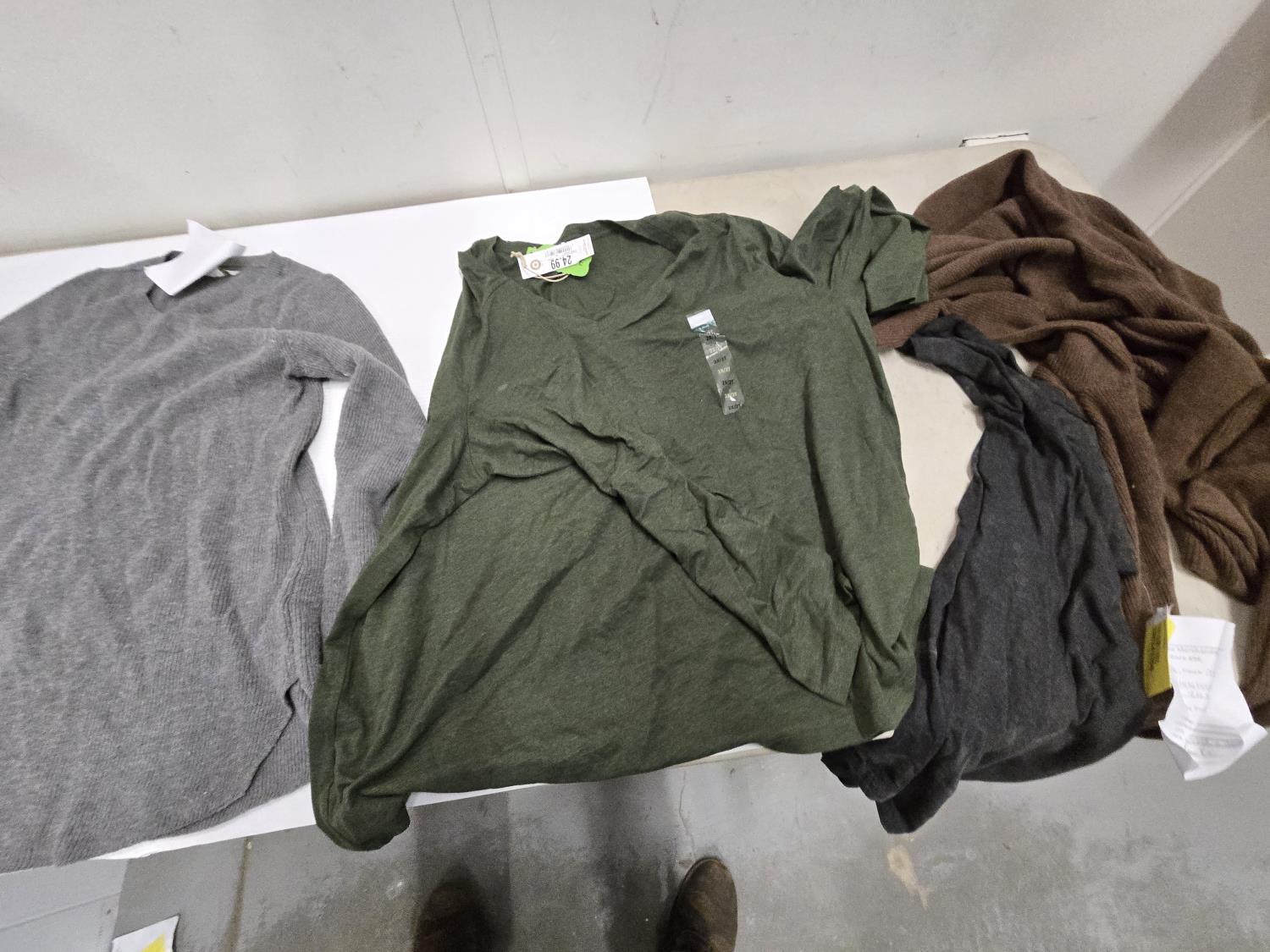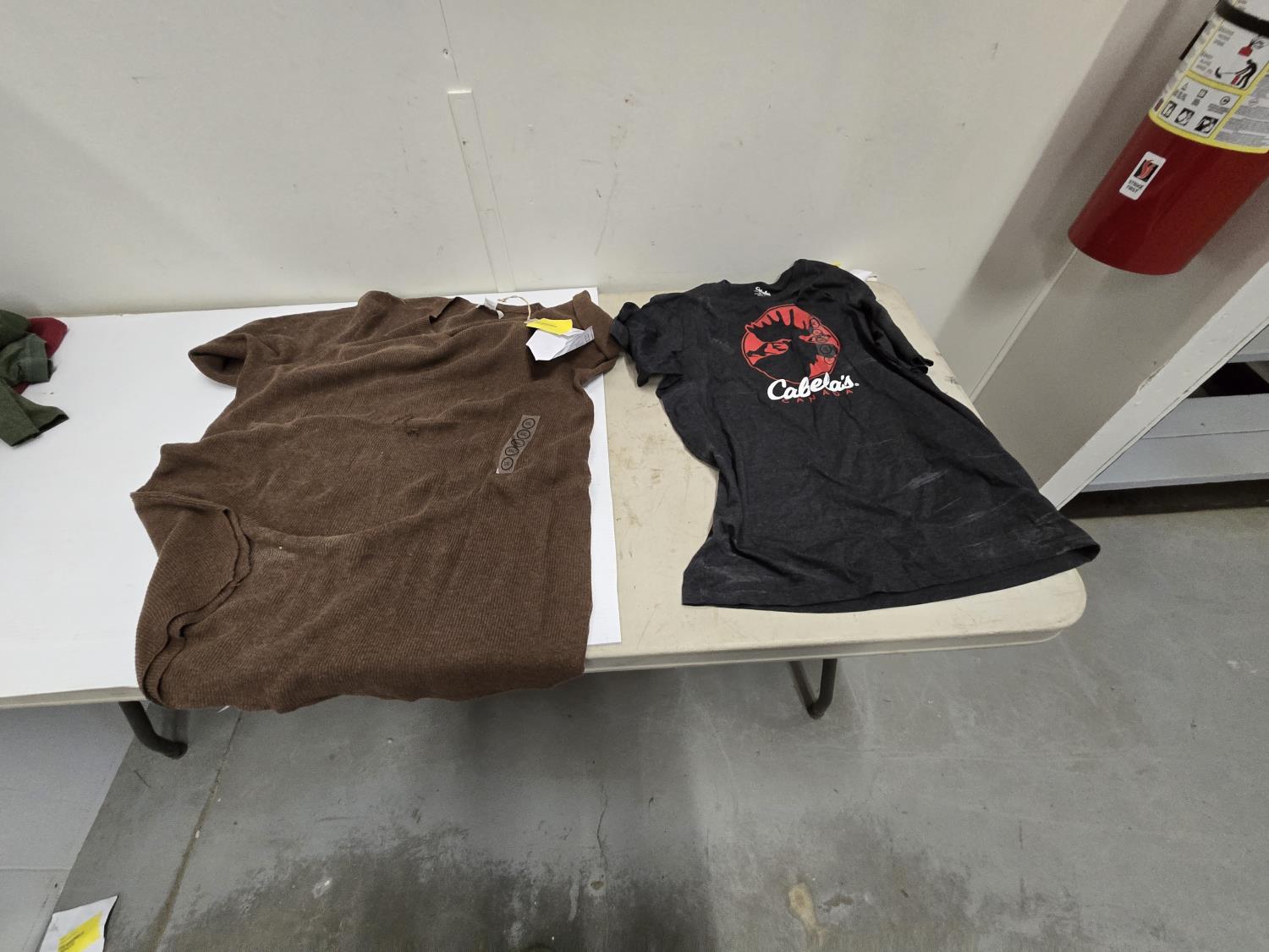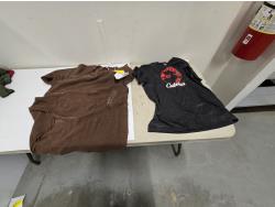 (2) small sweaters, (1) L tee shirt, (1) XL tee shirt, (1) 3XL tee shirt, (1) 2XL tee shirt, (1)XL sweater, Bass Pro Shop Return, Items are sold as is and may have defects or missing parts, Personal inspection is advised